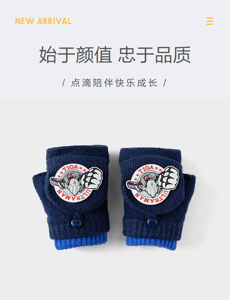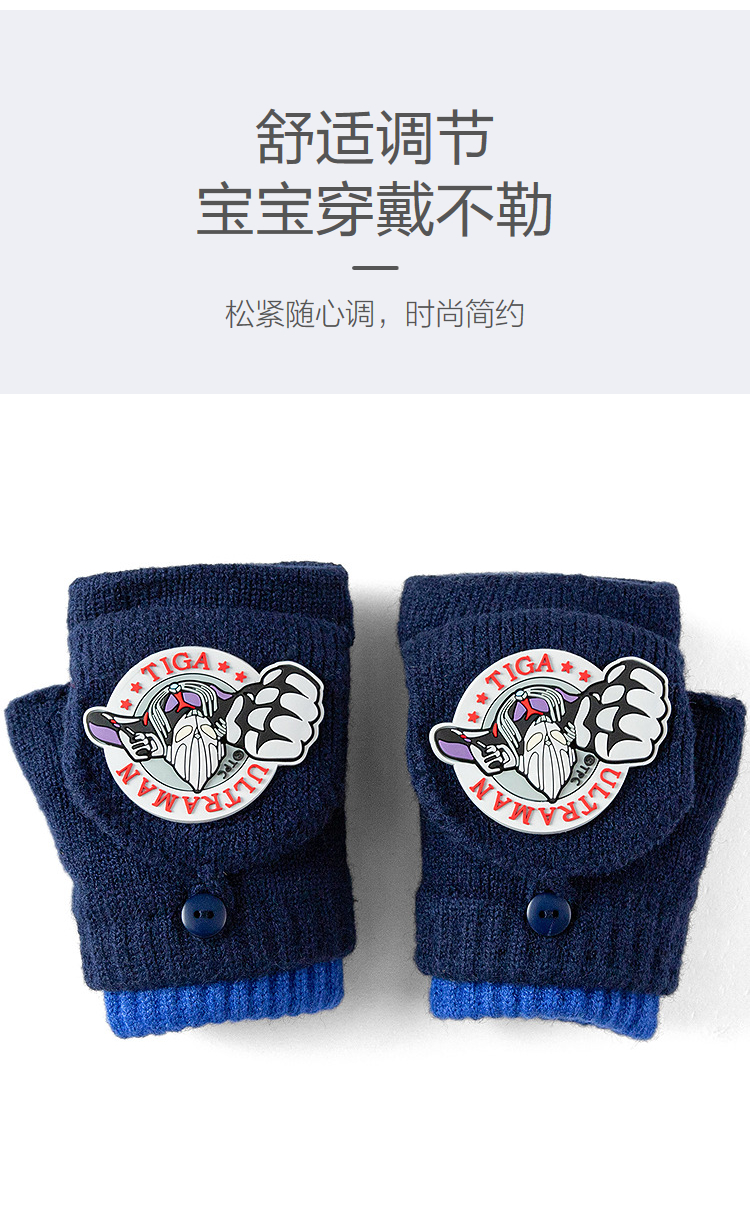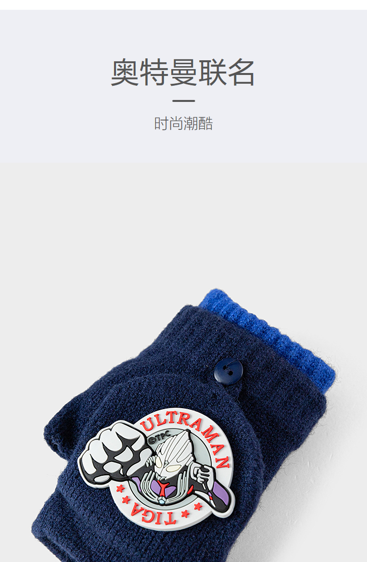 【奥特曼IP】巴拉巴拉儿童手套男童翻盖撞色手套舒适保暖时尚潮酷