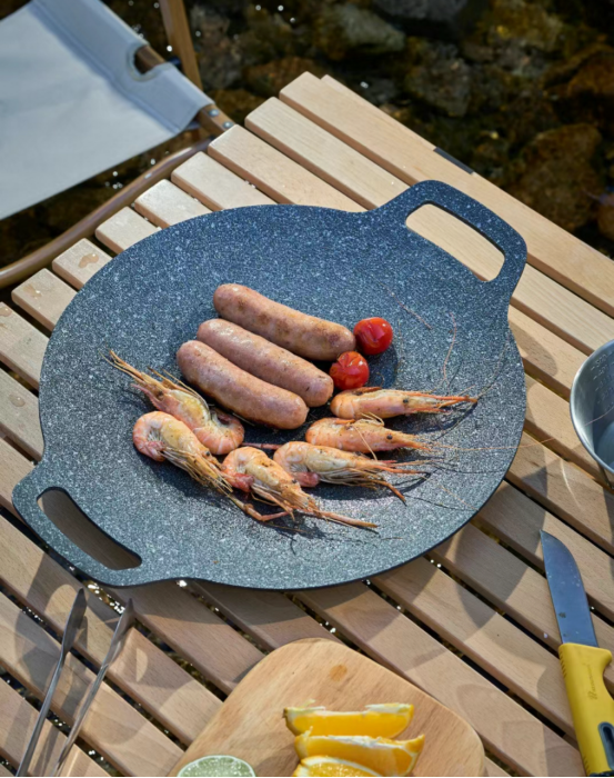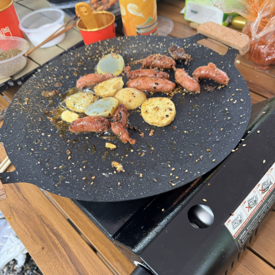 秋天的第一场露营 当然要配烧烤啦🥩 户外出行特别容易东西多 负担重 一款多功能的烤盘真的解决了很多问题 露营有了它 幸福指数都节节攀高~ 能煎能烤 功能强大 好拿好用 🉑️明火🉑️卡式炉🉑️电磁炉 约上三五好友 来场户外美食趴吧 落日下的烧烤 真的能治愈一切的疲劳