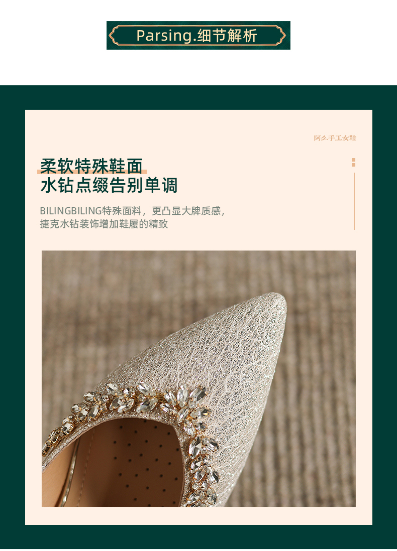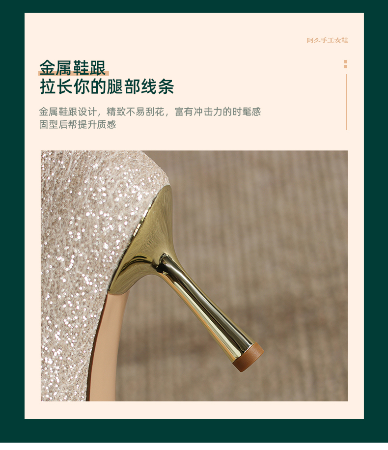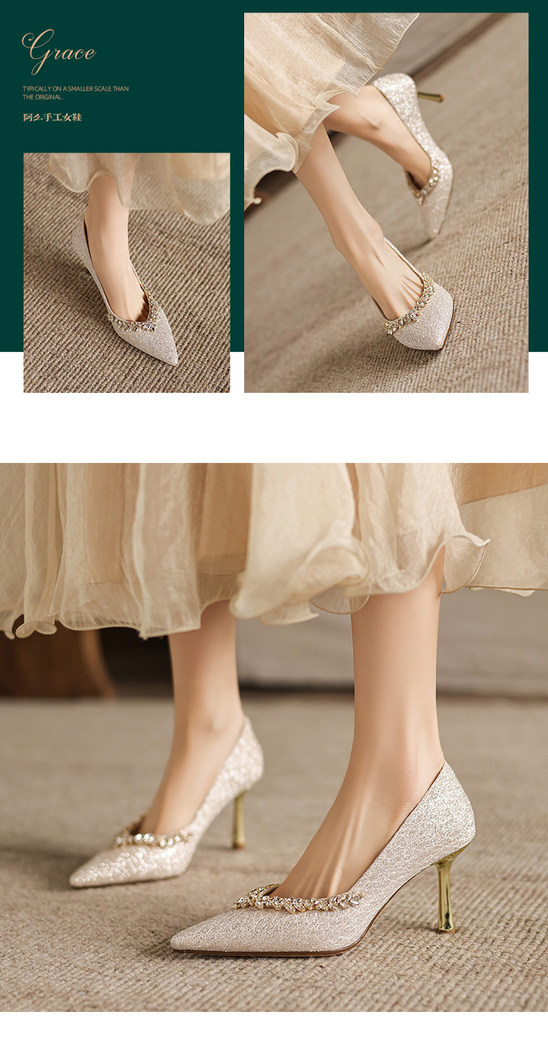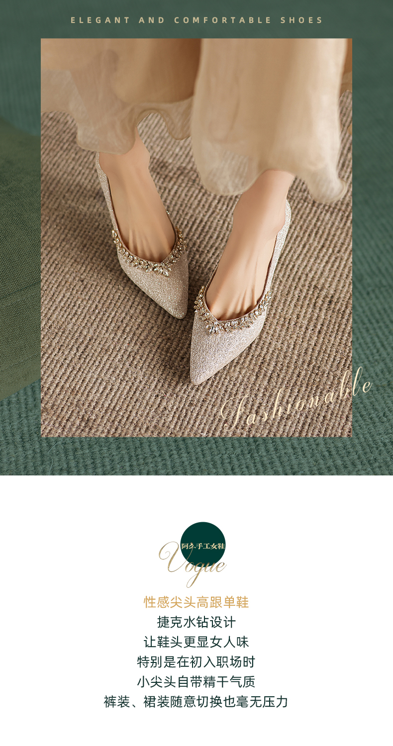 阿么手工女鞋法式细跟高跟鞋洋气不累脚宴会结婚伴娘小众婚鞋8CM