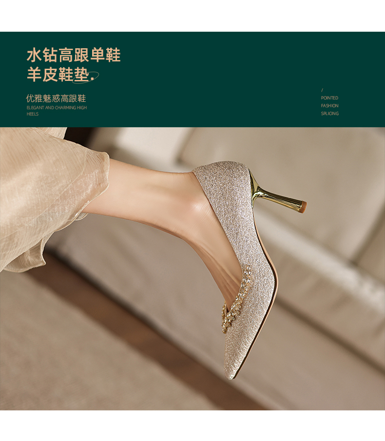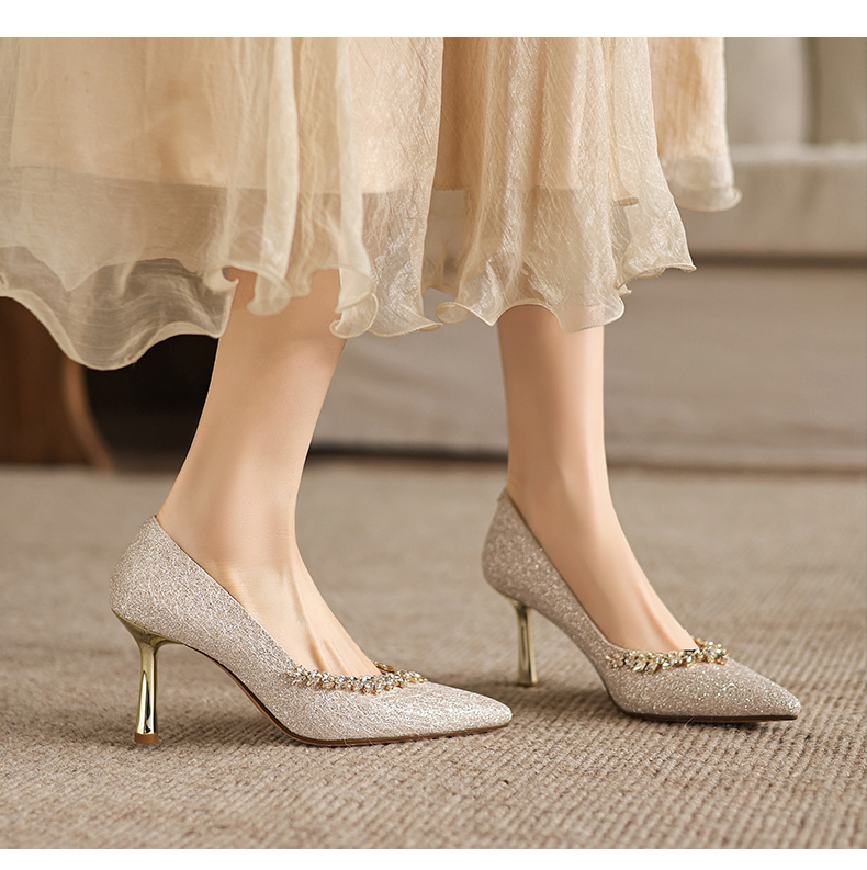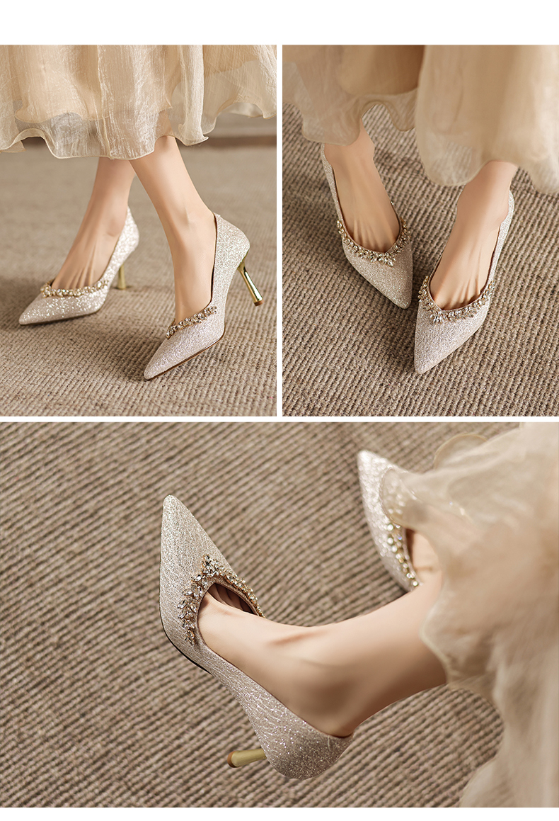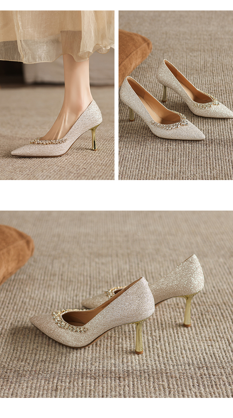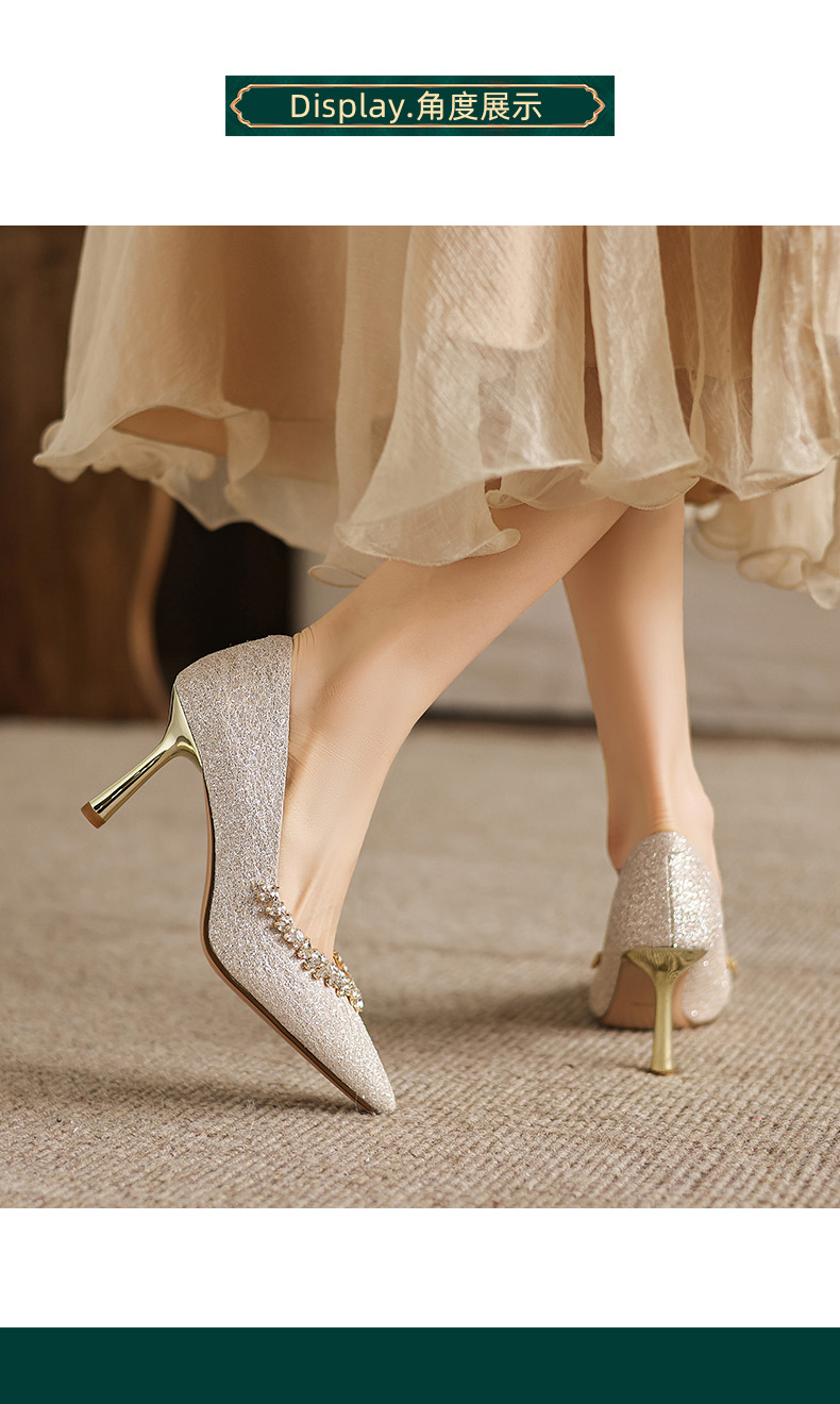 阿么手工女鞋法式细跟高跟鞋洋气不累脚宴会结婚伴娘小众婚鞋8CM