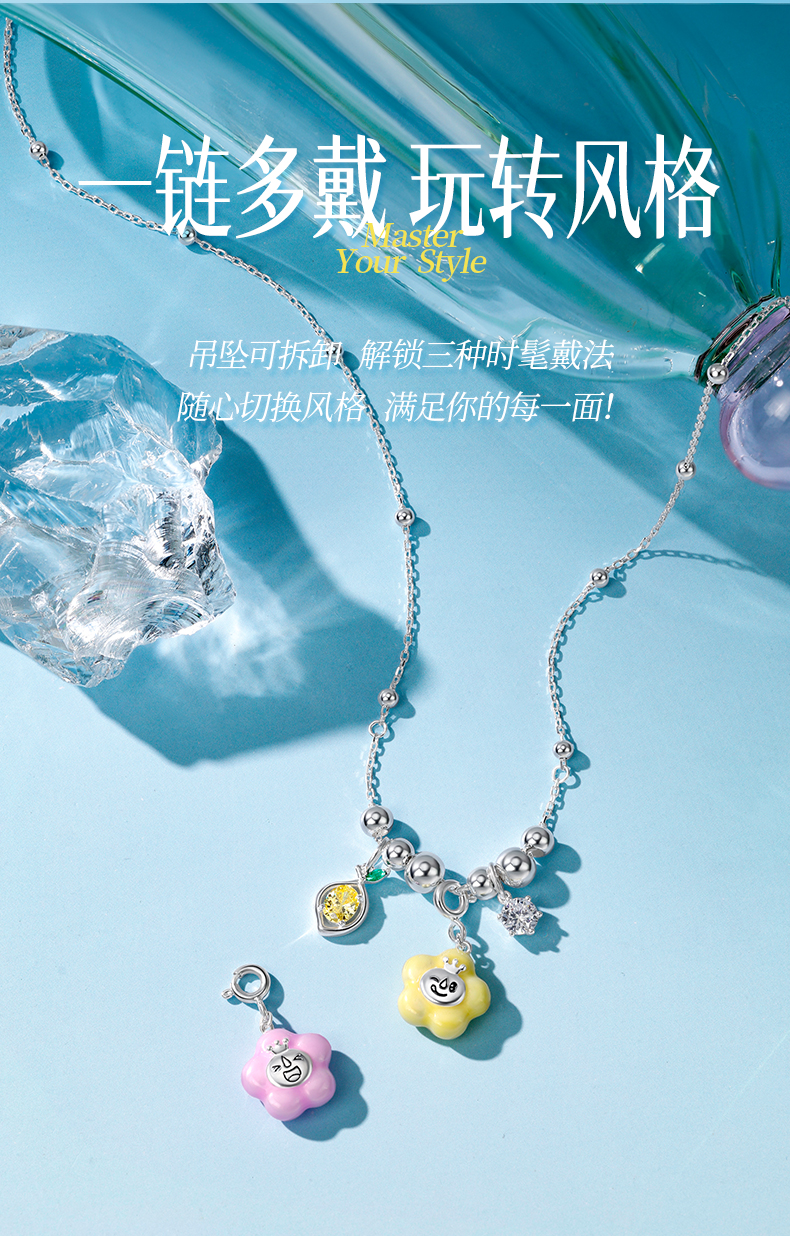 周大生×蜜雪冰城联名雪王项链女银元气一夏多巴胺锁骨链七夕礼物