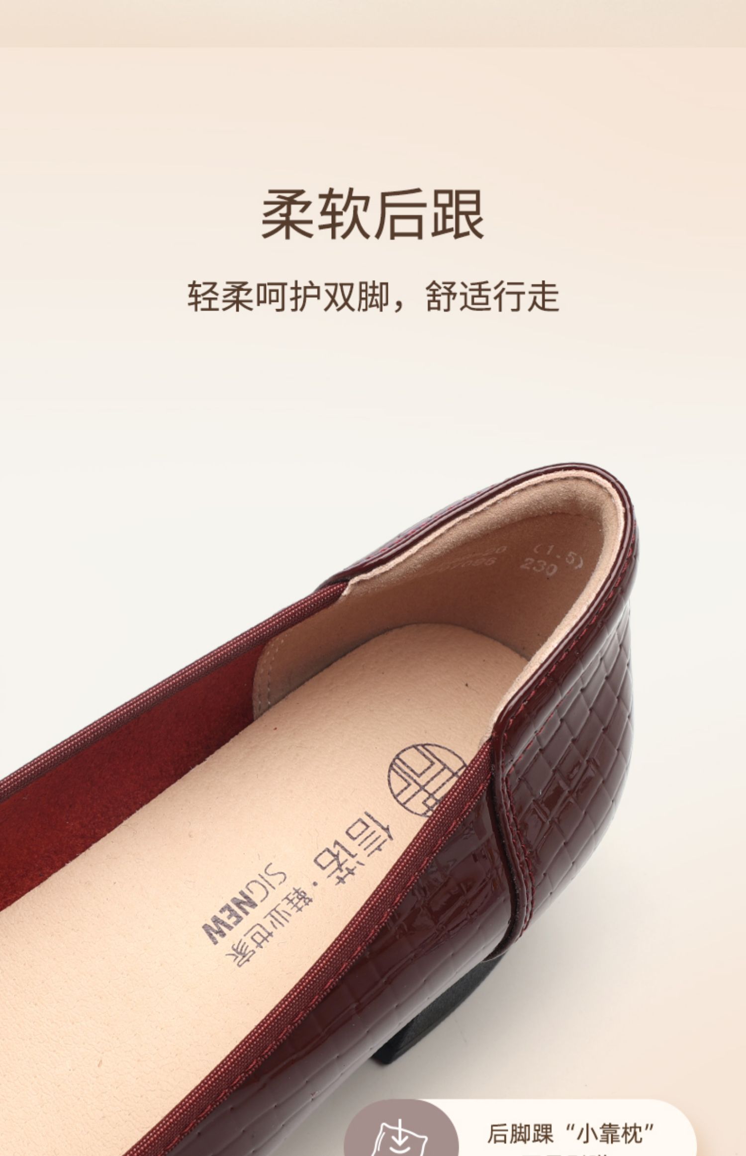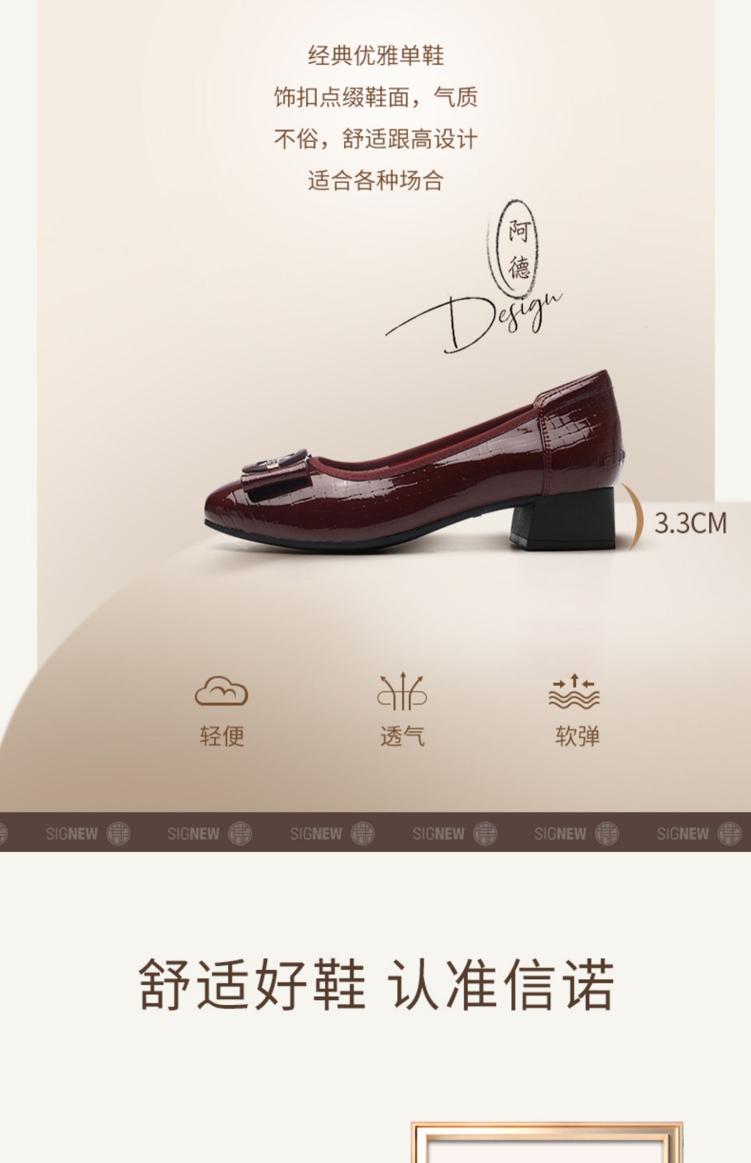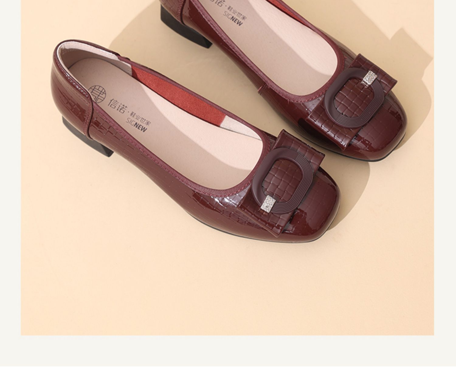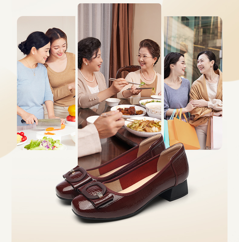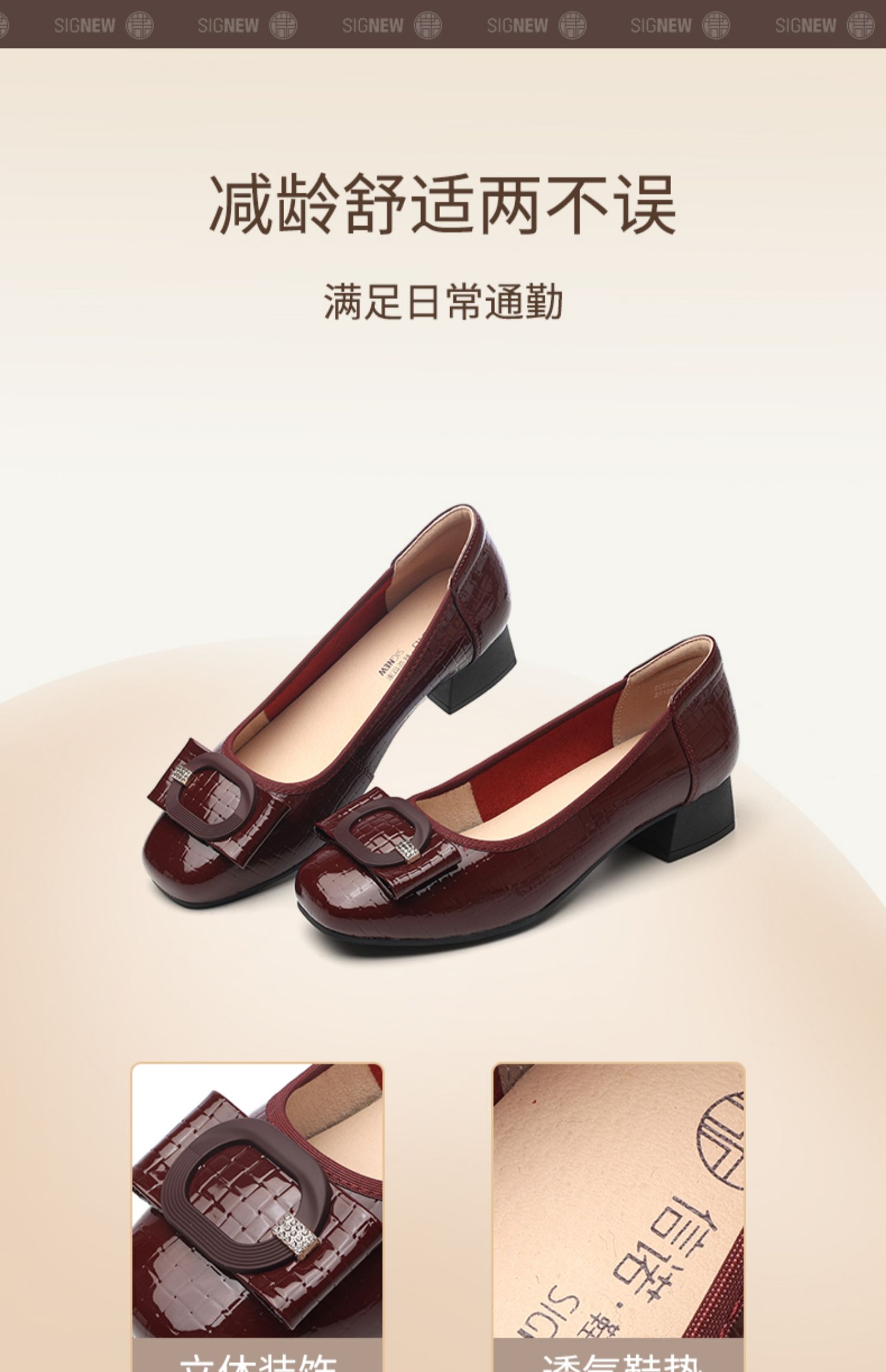 信诺女士粗跟单鞋2025春季新款中年气质妈妈鞋子婚礼舒适软底皮鞋5C5009-20
