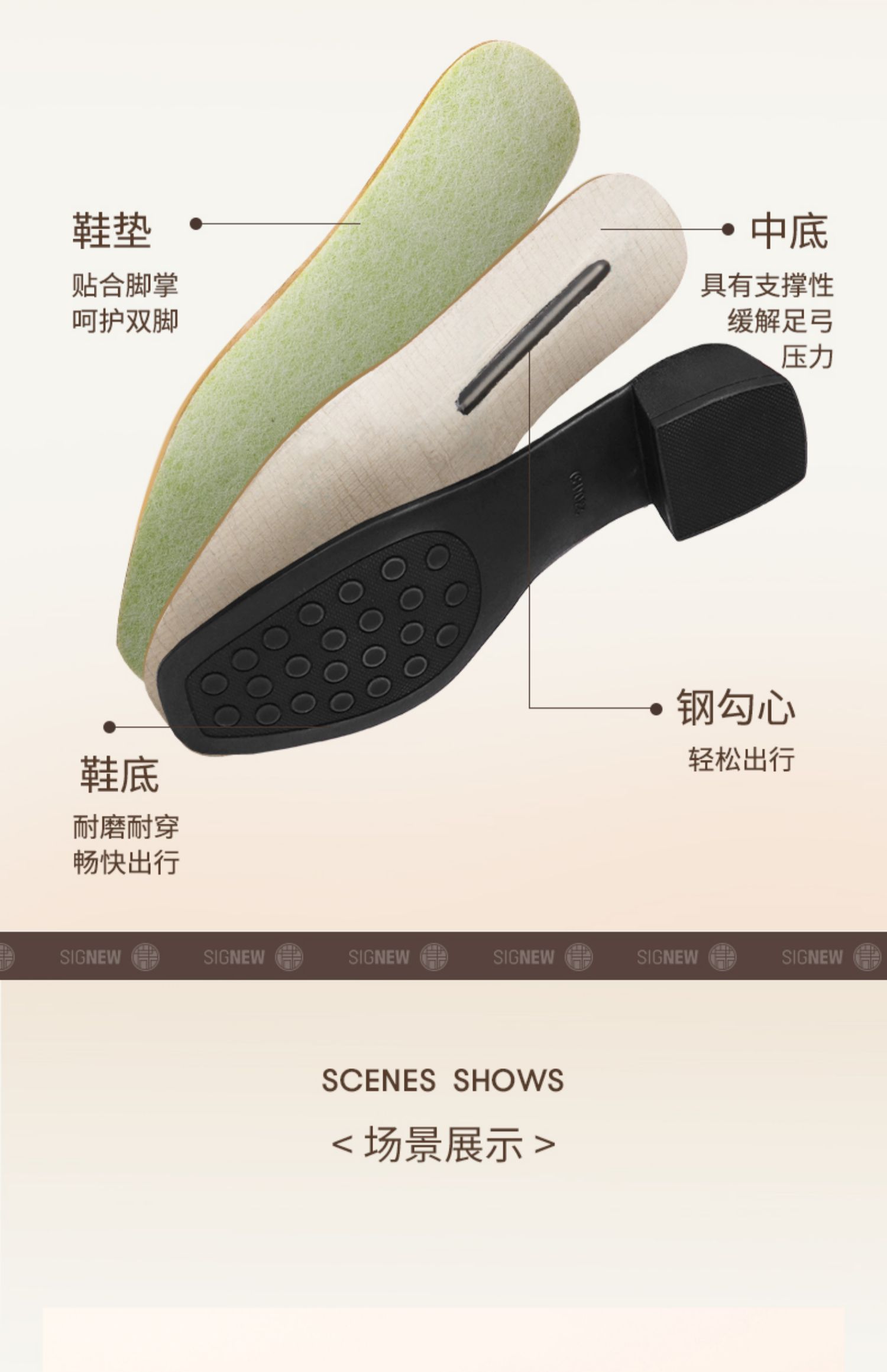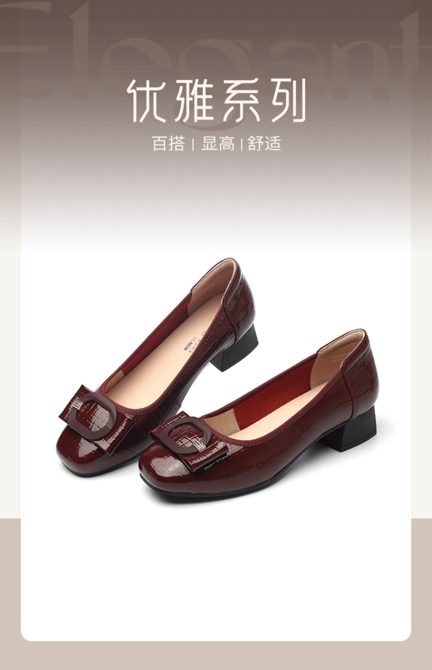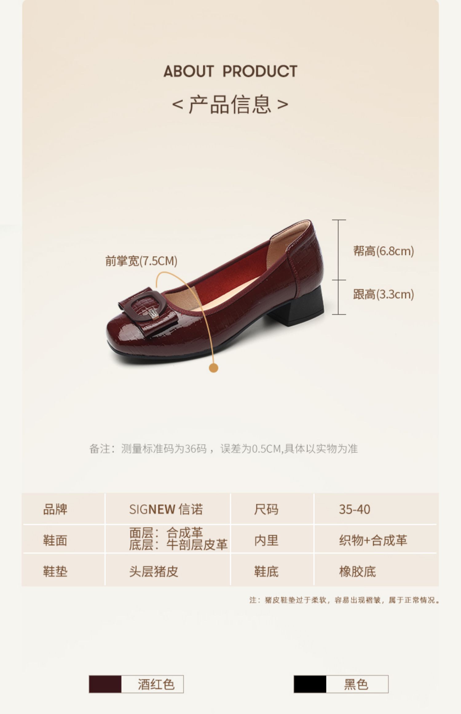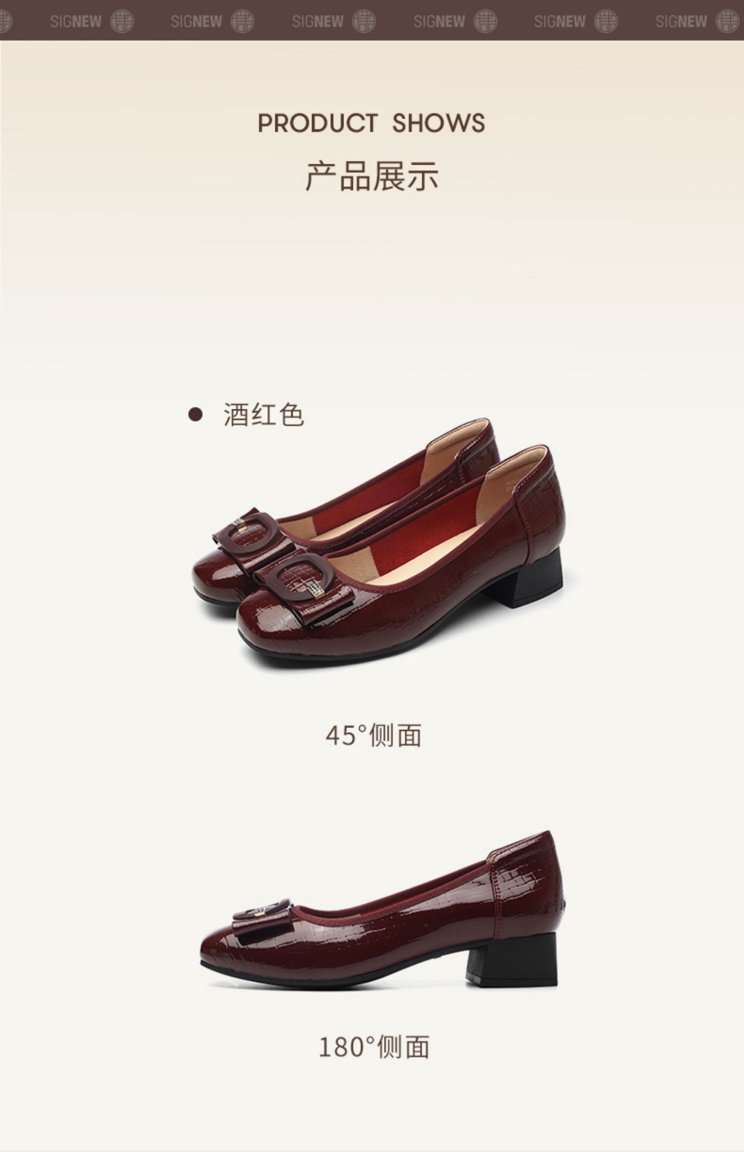信诺女士粗跟单鞋2025春季新款中年气质妈妈鞋子婚礼舒适软底皮鞋5C5009-20