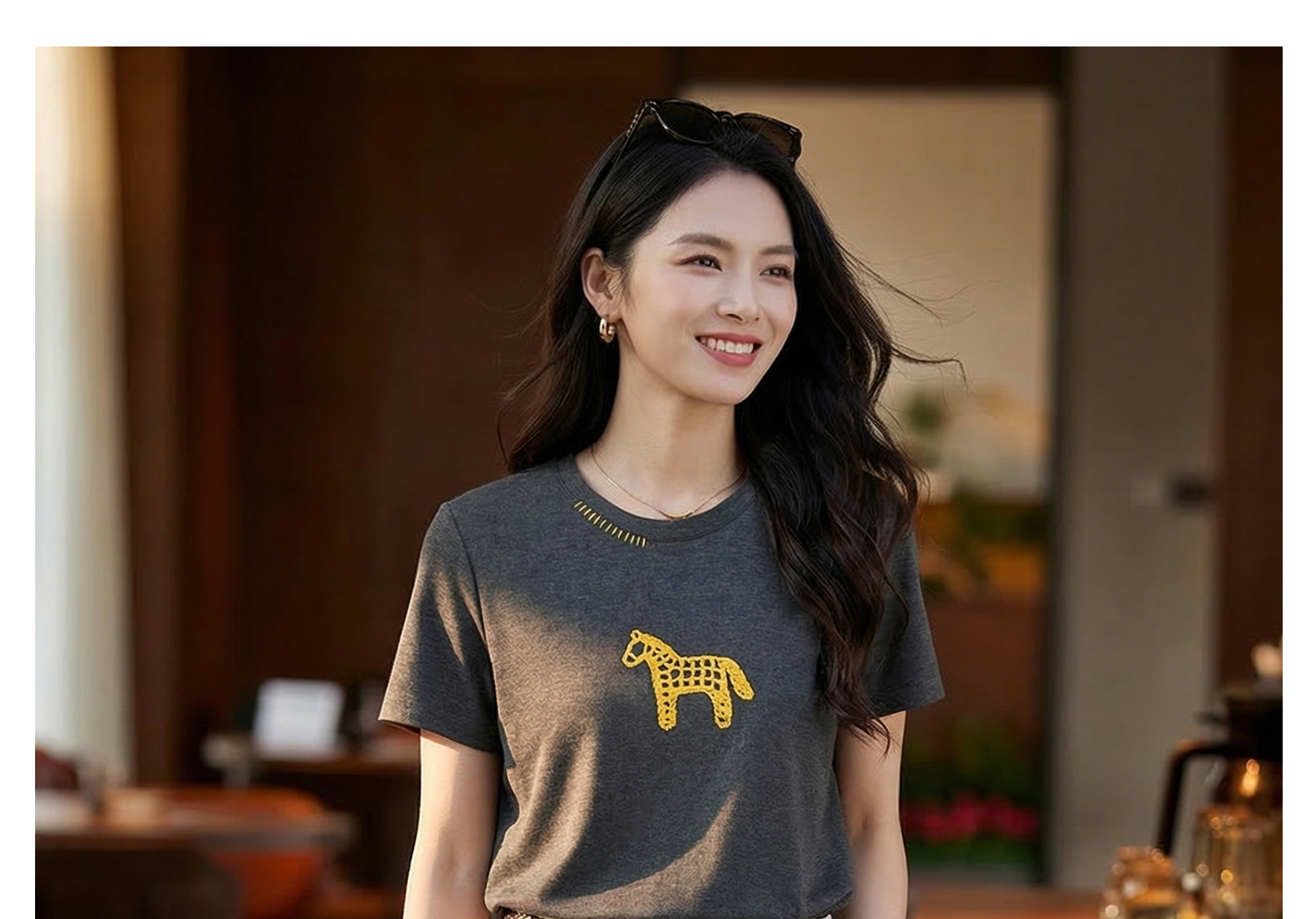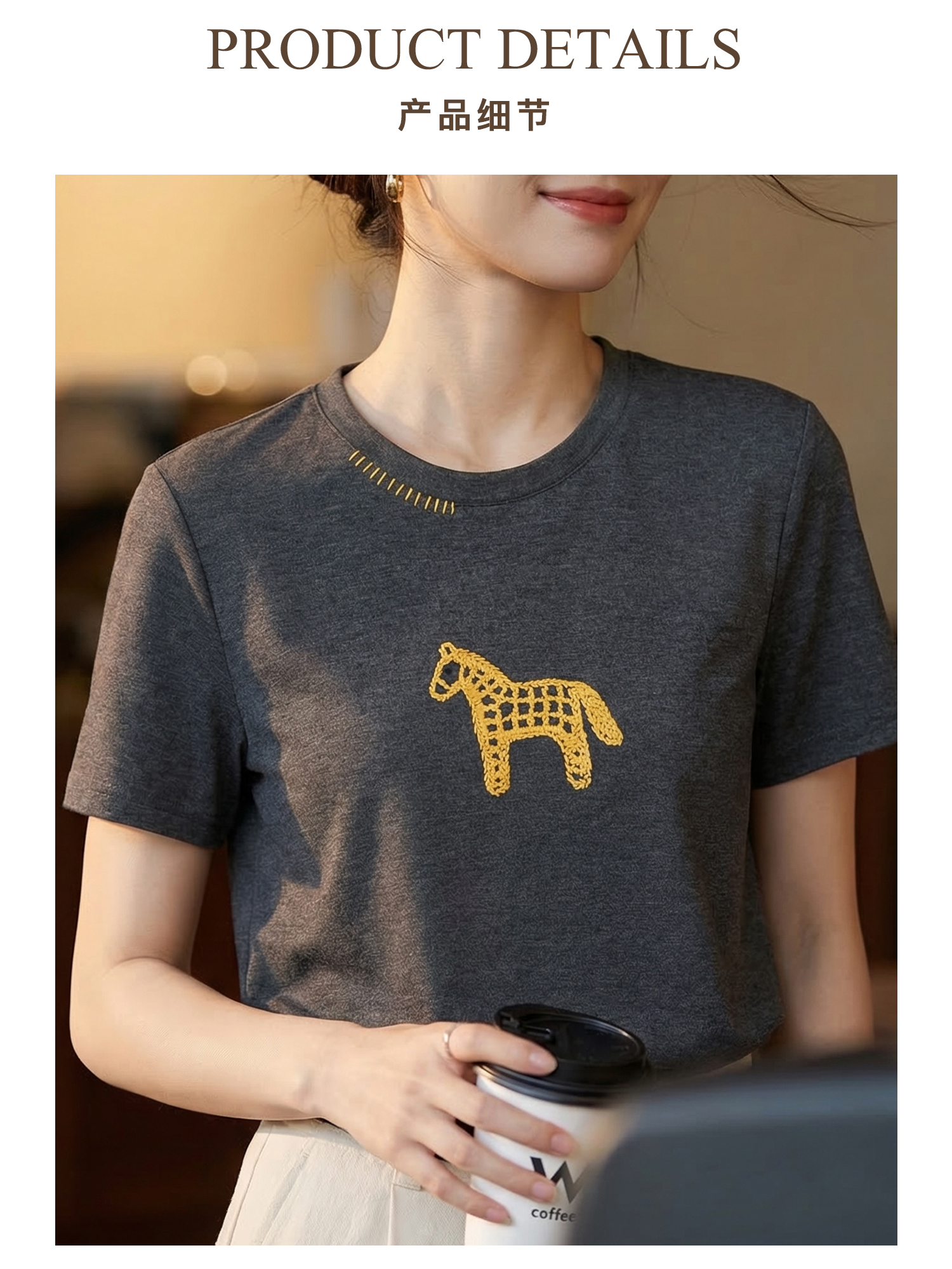 【预售10天】马年氛围感 米思阳2026春夏新款精棉刺绣趣味小马圆领韩版减龄短袖T恤1113/1154