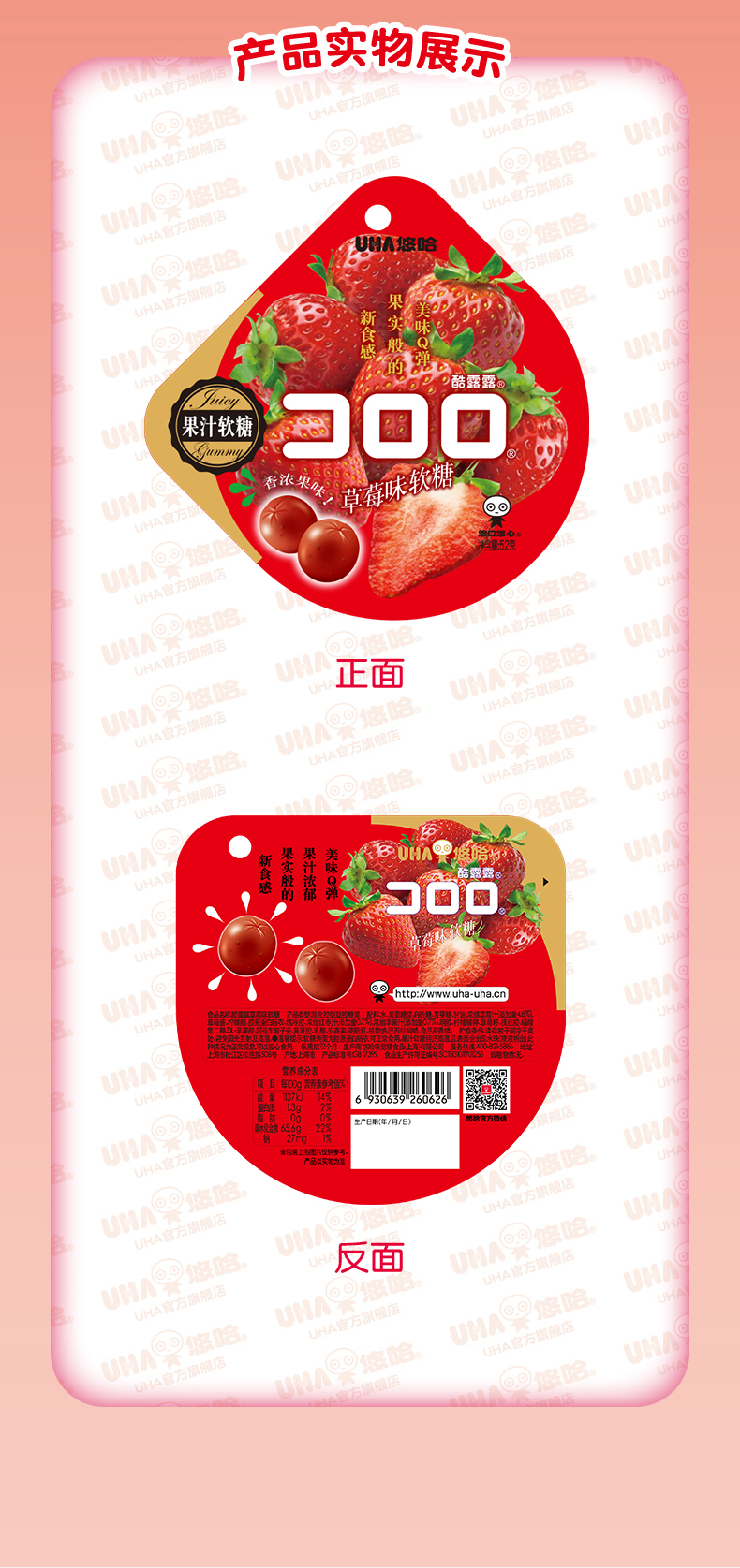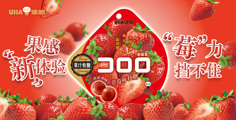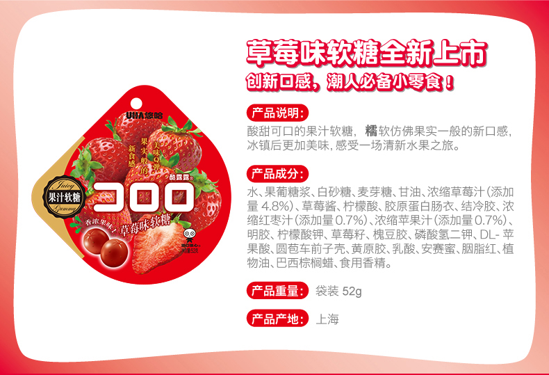 悠哈 网红零食 爆浆软糖 酷露露 草莓味果汁软糖果 52g