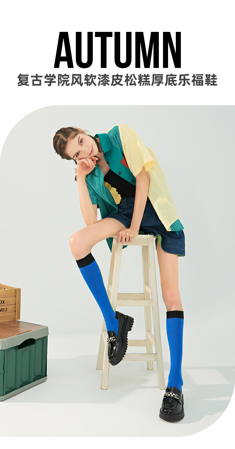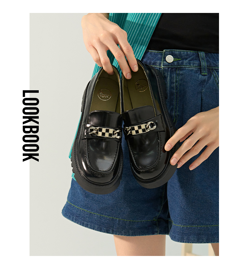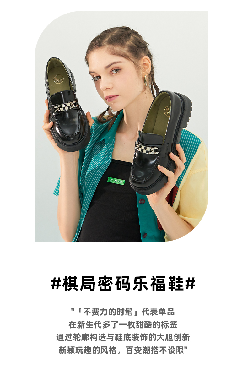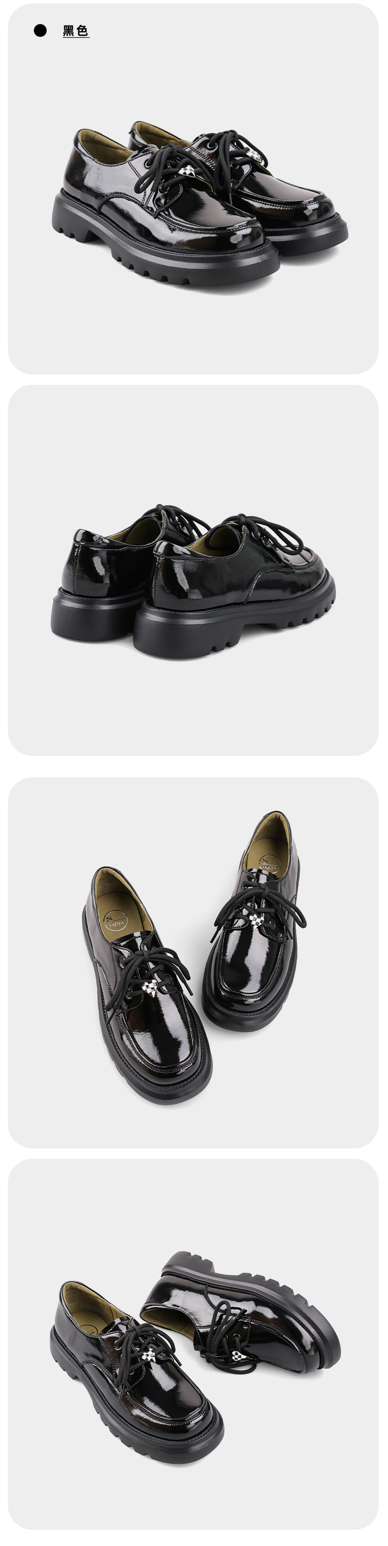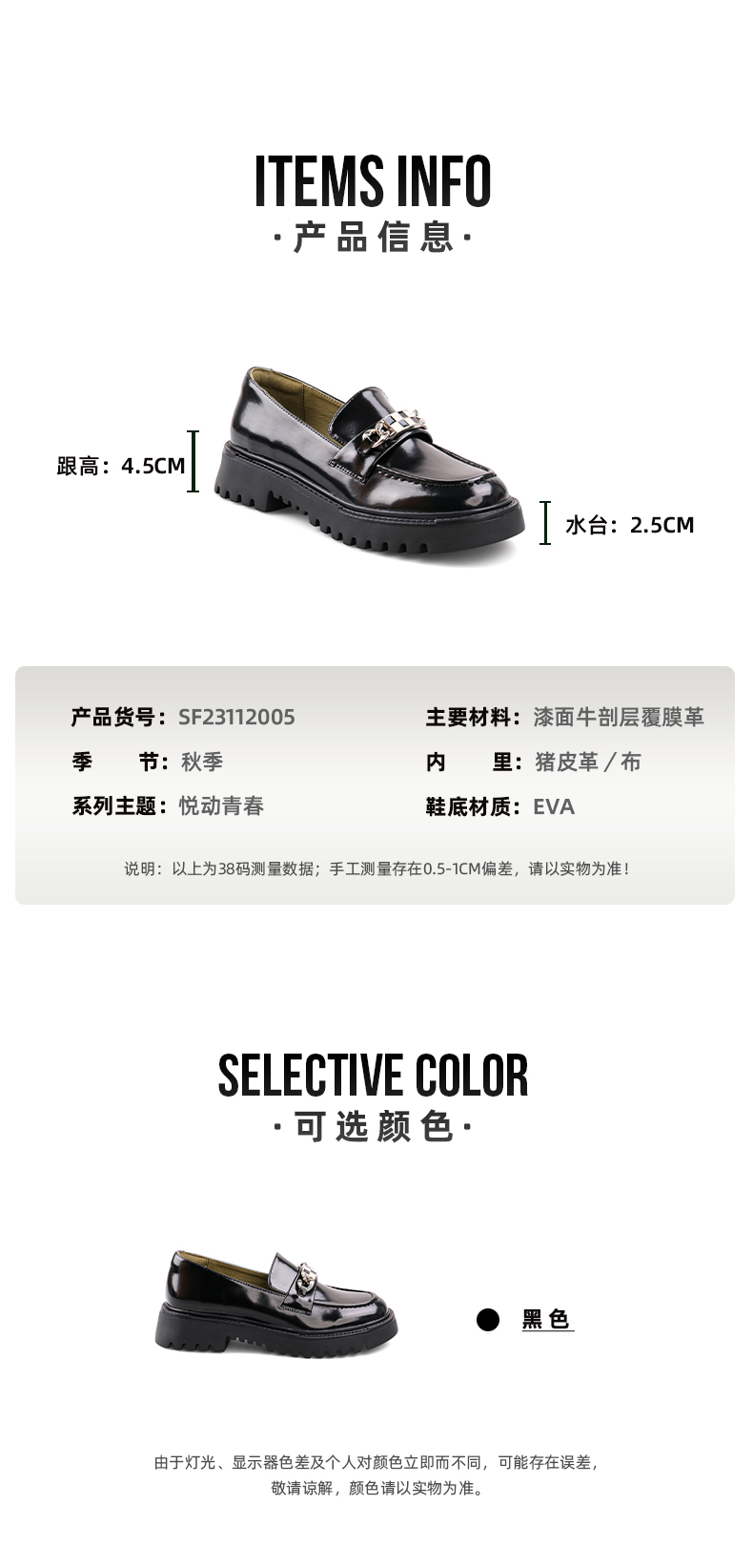 Safiya/索菲娅复古学院风软漆皮浅口单鞋松糕厚底超轻系列一脚蹬乐福鞋女 SF23112005