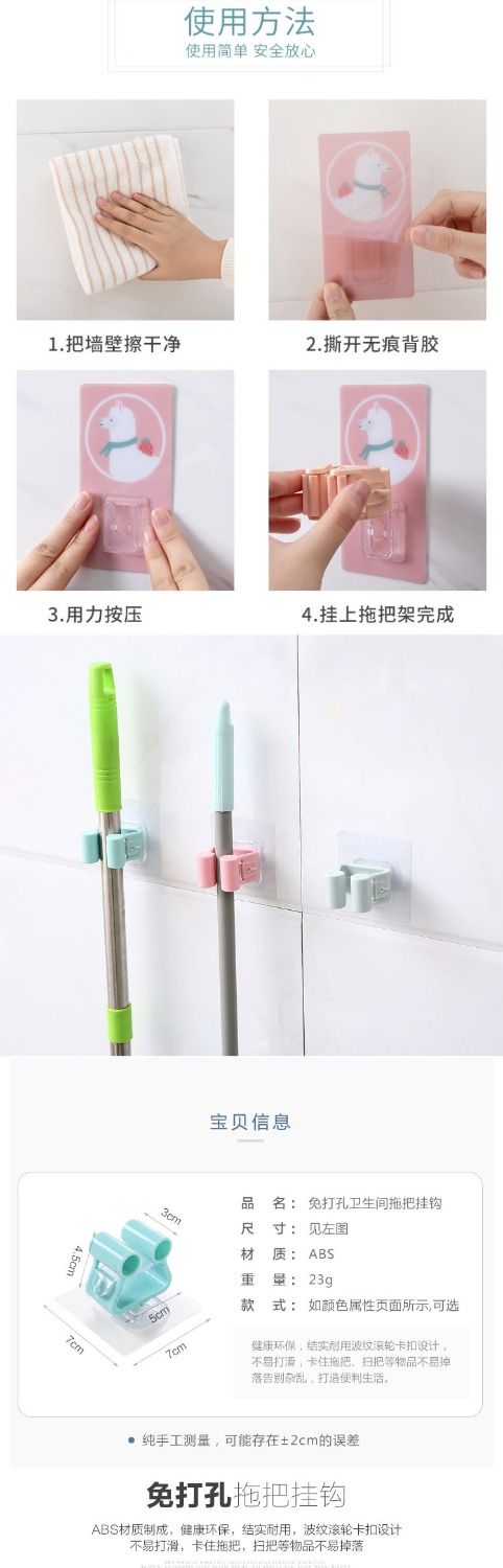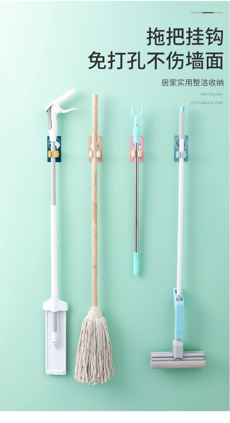 【免打孔拖把架】扫把卡座夹居家日用卫生间扫把架无痕粘胶壁挂式收纳整理
