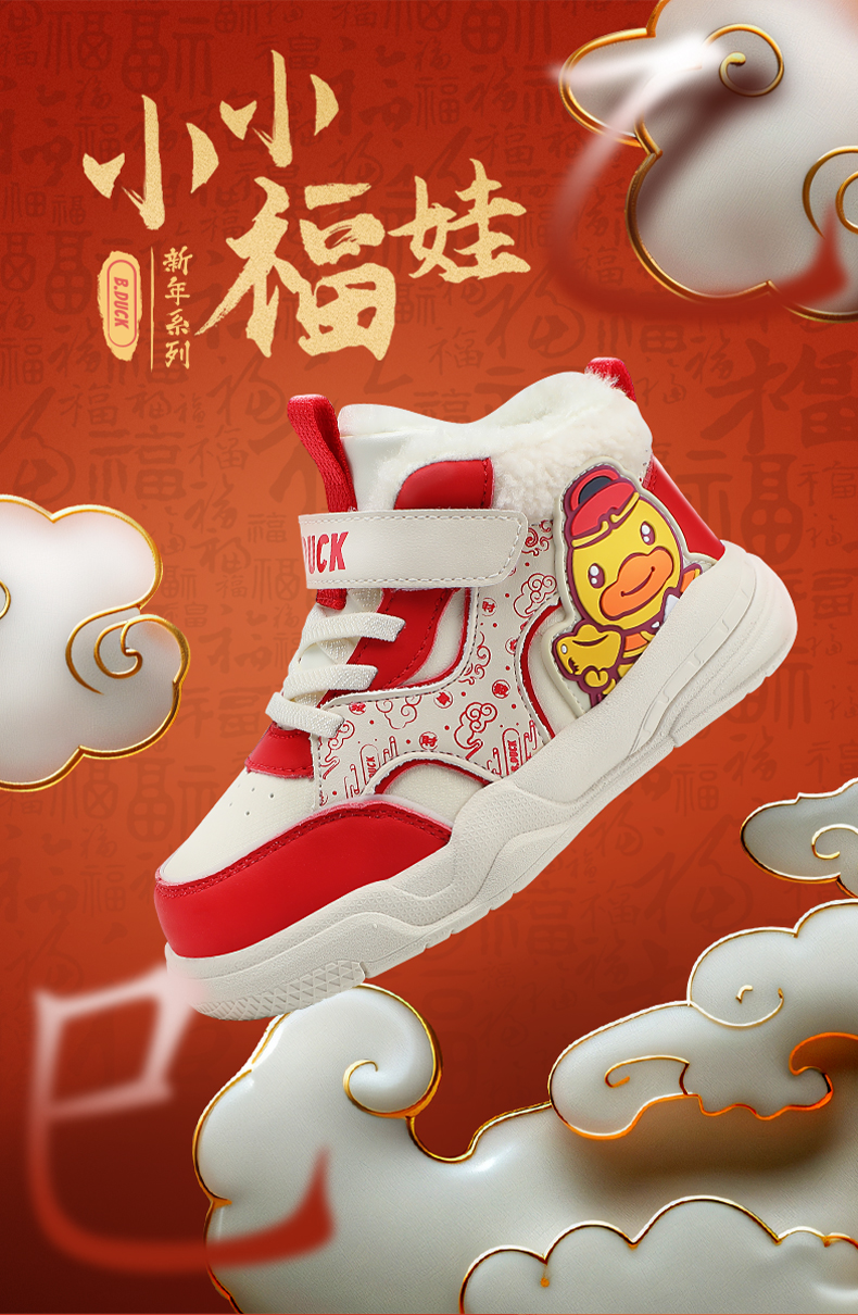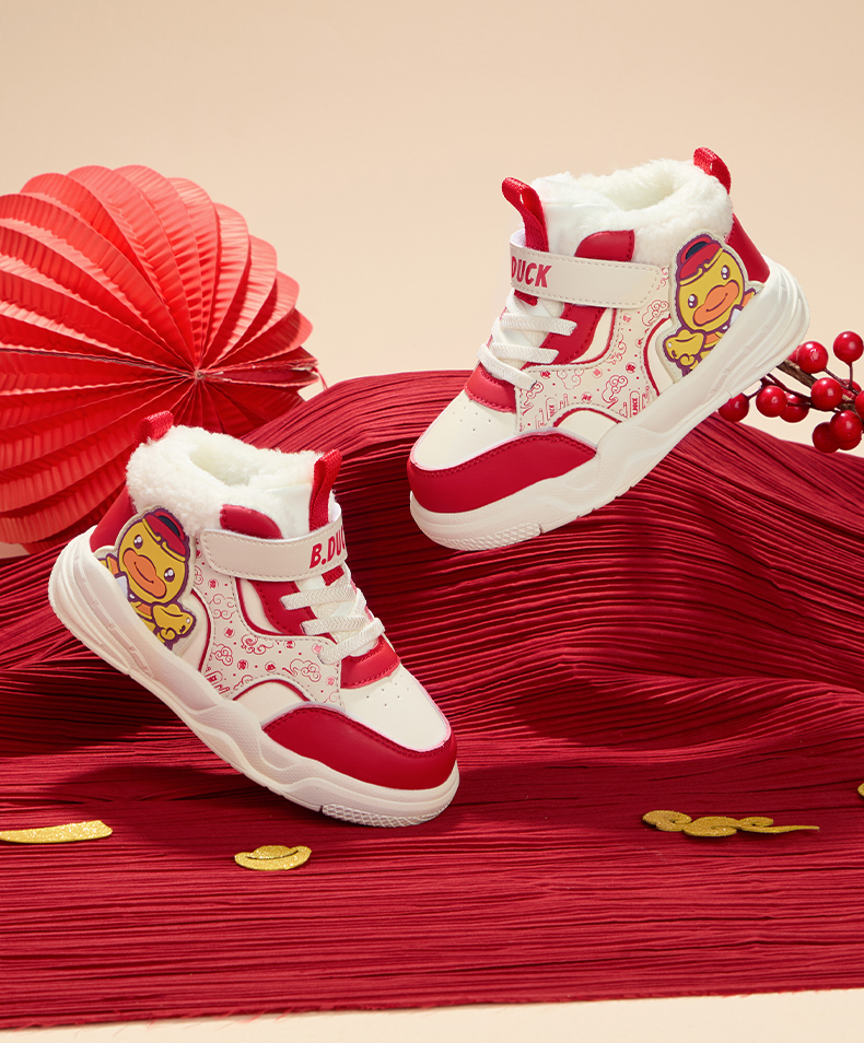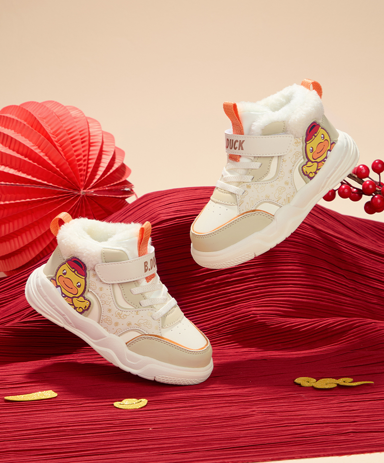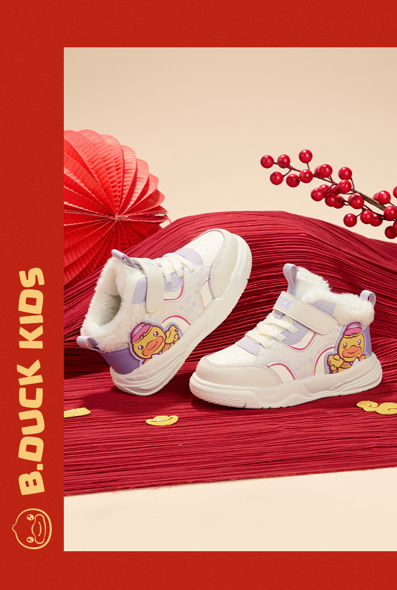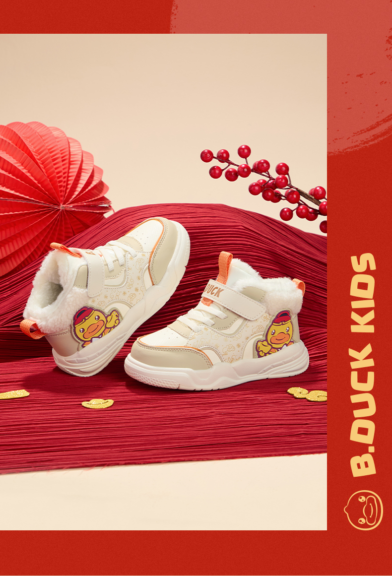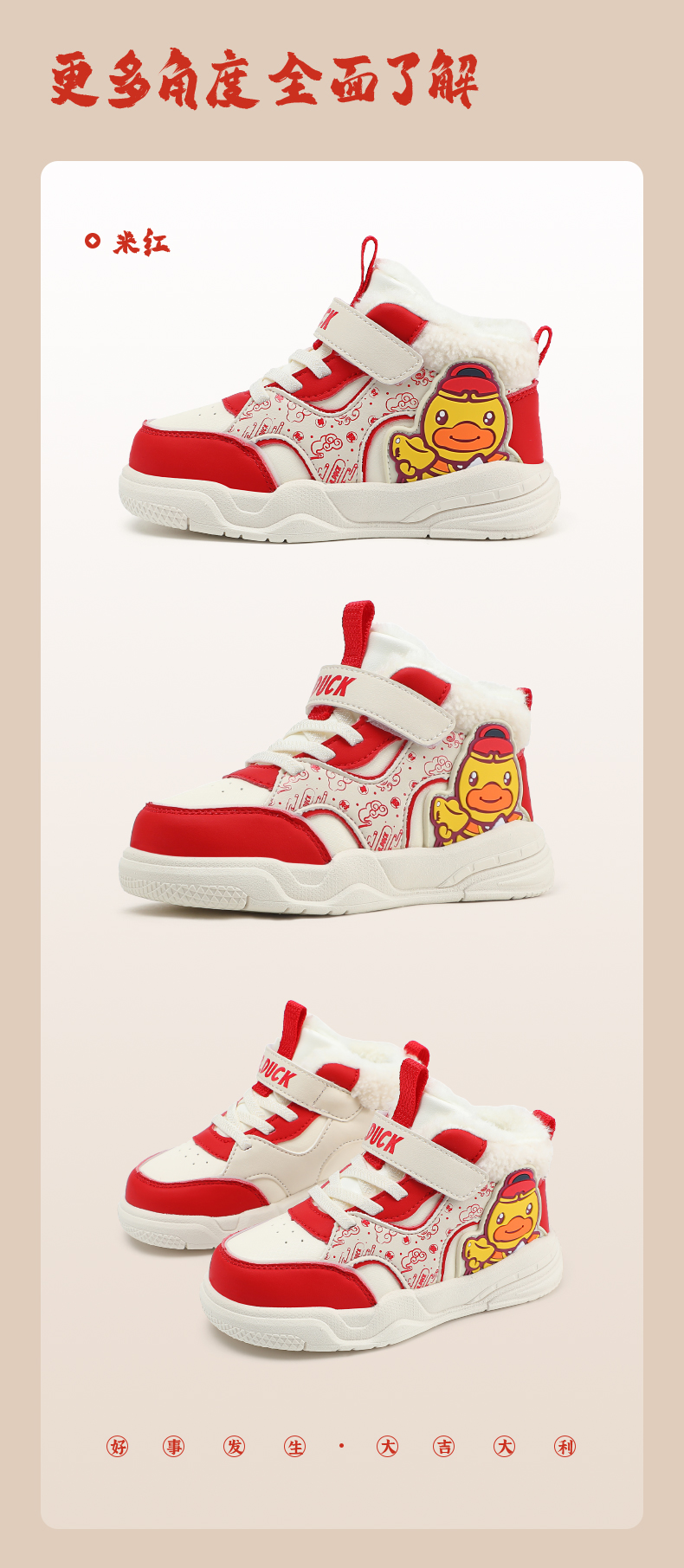 B.Duck小黄鸭童鞋冬季男女童高帮板鞋加绒新年款24-30 B5586944