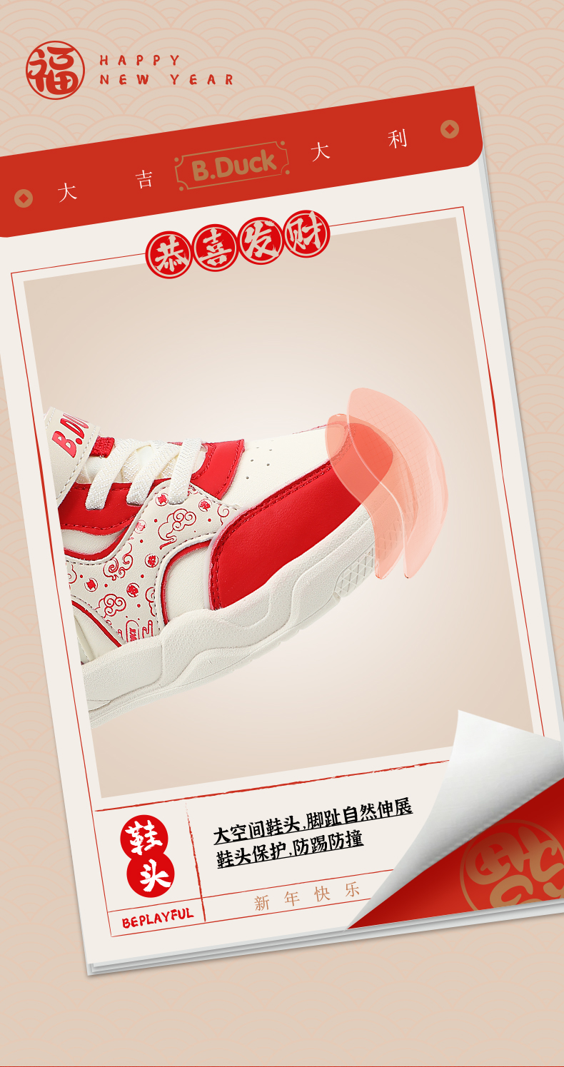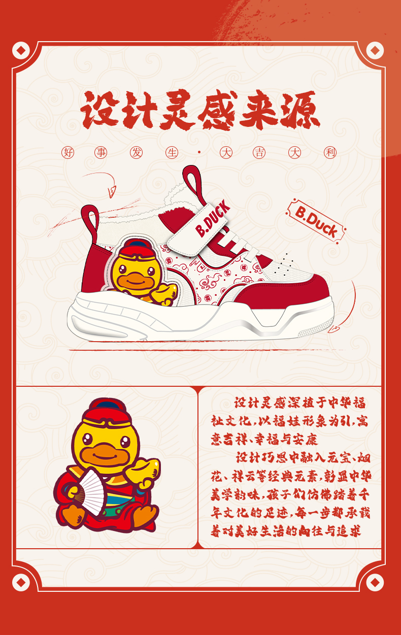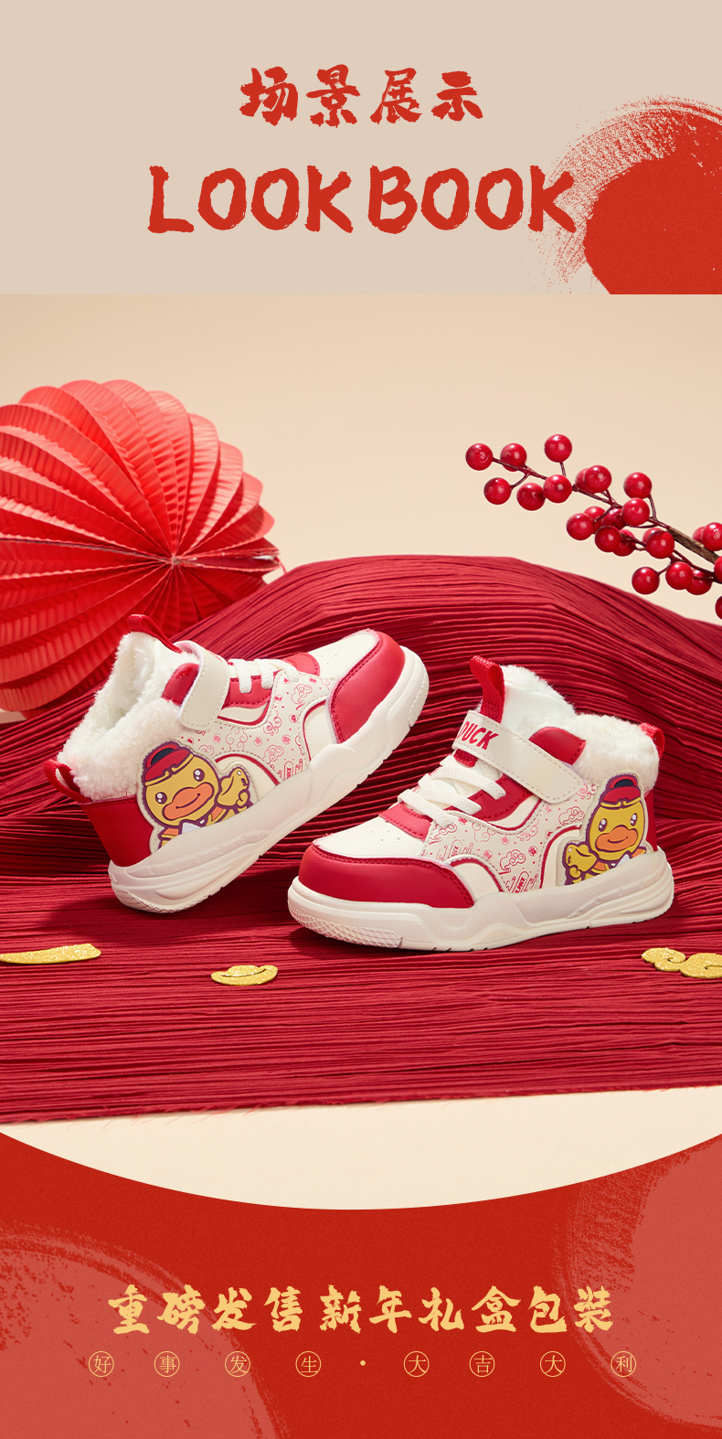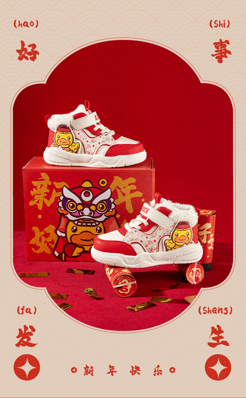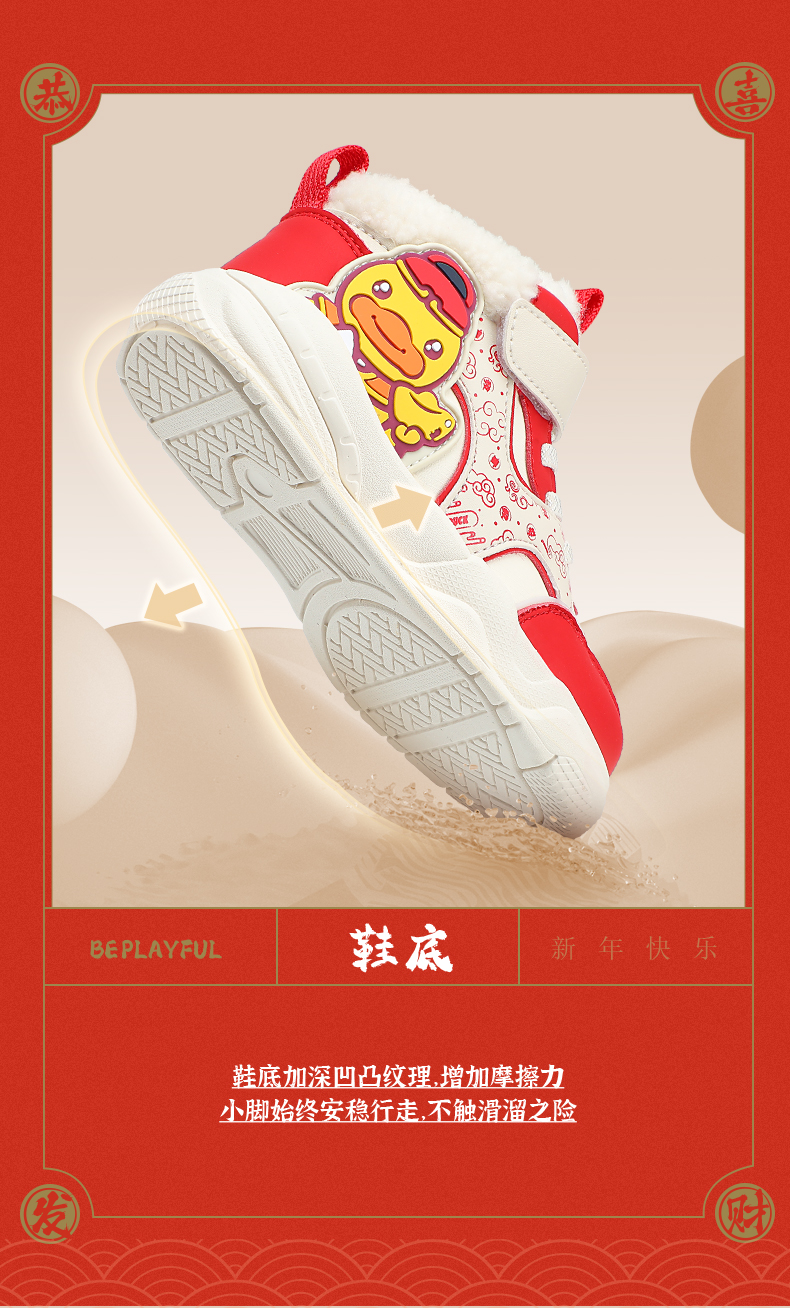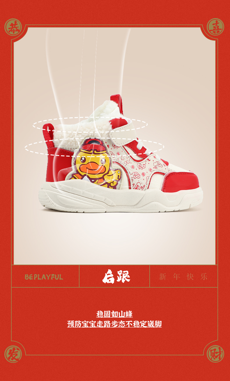 B.Duck小黄鸭童鞋冬季男女童高帮板鞋加绒新年款24-30 B5586944