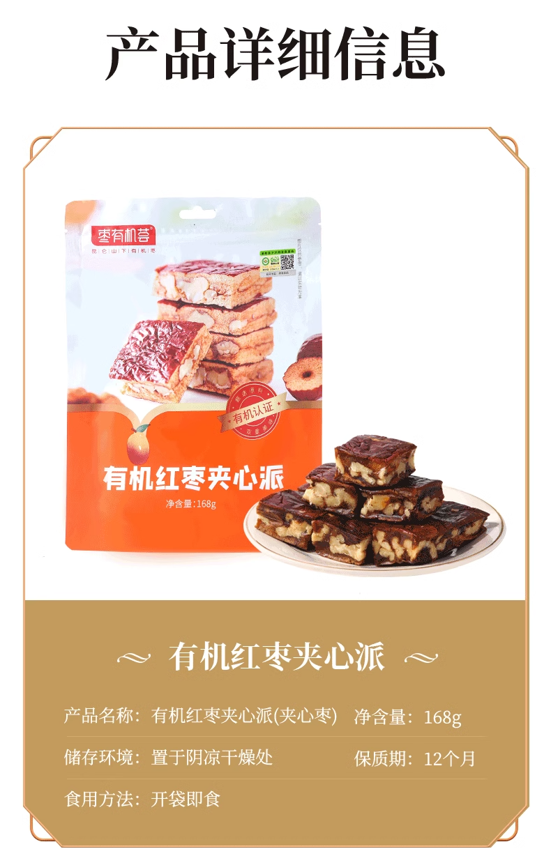 臻如意枣有机荟有机红枣夹心派袋装核桃仁无添加孕妈营养休闲零食