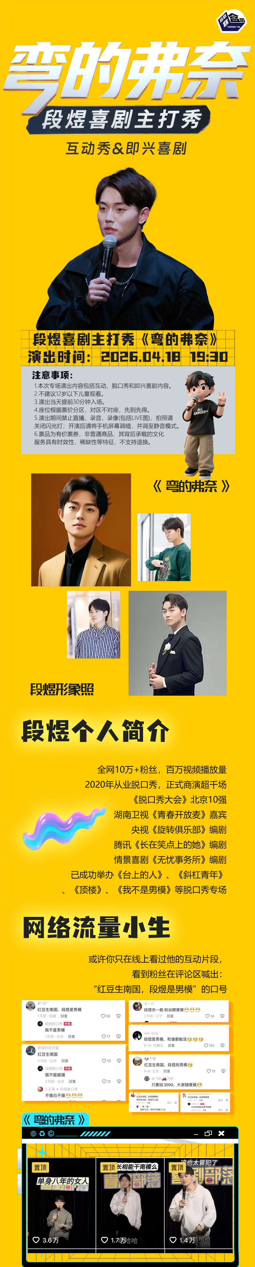 【苏州】4月18日周六19:30 段煜喜剧主打秀 《弯的弗奈》-喜剧联盒国脱口秀 商品图0