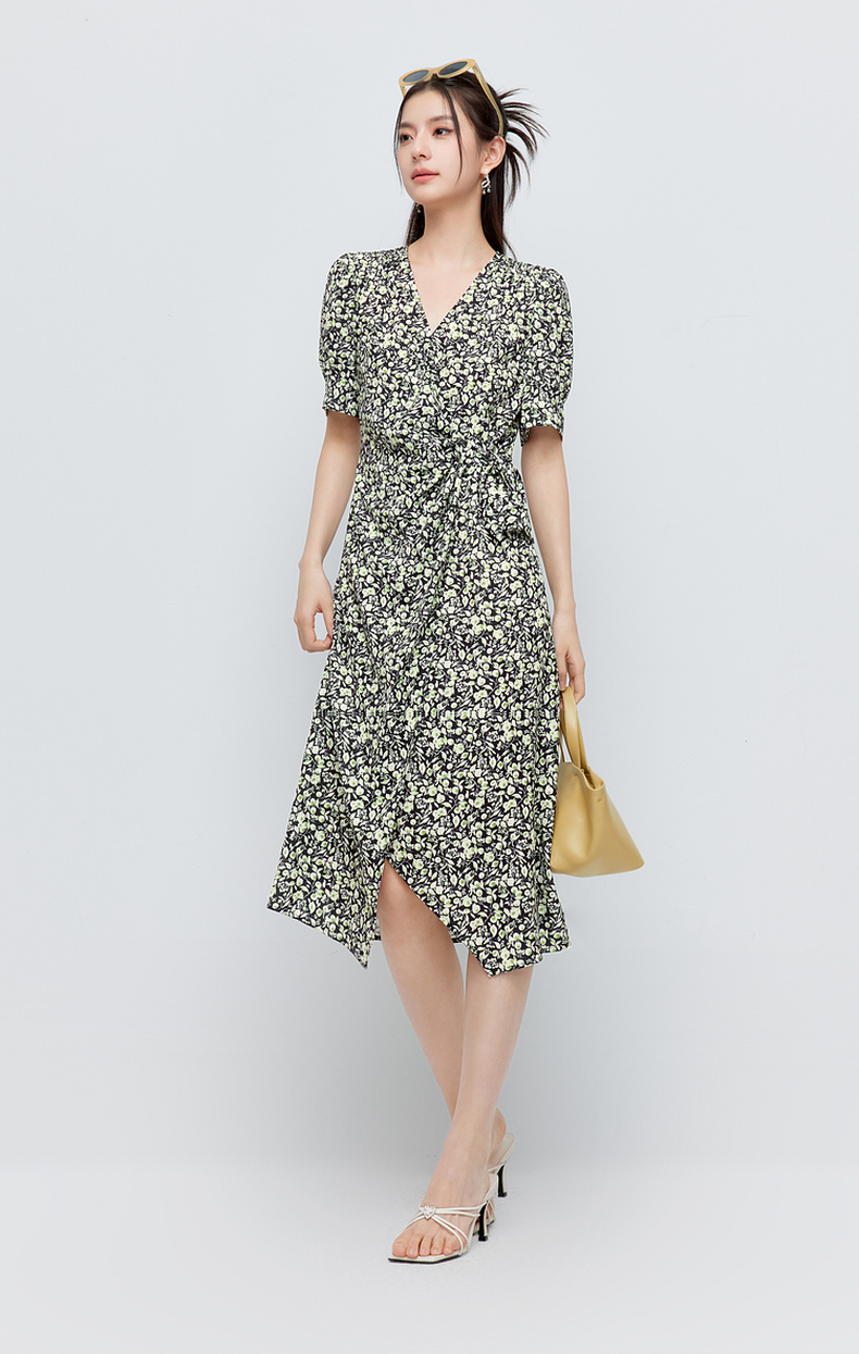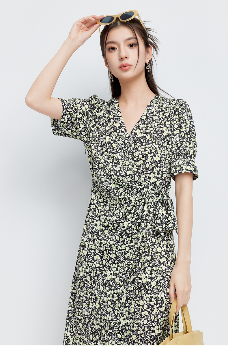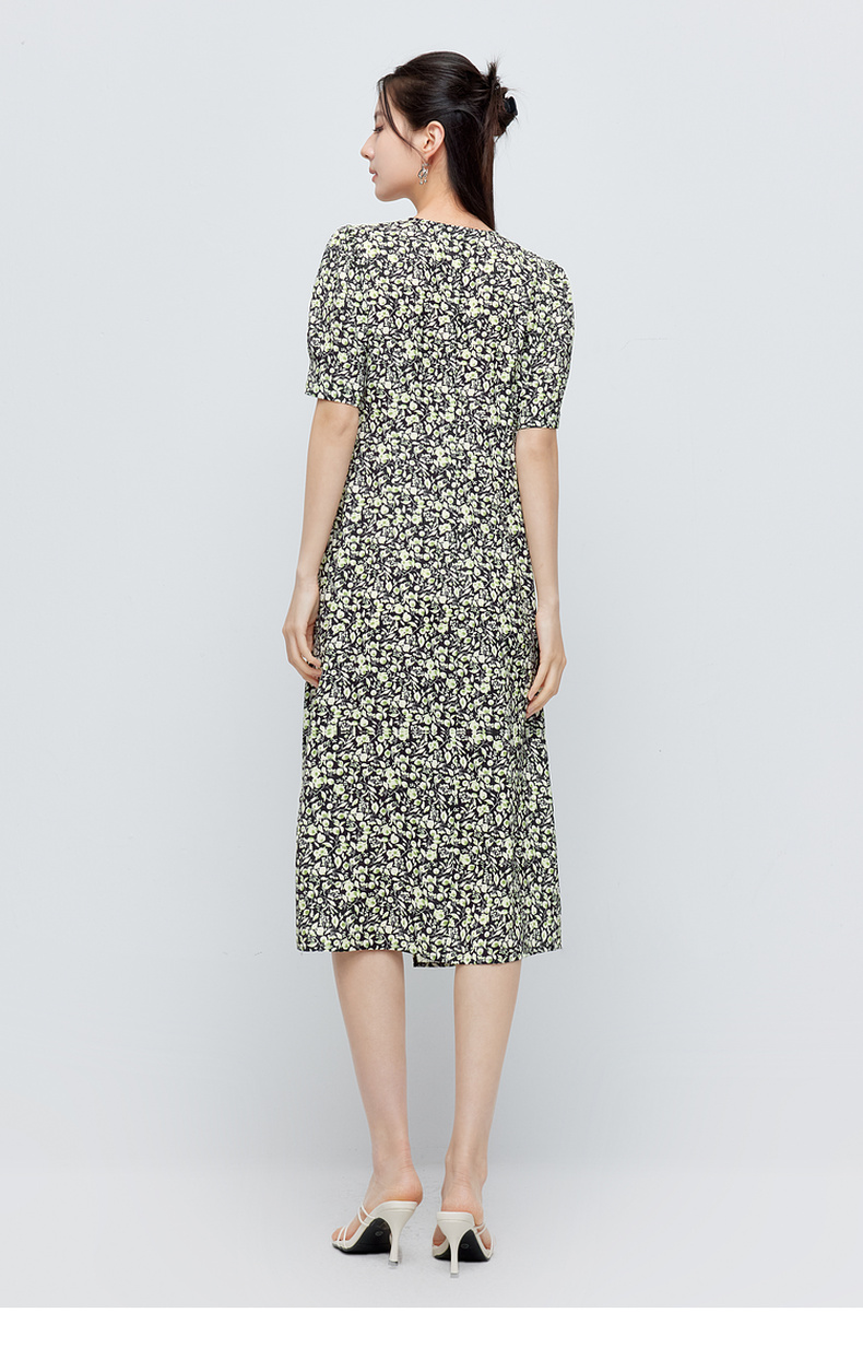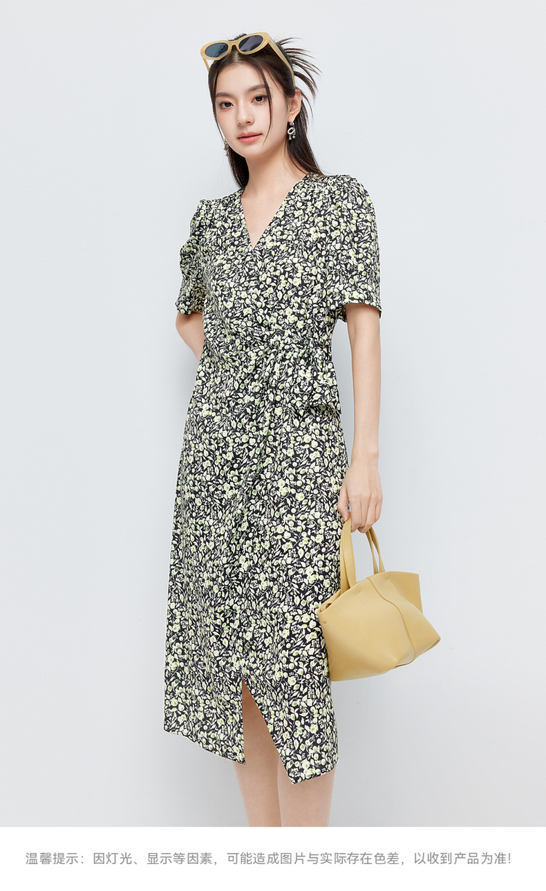 【商场同款】诗凡黎v领碎花连衣裙2024夏新款漂亮中长裙3F4290241