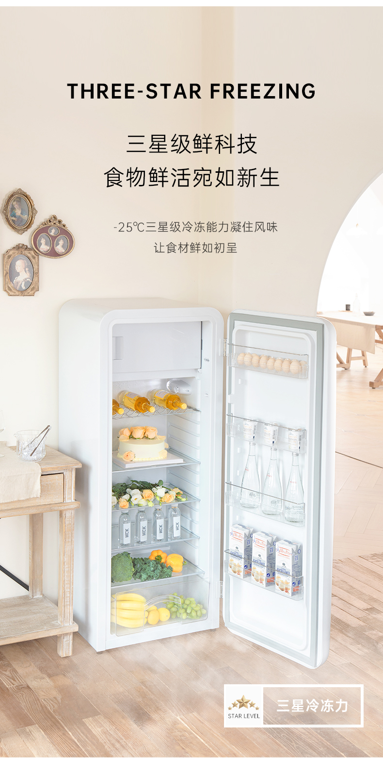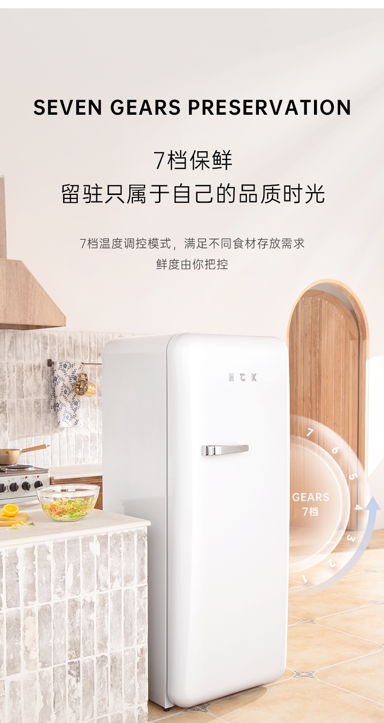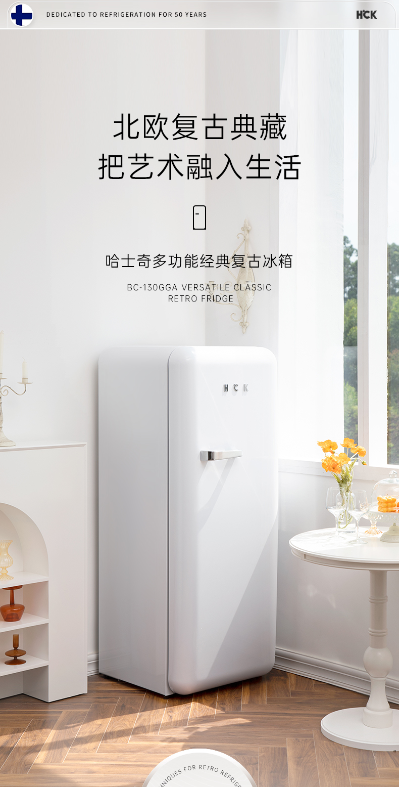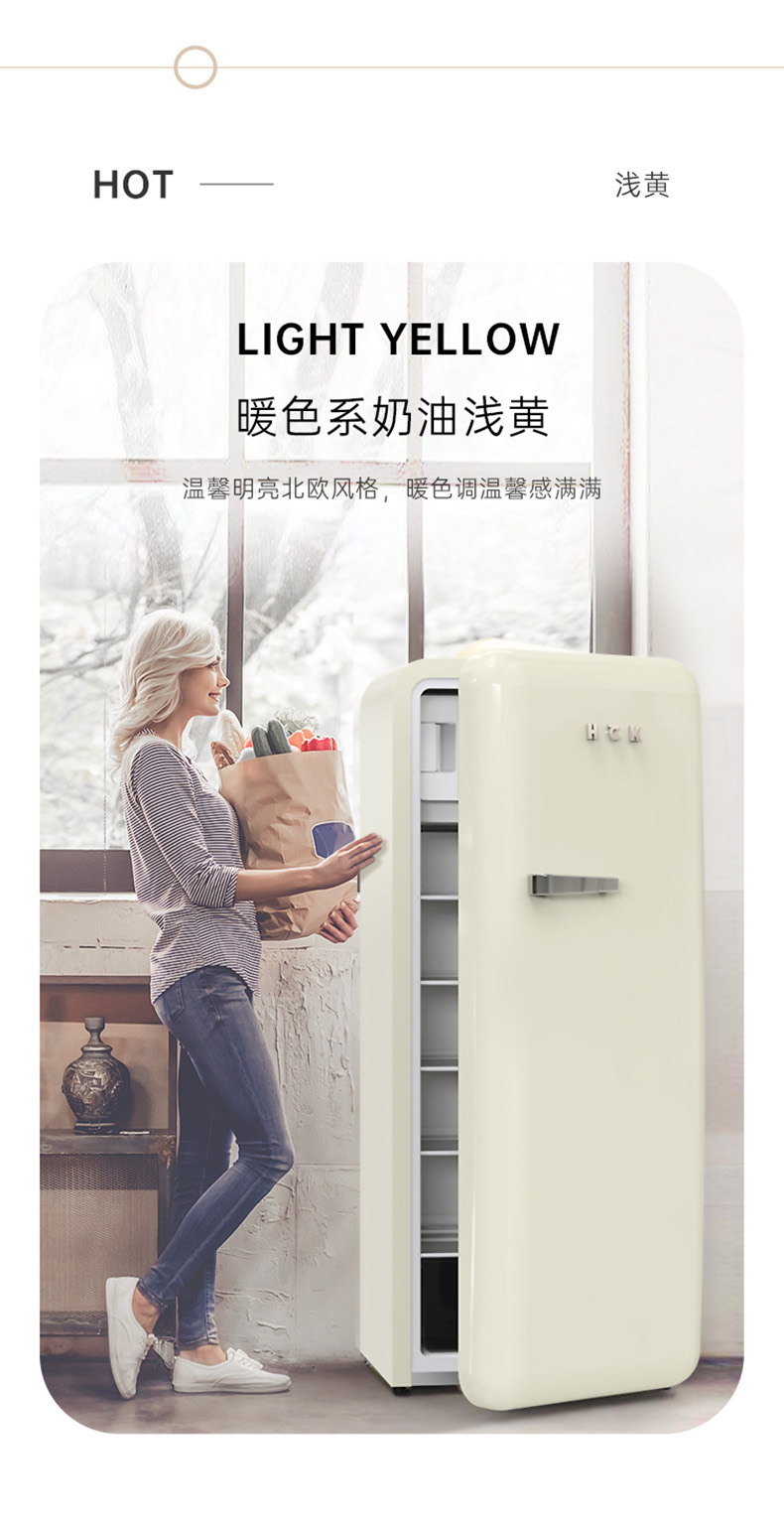 HCK哈士奇 BC-130GGA 复古冰箱进口家用单门大容量冷藏冷冻
