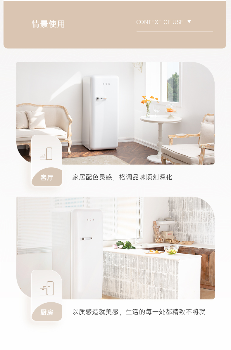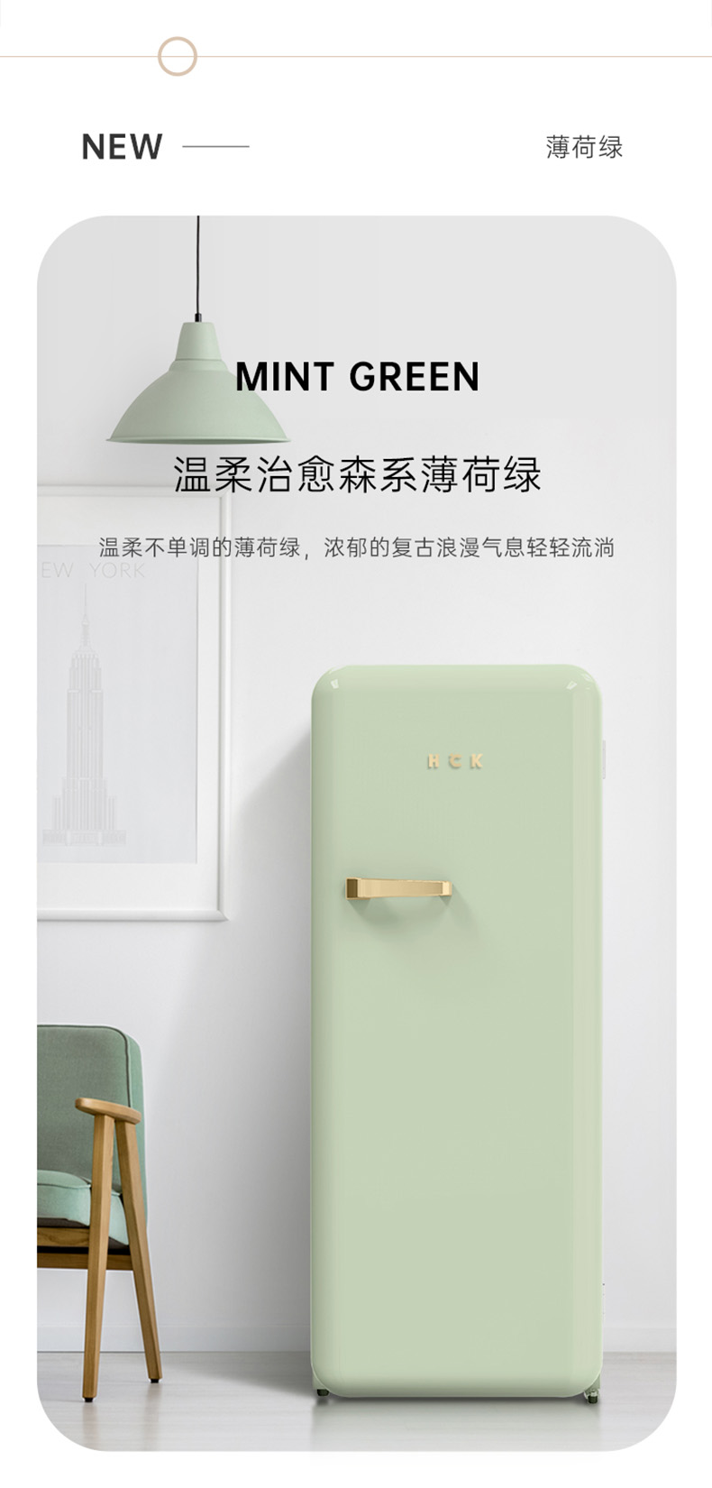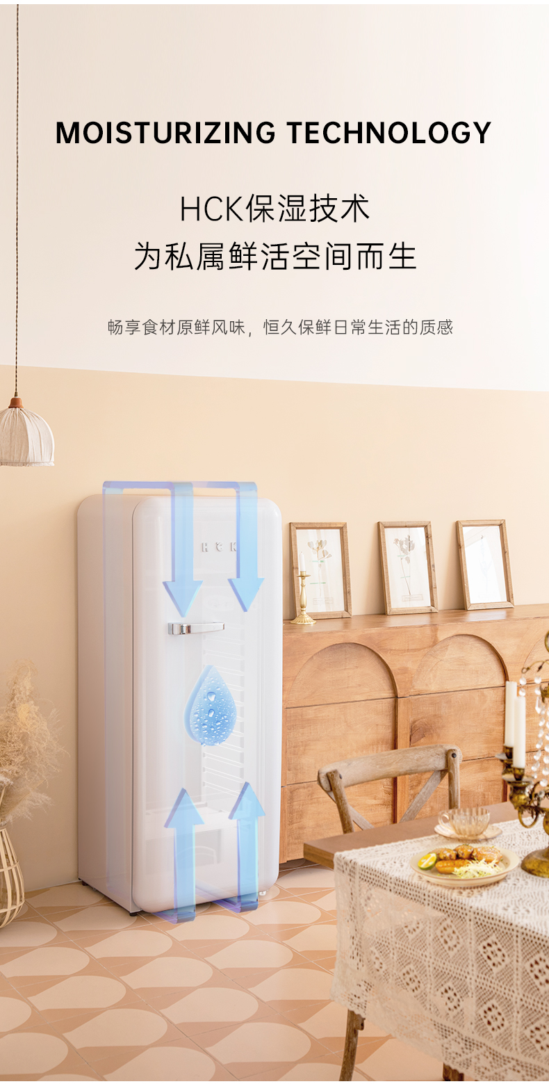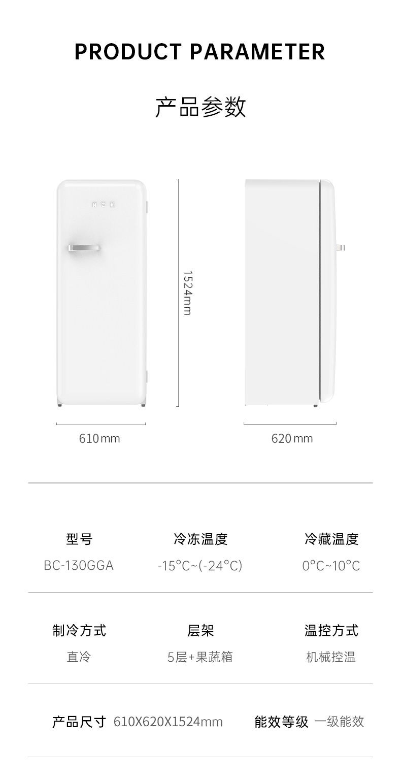 HCK哈士奇 BC-130GGA 复古冰箱进口家用单门大容量冷藏冷冻