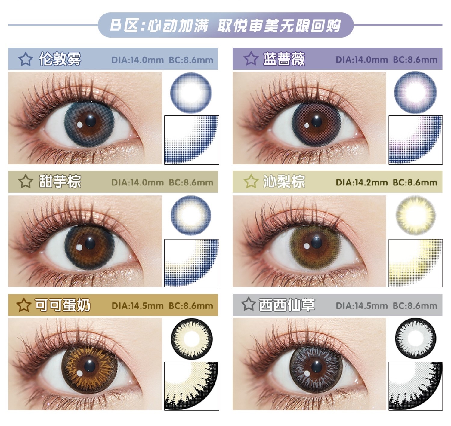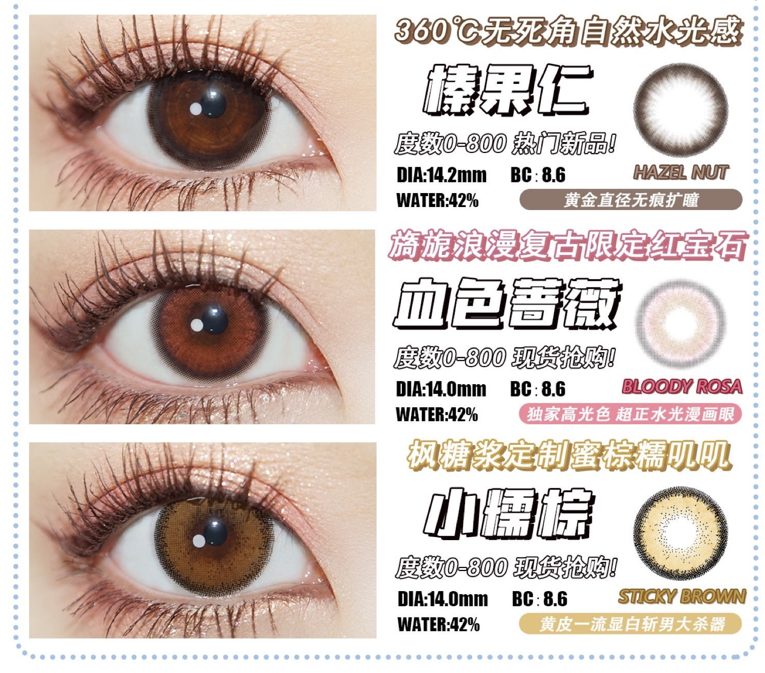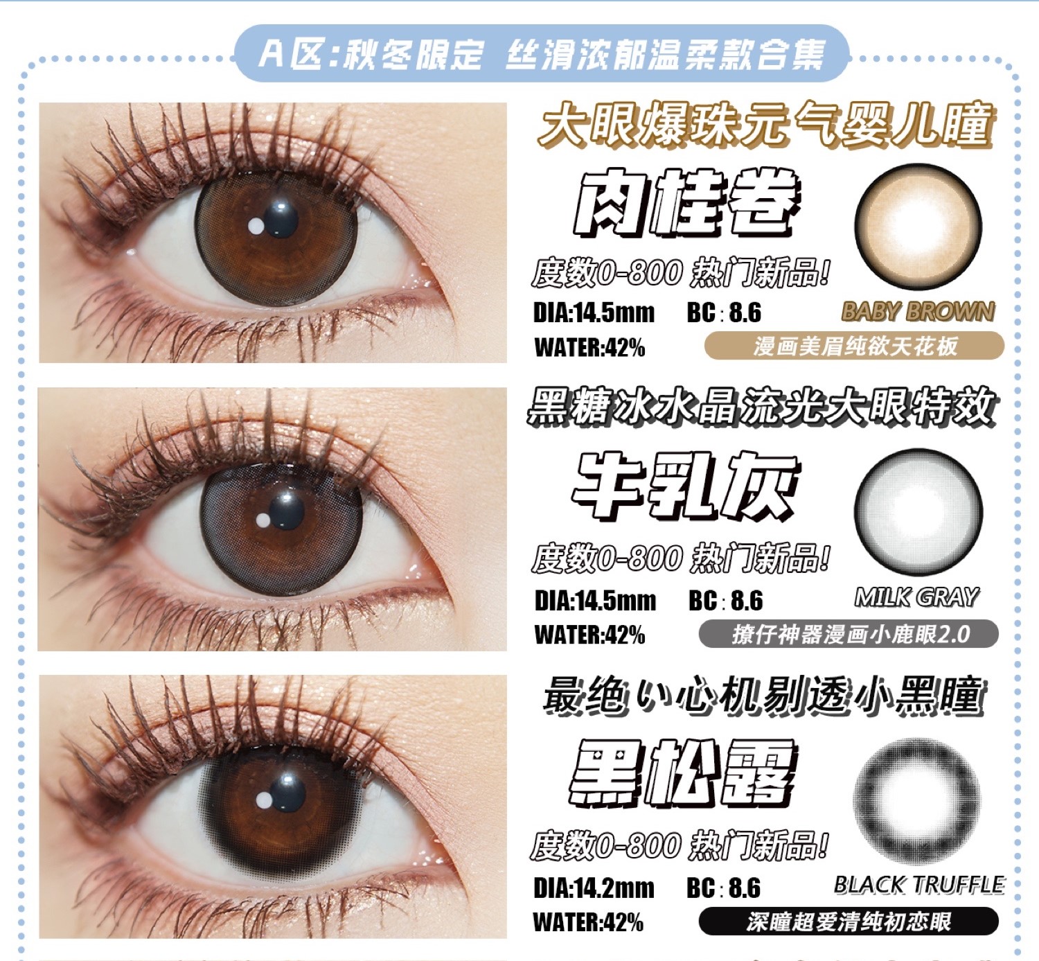 镜片材质: 硅水凝胶年抛