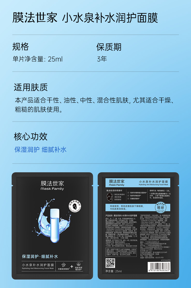 【100膜币+29.9元】膜法世家小水泉补水润护黑面膜16片
