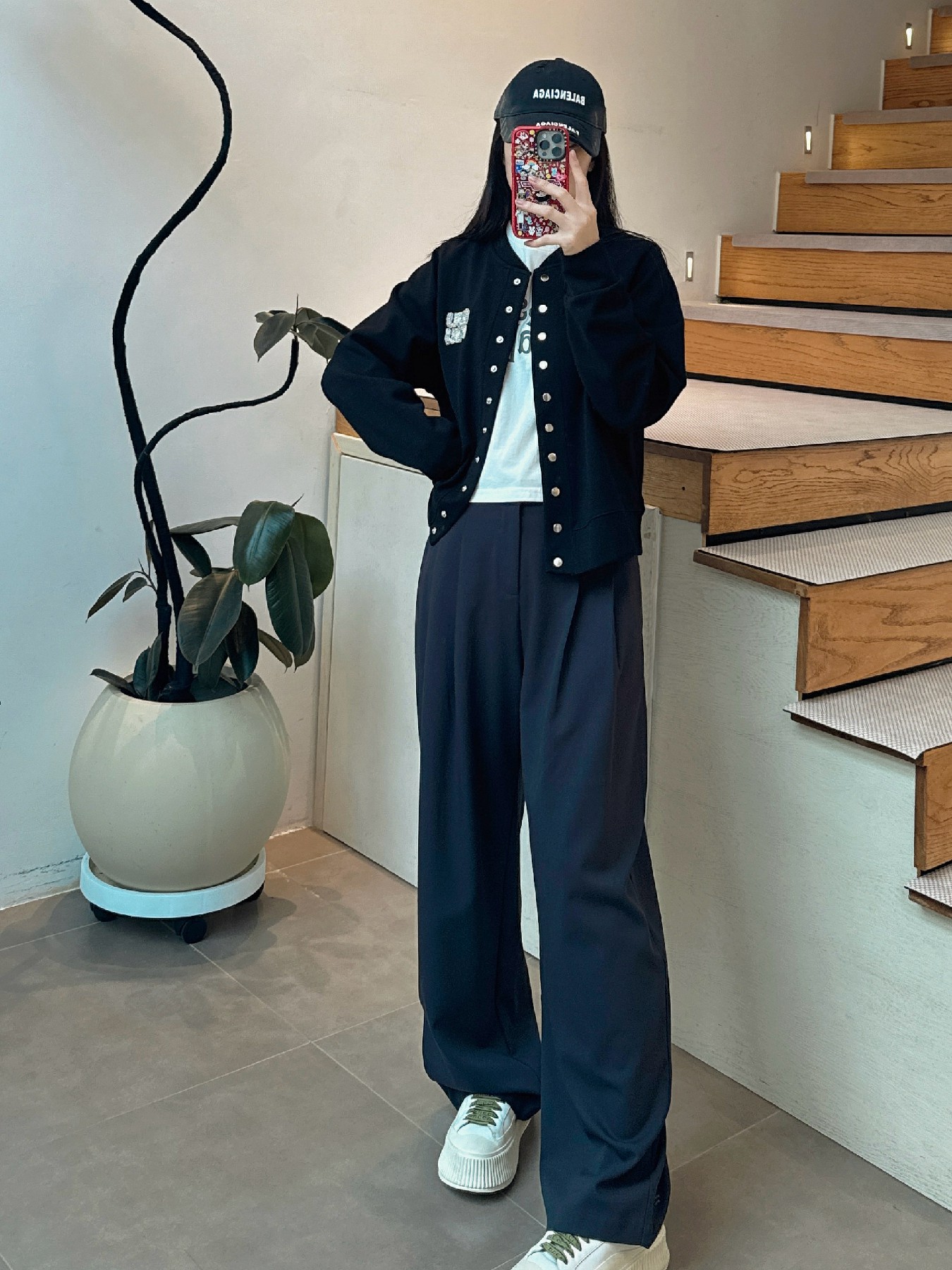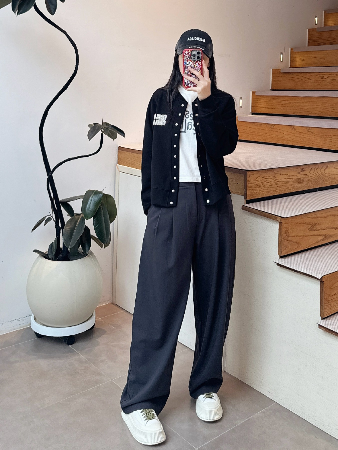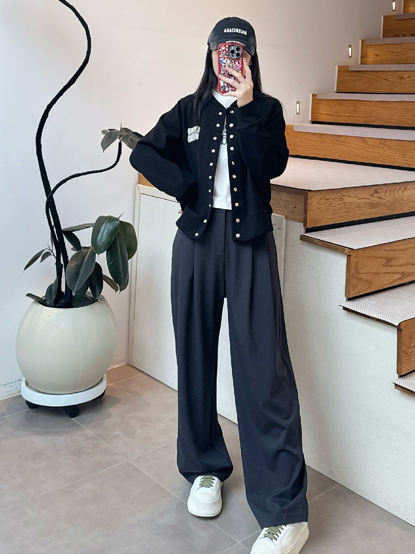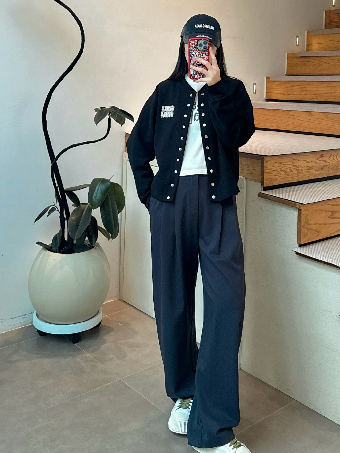 2025秋冬新款时尚百搭立领纯色一条线袖口花边