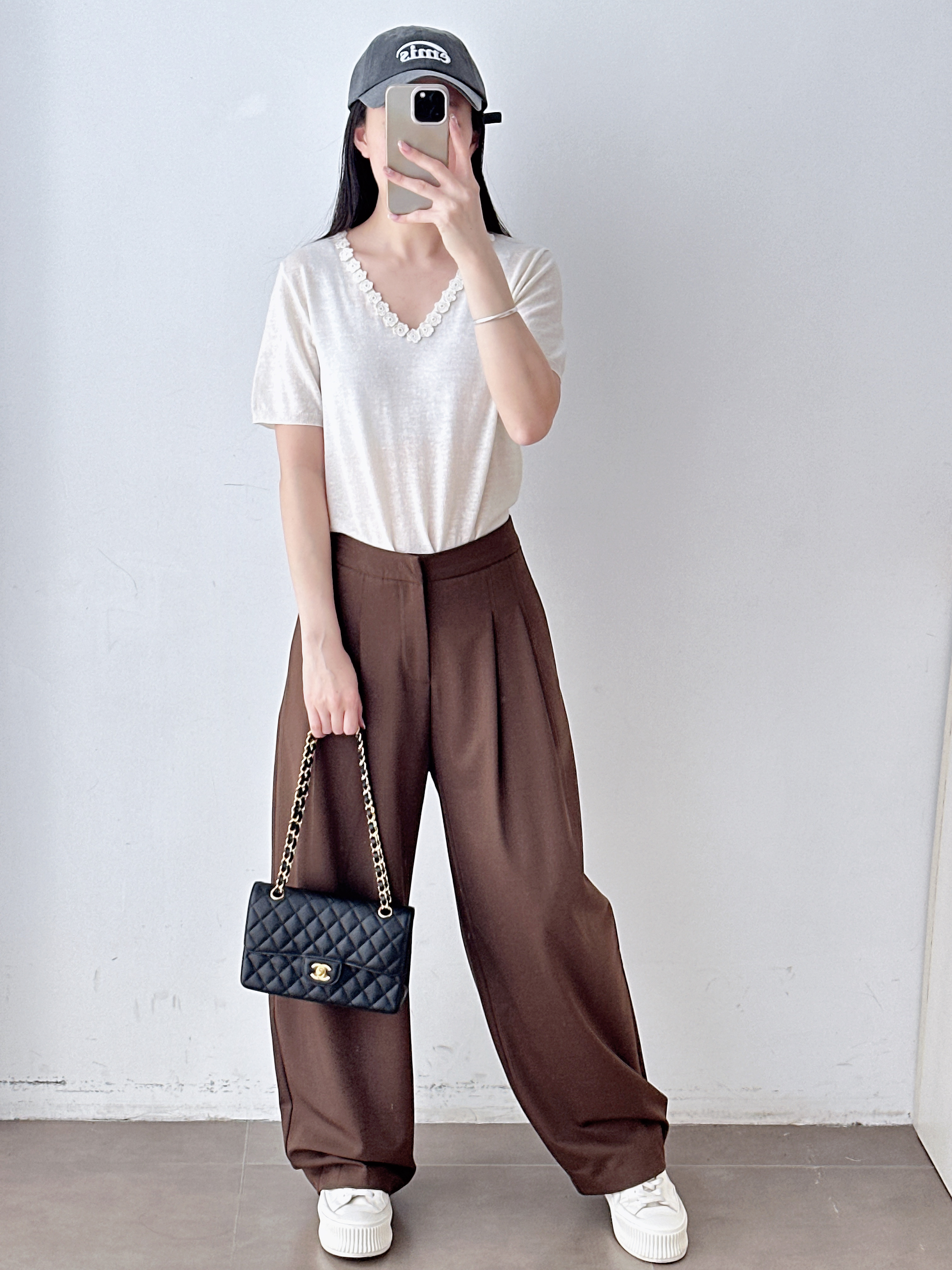 2023新款舒适简约锦棉休闲裤长裤系带松紧腰纯色女裤