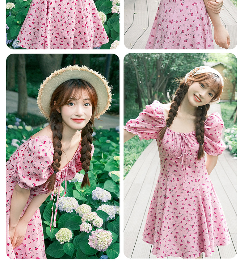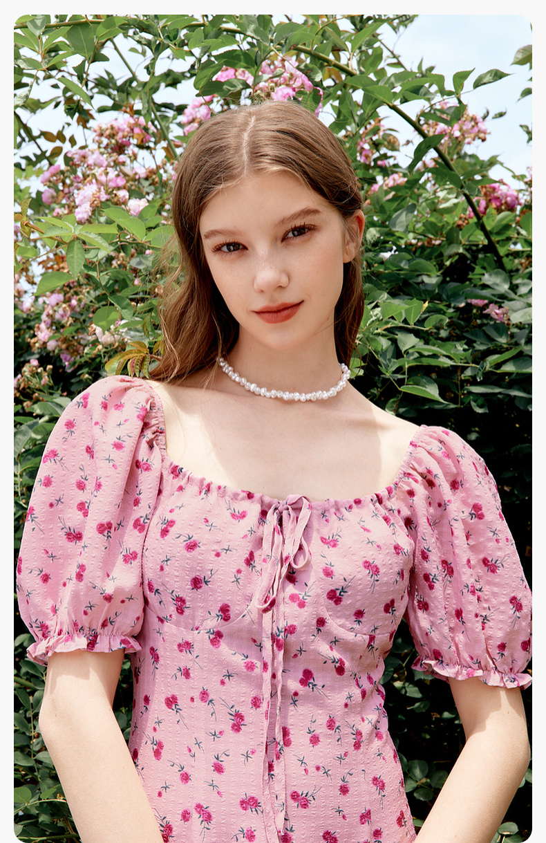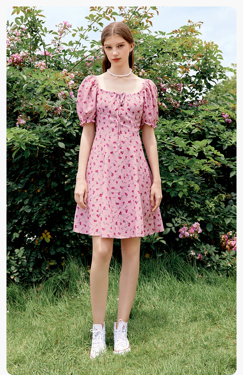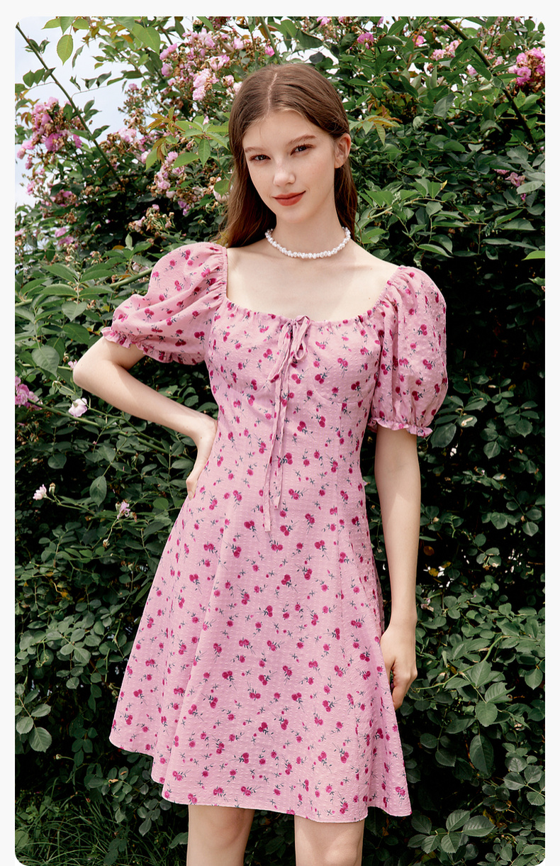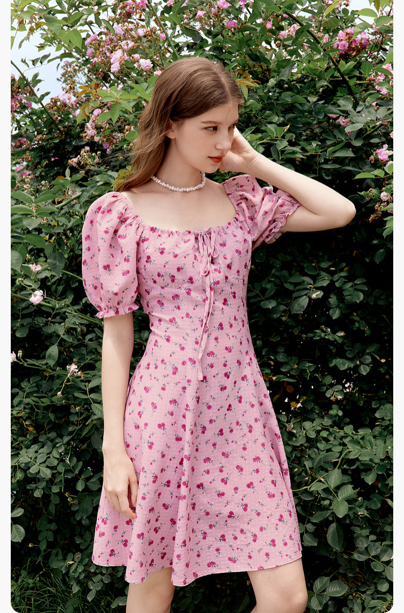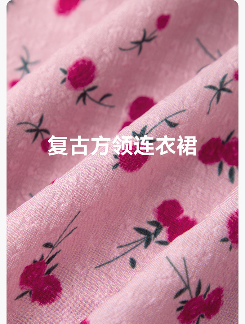 【严选】诗凡黎夏复古方领飘带抽皱设计收腰连衣裙SE6190561
