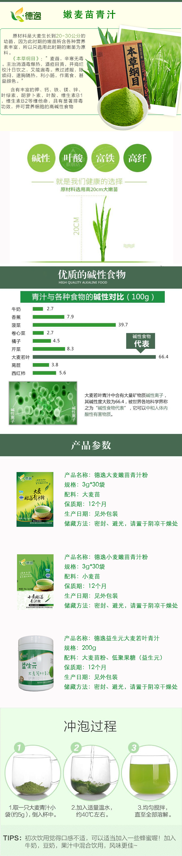德逸小麦嫩苗青汁粉 青汁 3g*30袋/盒