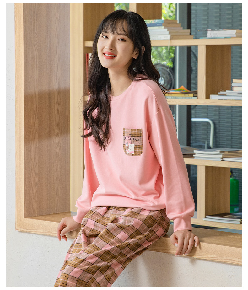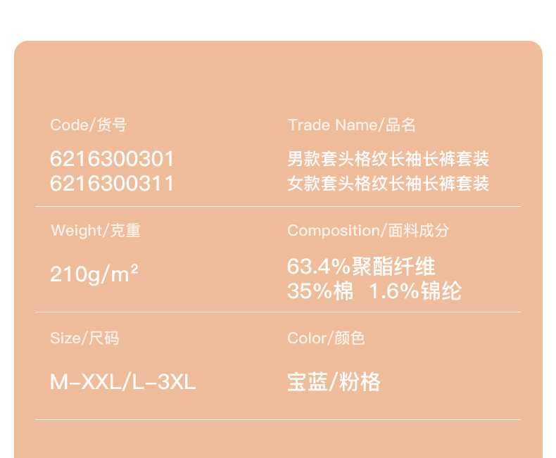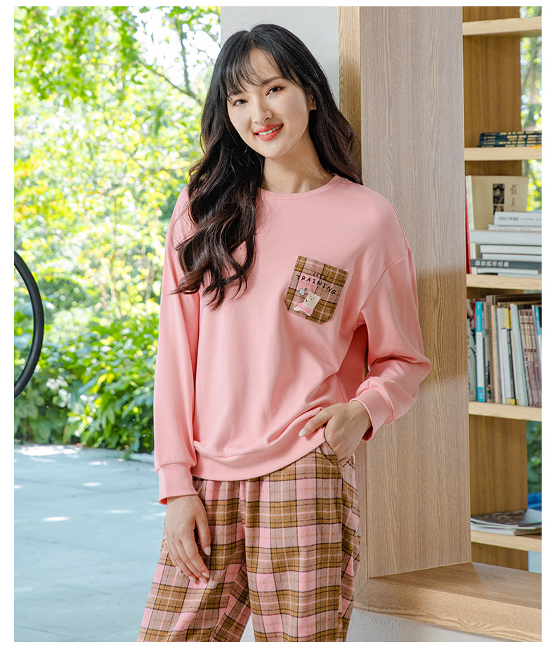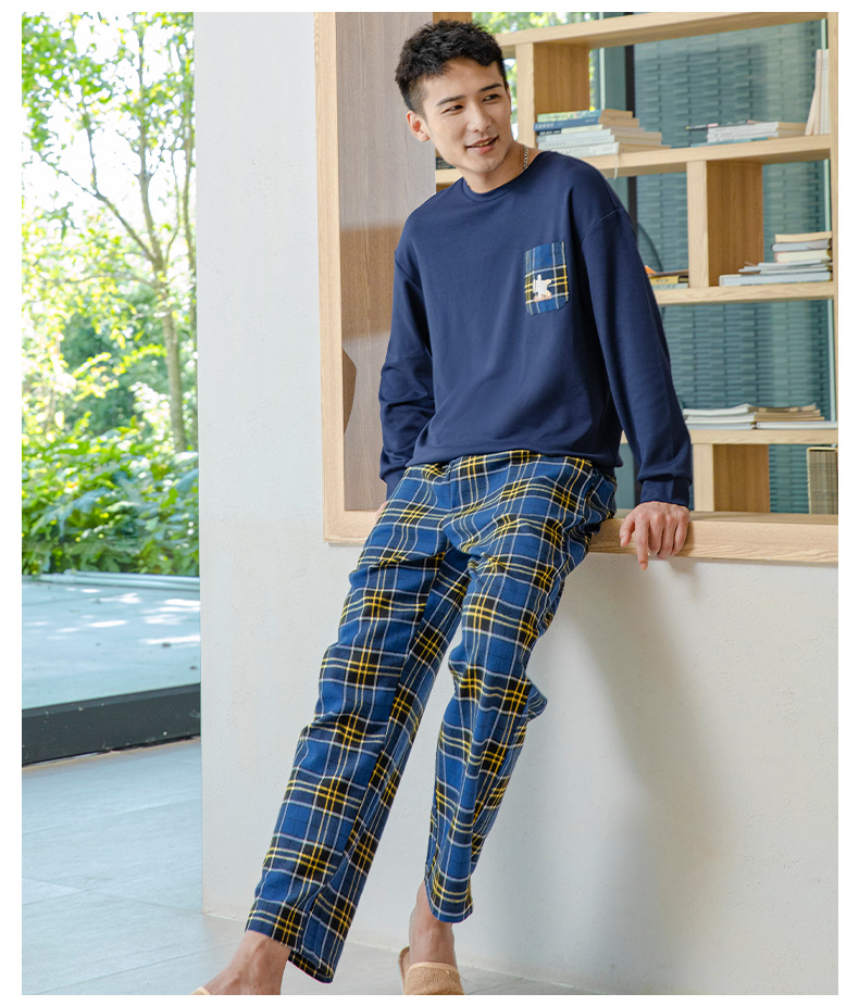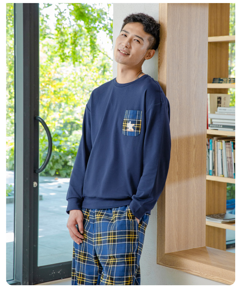 爱帝情侣睡衣休闲套头格纹长袖家居服