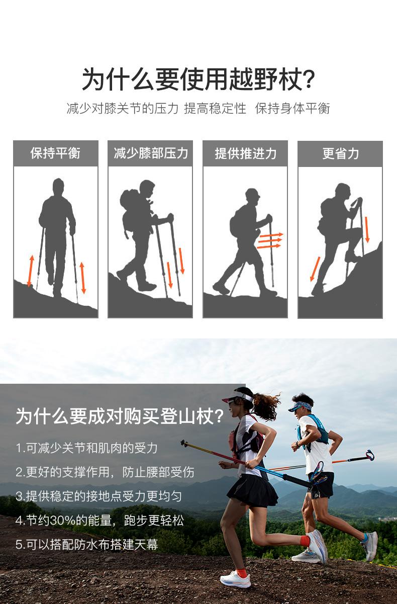 【私微信客服特价】奥尼捷登山杖四节折叠超轻越野手杖户外伸缩登山行山杖(一对装)