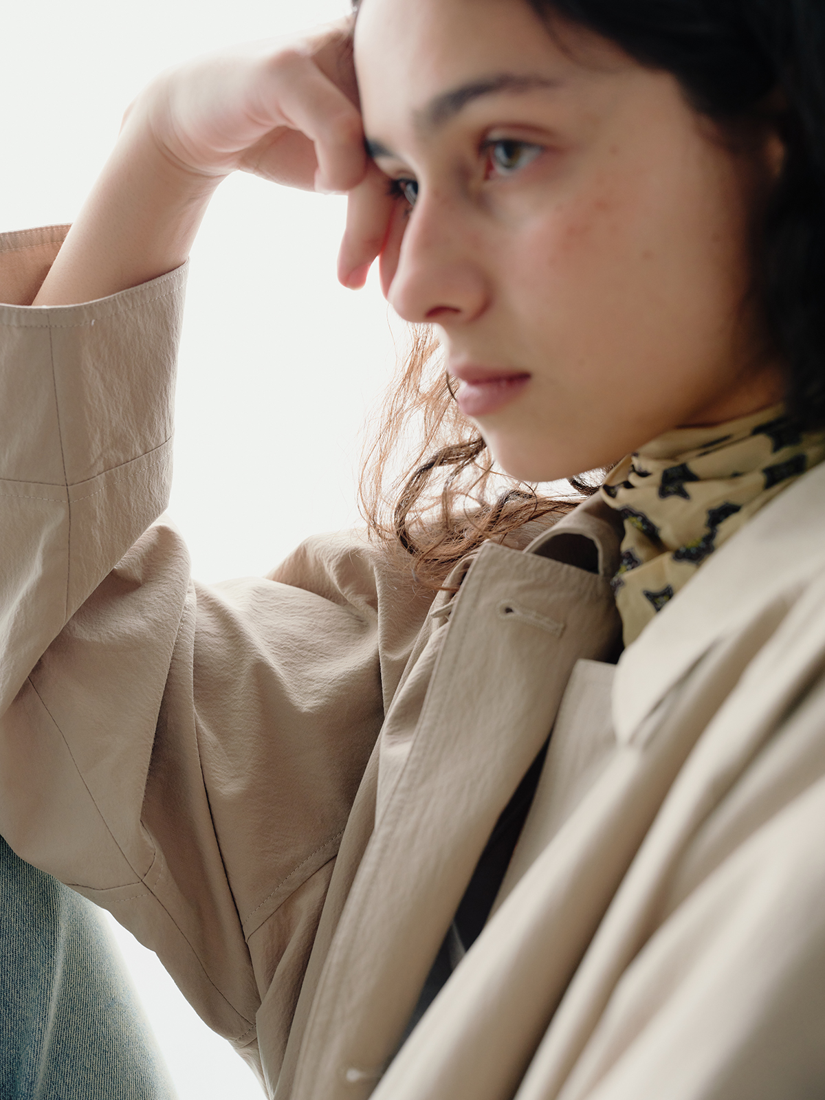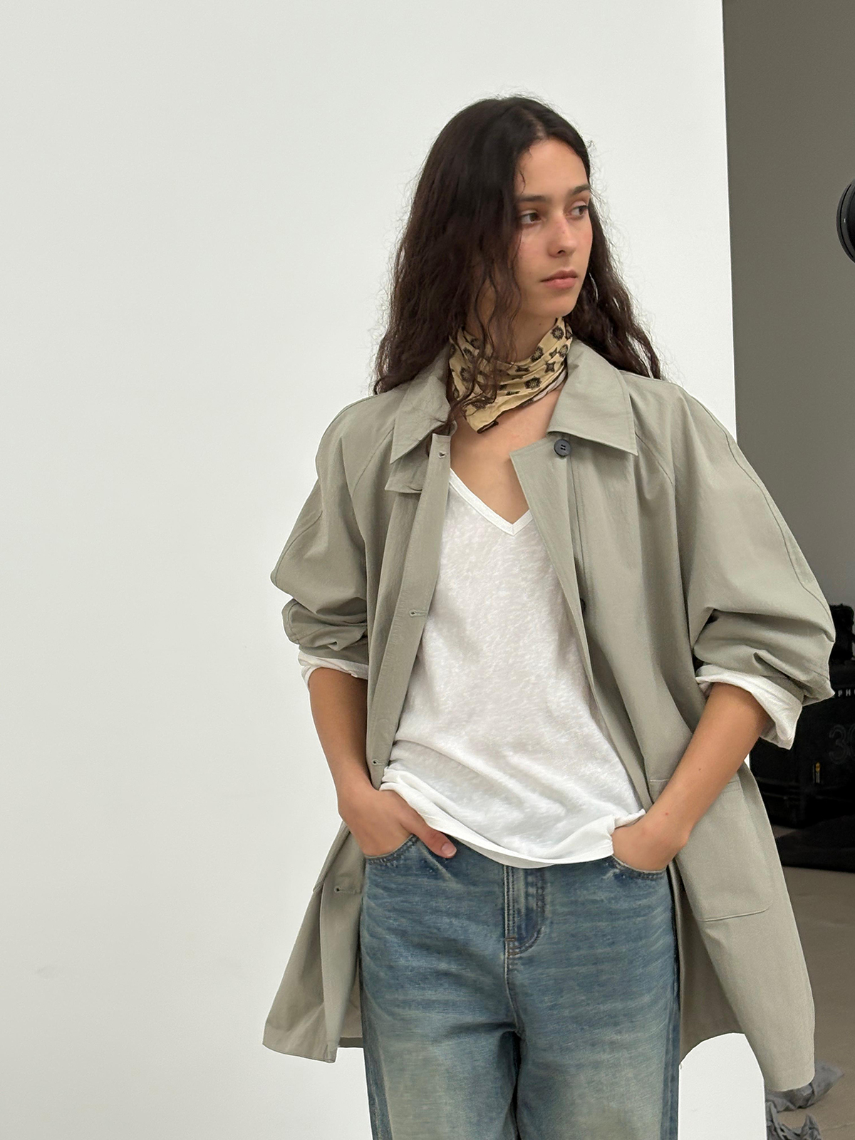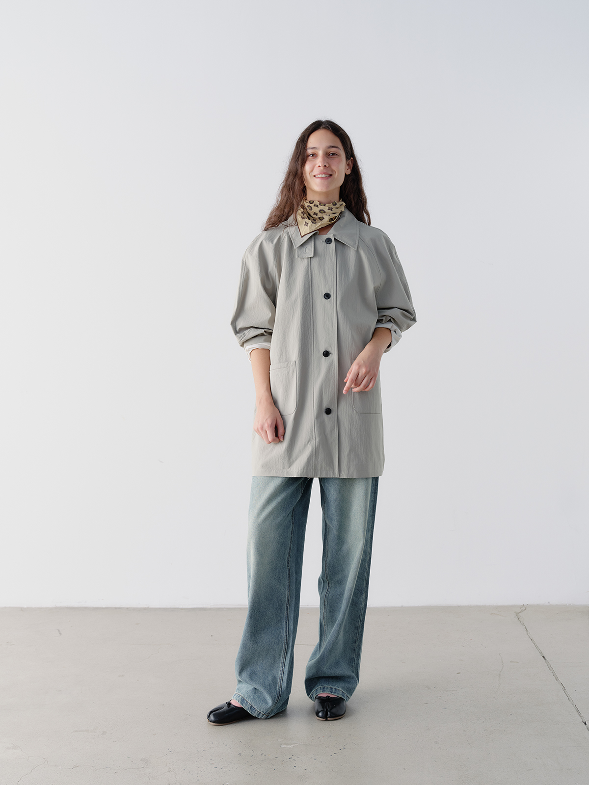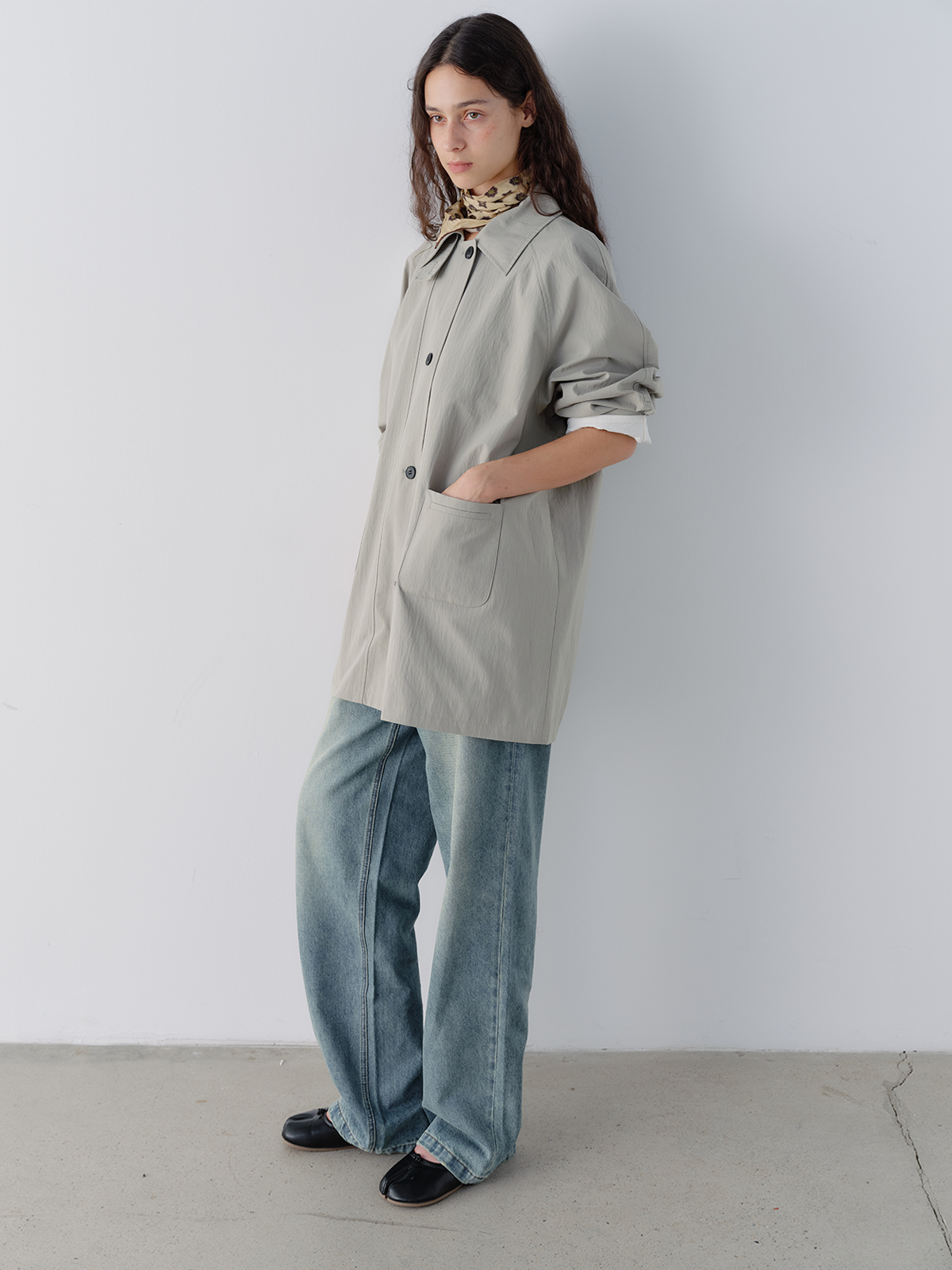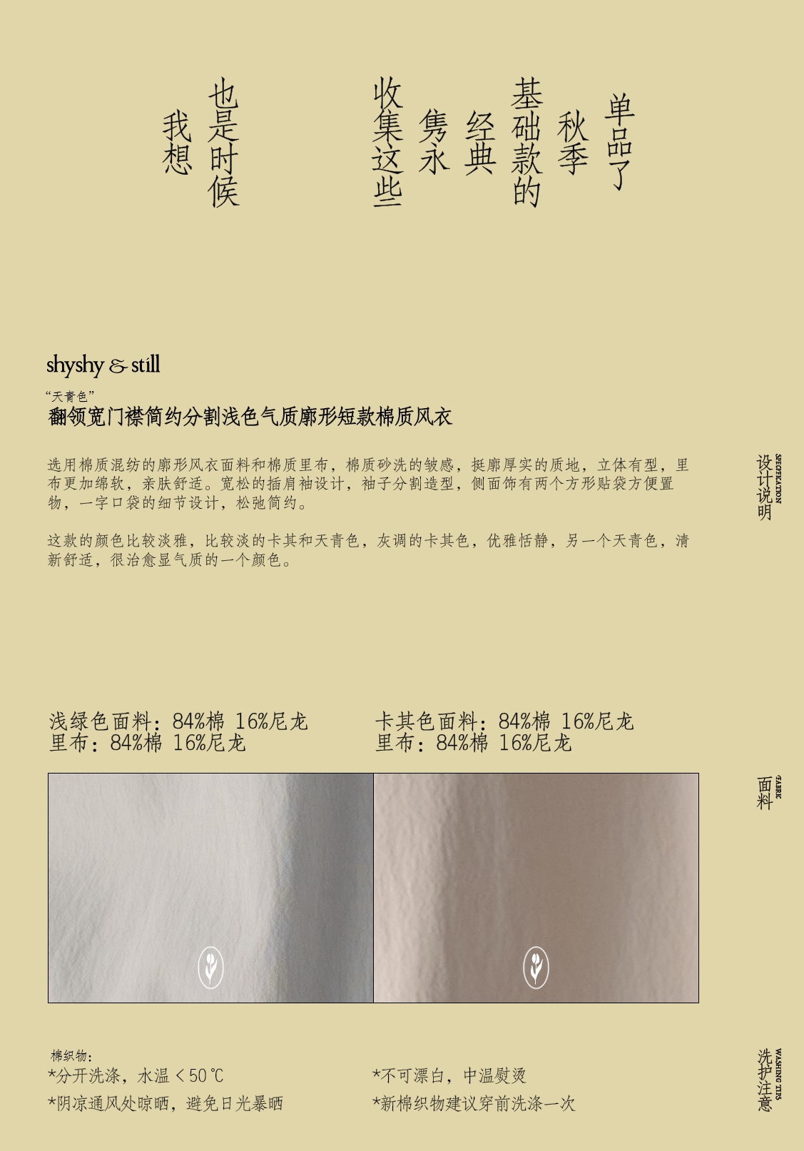 shyshystill/shy202506077/翻领分割浅色廓形短款棉质风衣