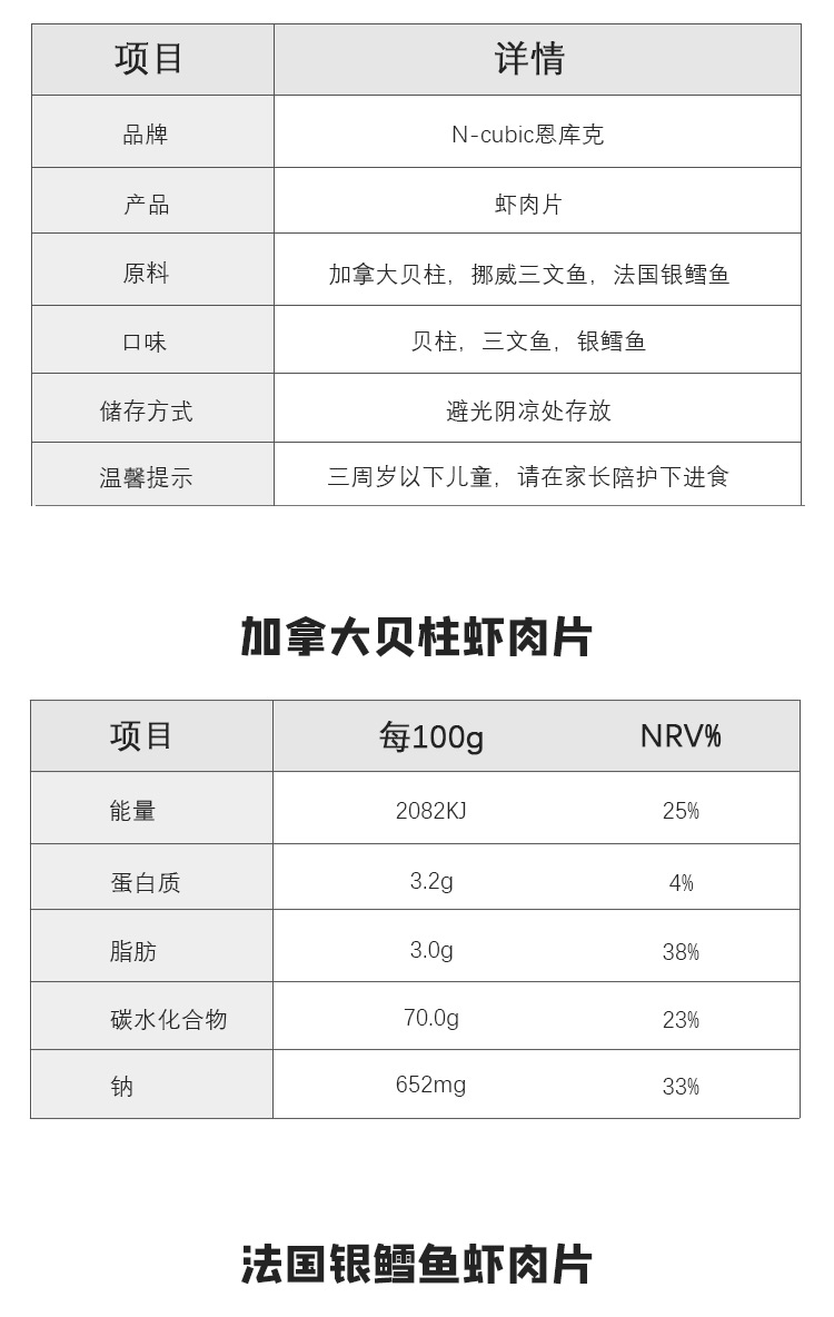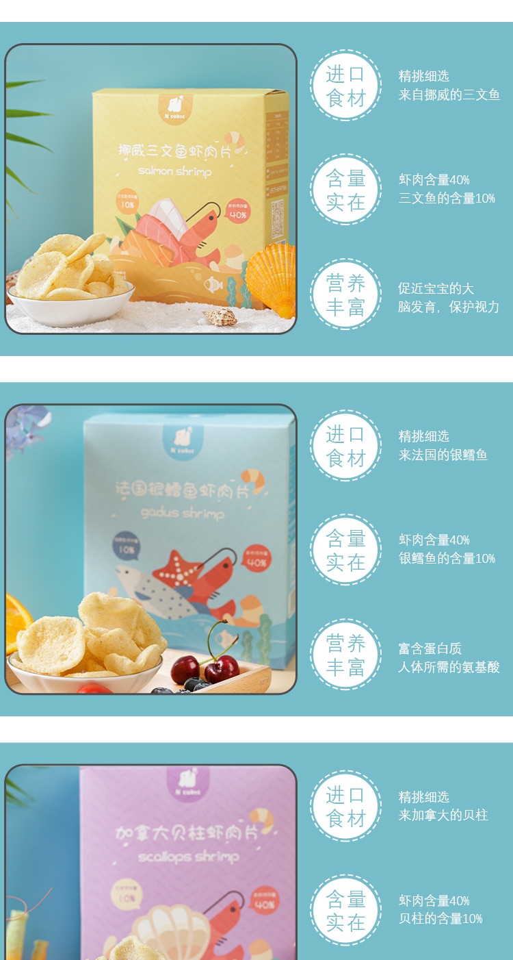 新品Ncubic恩库克虾含量40挪威三文鱼加拿大贝柱法国鳕鱼虾肉片
