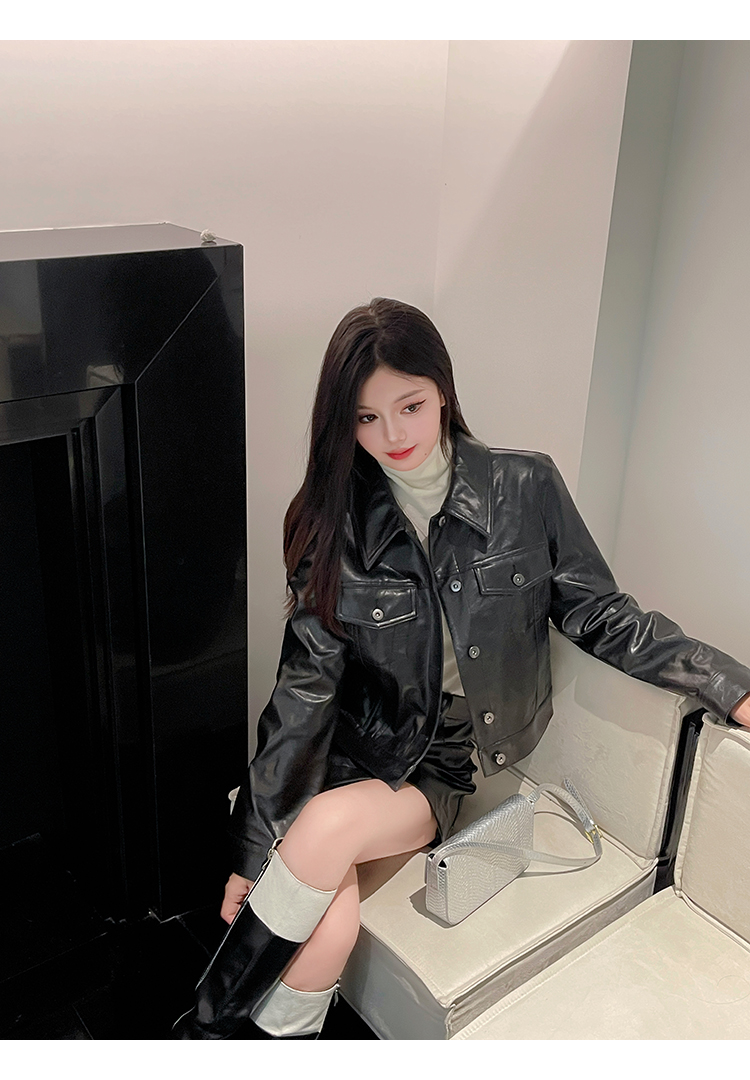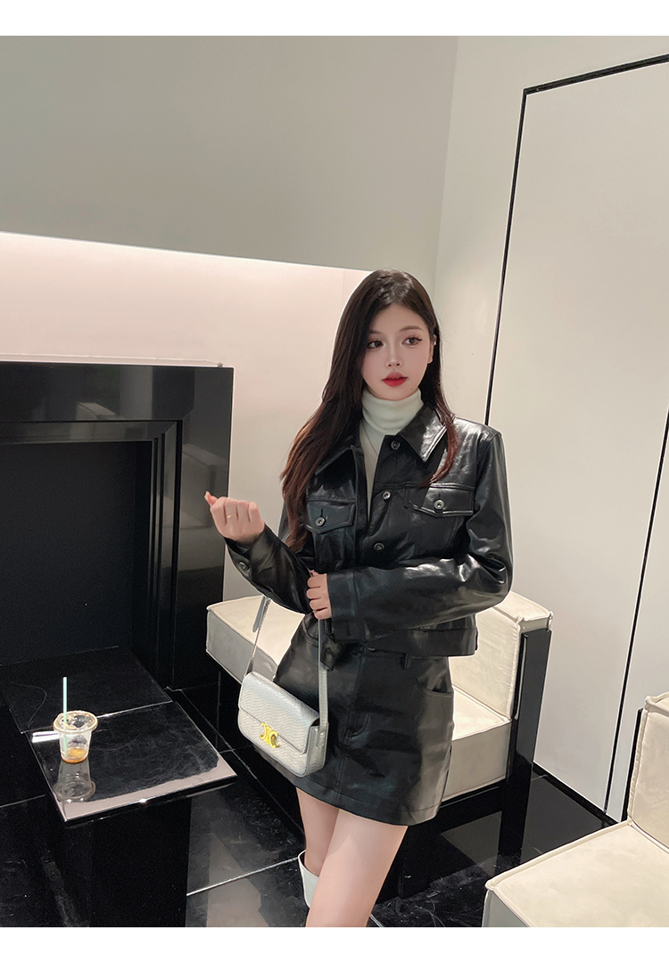 清仓捡漏 LINCHAOZHANG LW240418 皮工装外套 LQ240379 皮工装半裙 套装