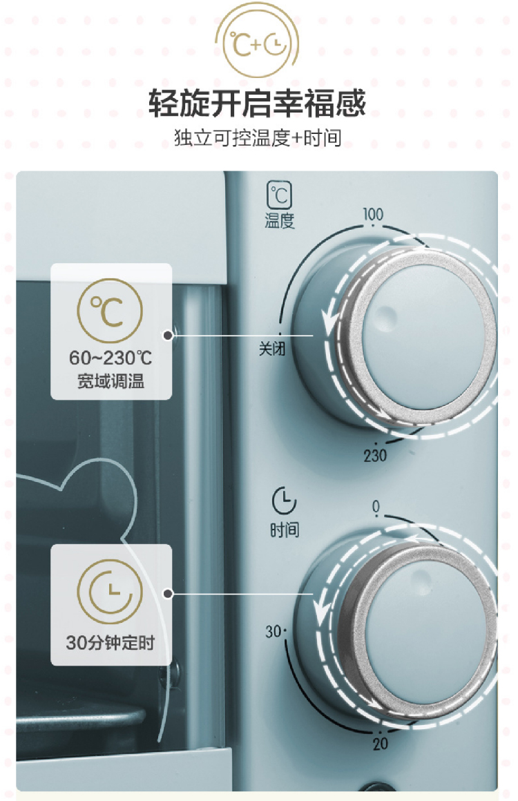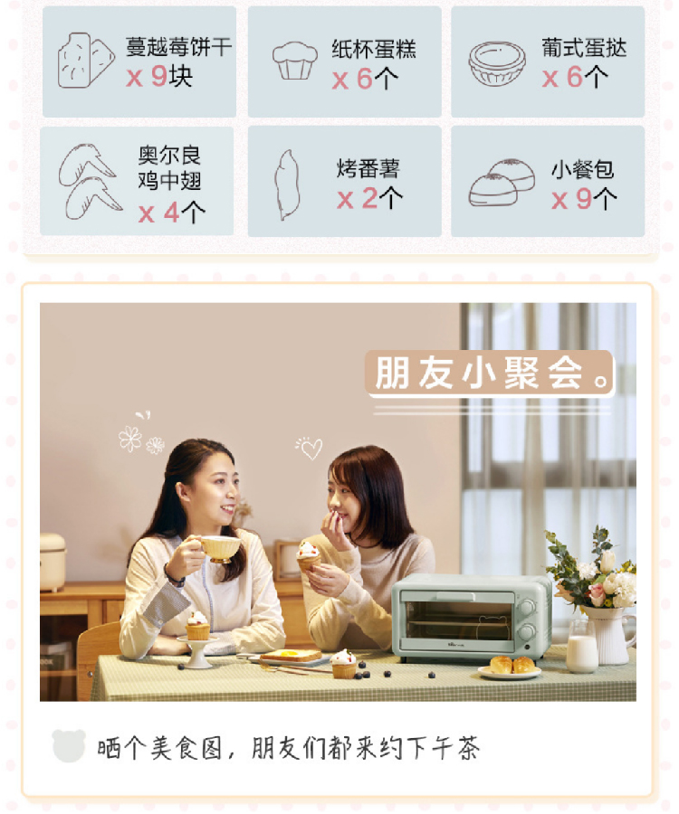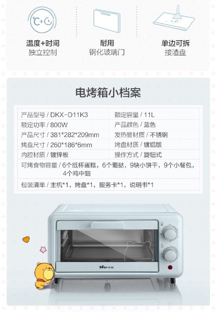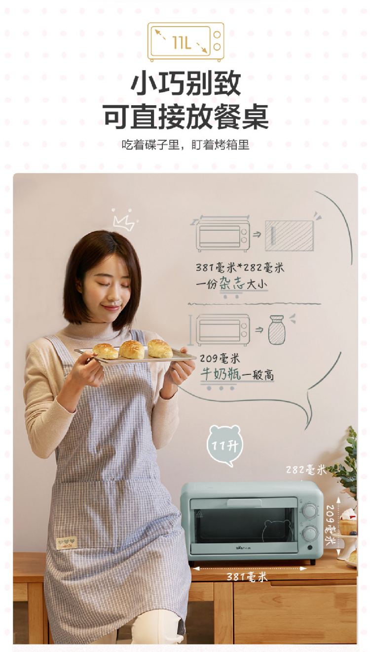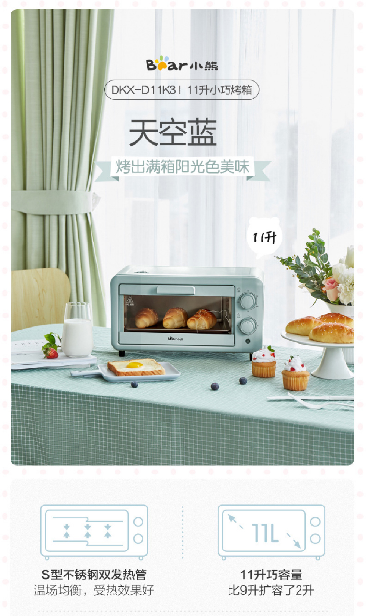 【小熊电烤箱11L】多功能小型烘焙水浴蒸烤 旋风式蛋糕面包饼干机烘烤机