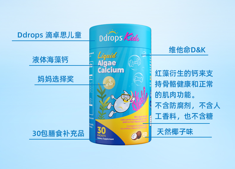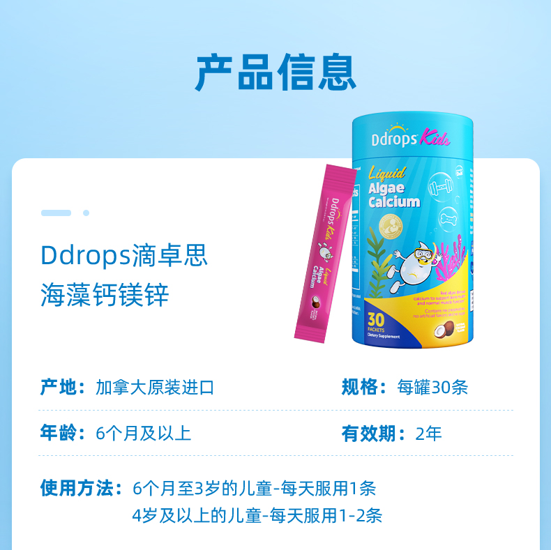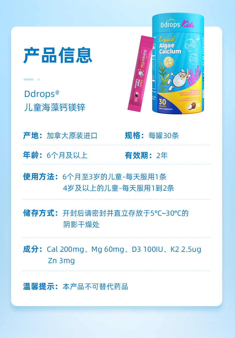 Ddrops 儿童液体海藻钙镁锌 30条/罐