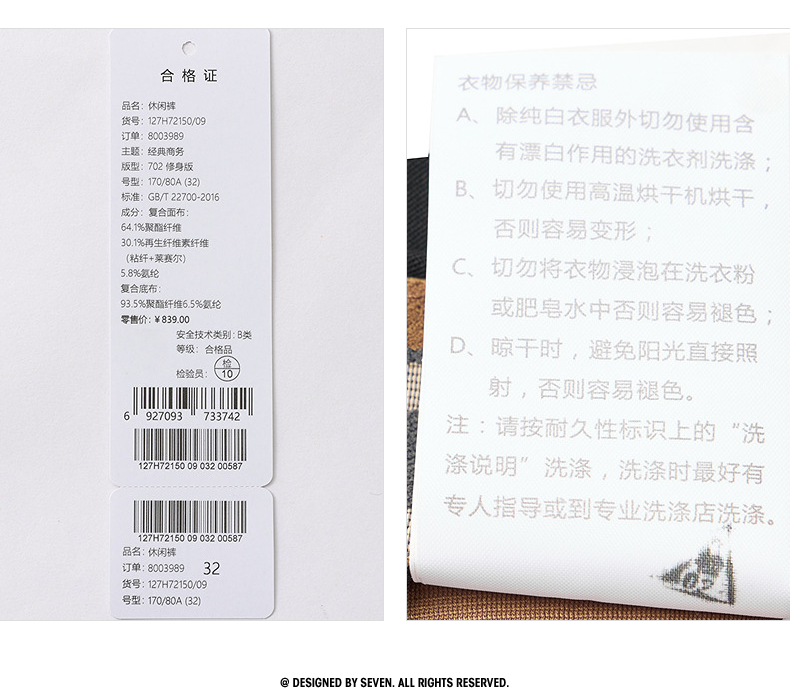 【含莱赛尔】柒牌休闲裤男2024秋冬新款商务通勤厚款磨毛直筒长裤127H72150