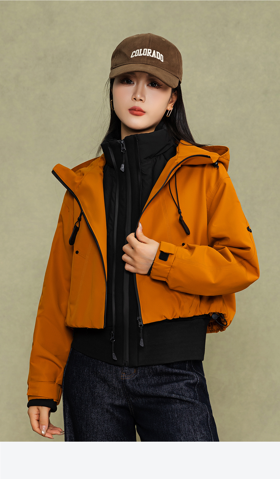 冬上新流行橘色显瘦保暖时尚款短款连帽工装外套2254134