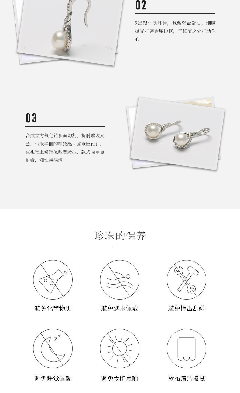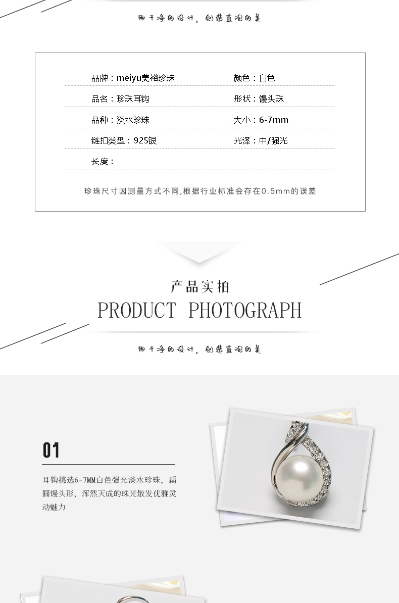 美裕 【露珠】银925银淡水珍珠耳钩6-7mm白105000