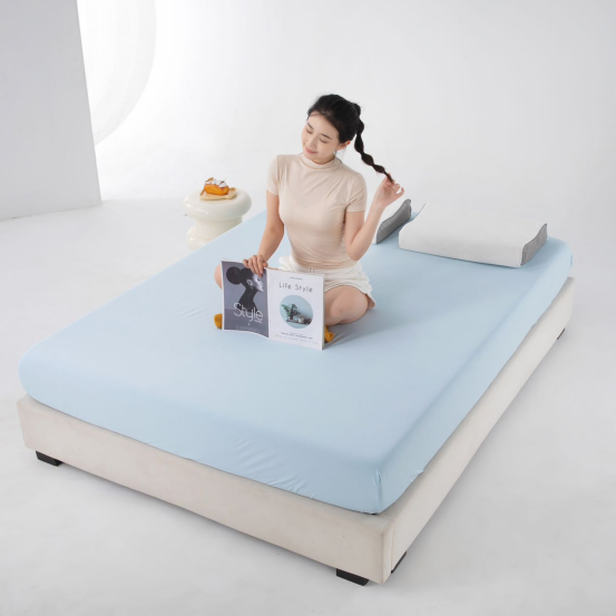 💥【5色针织天丝棉床笠】✅1.水洗天丝面料自带凉感,🌸凉凉滑滑的,温润的凉意不会让人觉得冰✅ 2. 安全标准,🔹即使裸睡也不会摩擦皮肤