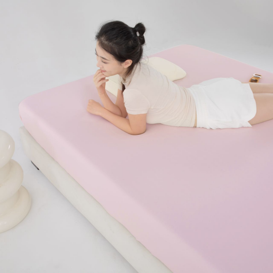🩷粉色实拍 床笠款比床单铺上更服帖,没时间打理床铺也不要紧,睡前什么样睡后还是怎么样,不跑床不乱皱,适合早起上班的打工人。 像真丝一般的材质,但打理起来更轻松,不易变形。脏了也能机洗水洗,夏天天气热,基本上每周都要换洗,不用担心会洗坏