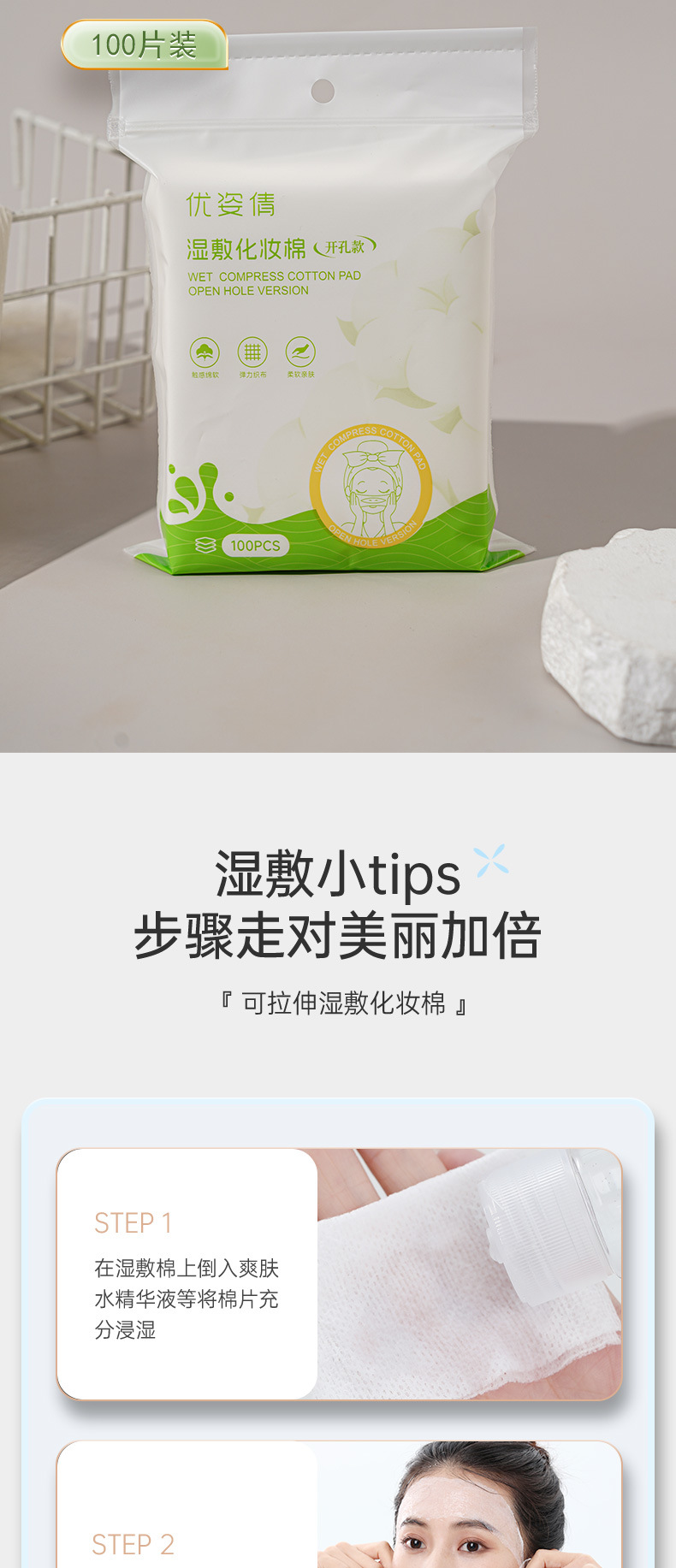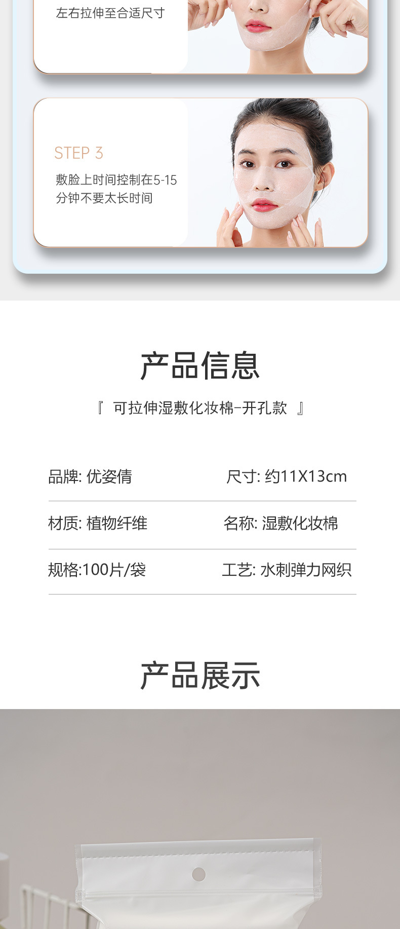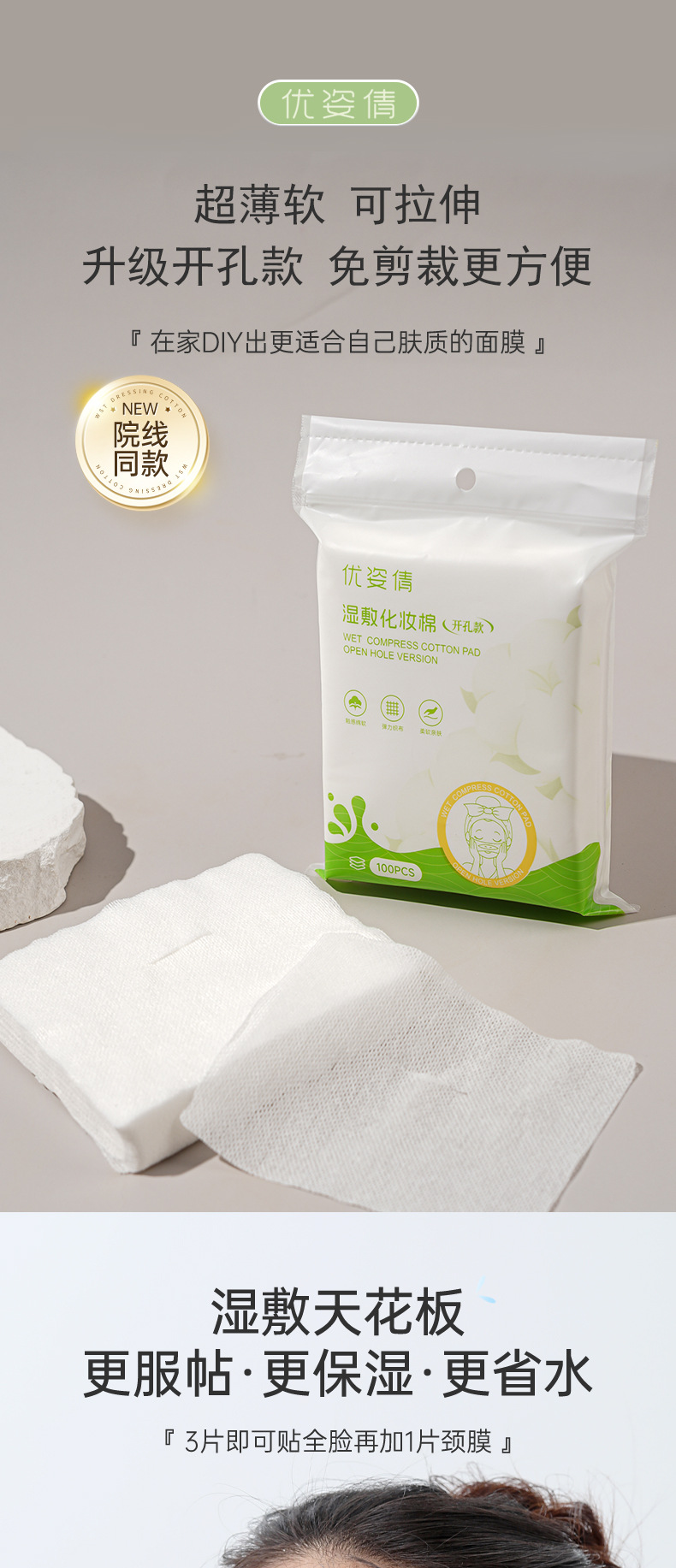 【超薄软!可拉伸】开口免裁剪湿敷棉敷脸专用可拉伸开口美容院专用开孔款化妆棉片,袋装设计 防尘防潮 放浴室也没在怕的。ry