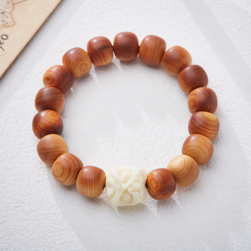 醒狮款搭配大颗粒崖柏,古朴醇厚,非常适合男士佩戴,寓意事业高升,时来运转。