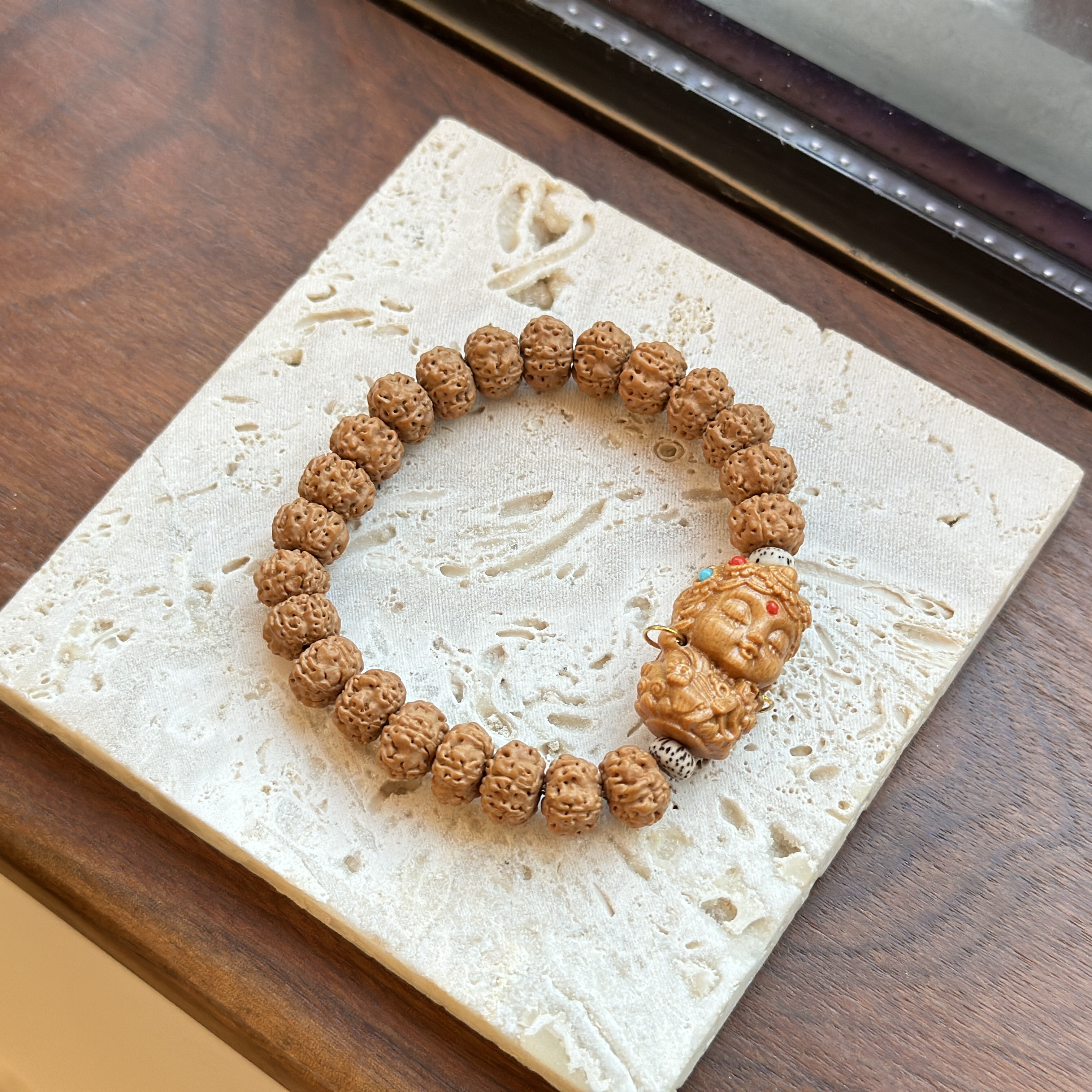 金刚菩提的焦糖色搭配手雕度母,寓意六时吉祥,健康平安。