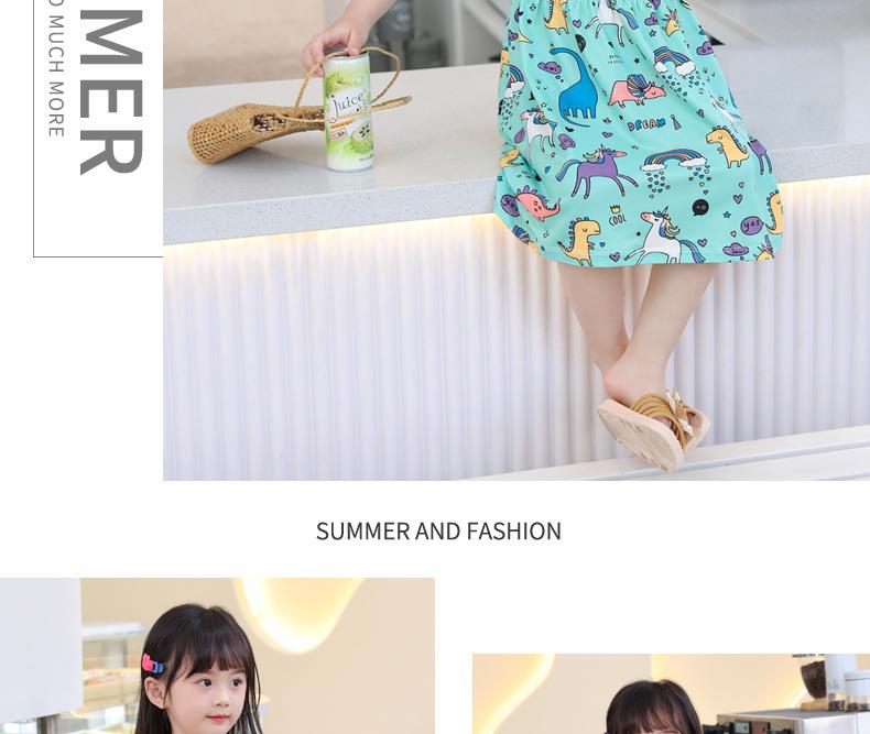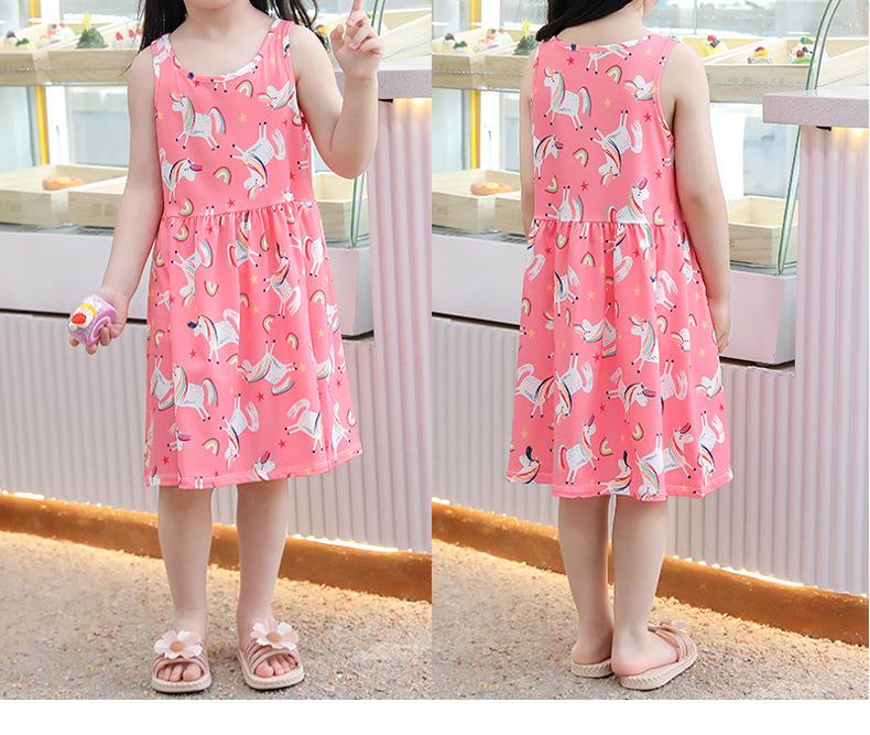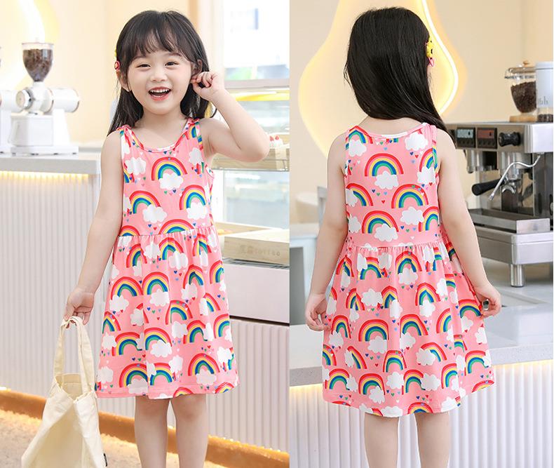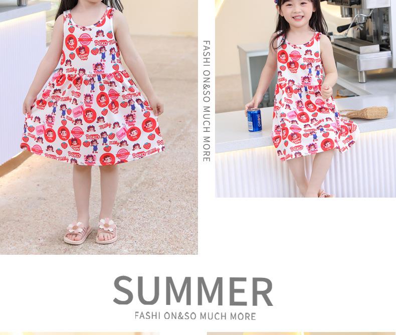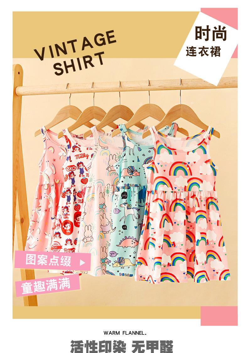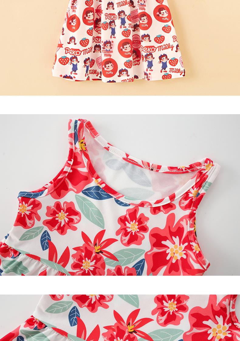 【PF】2023夏季韩版中小童女通用童装印花牛奶丝儿童吊带裙女童连衣裙