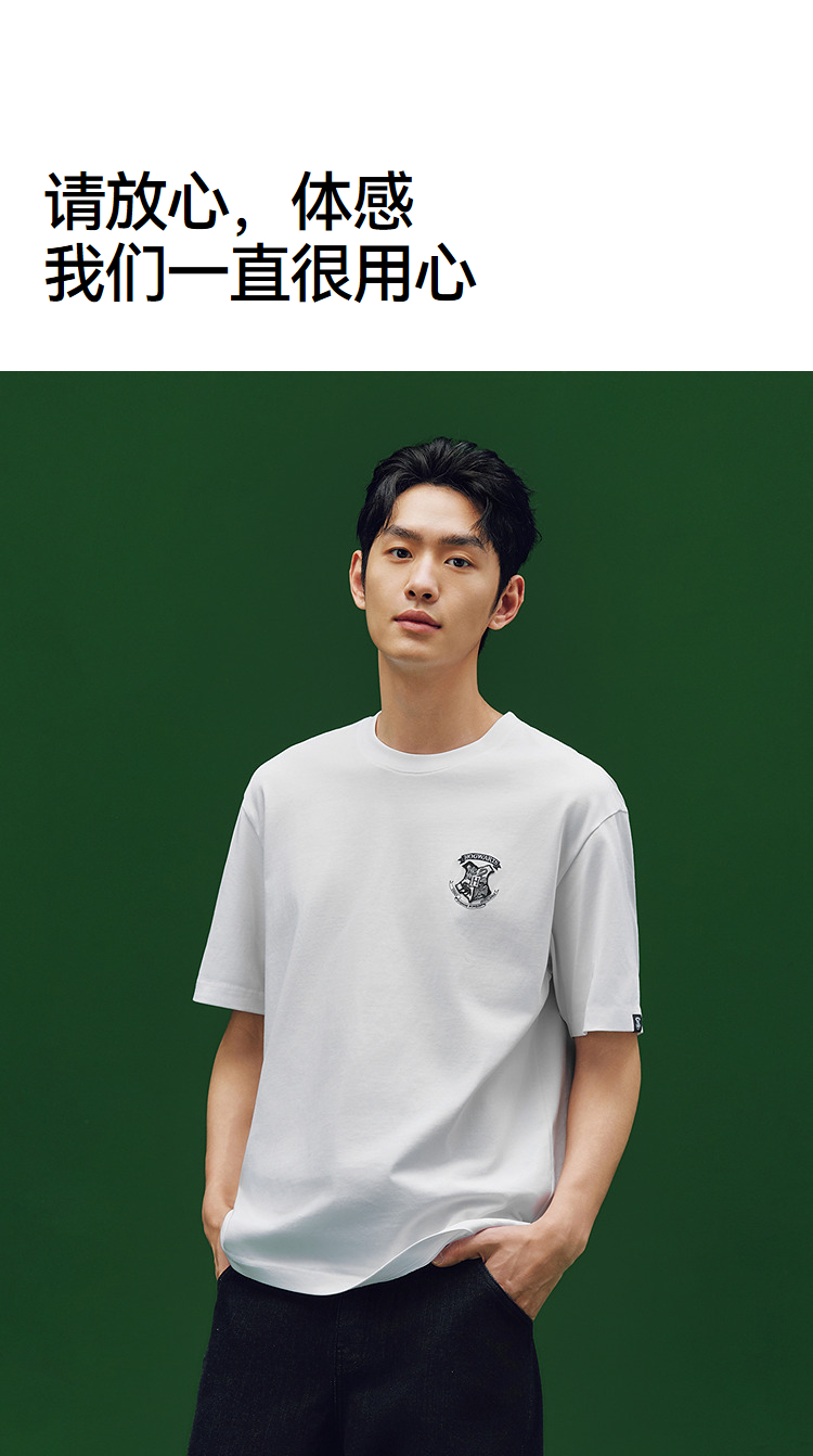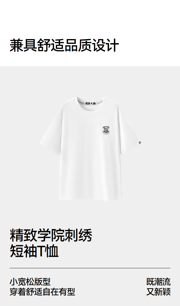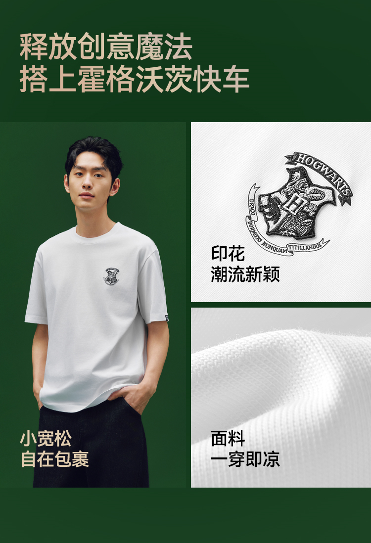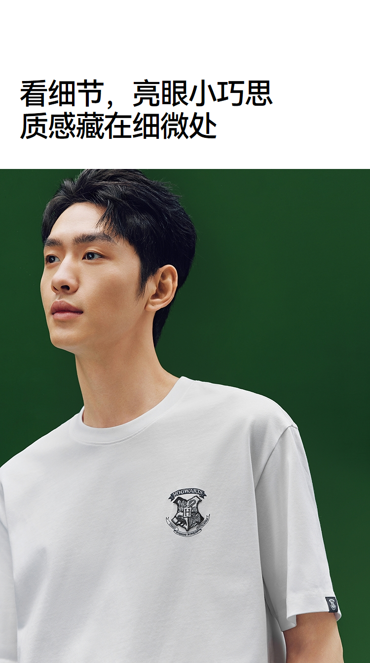 凉感T|森马哈利波特联名短袖T恤男夏季学院风绣花上衣抑菌针织衫