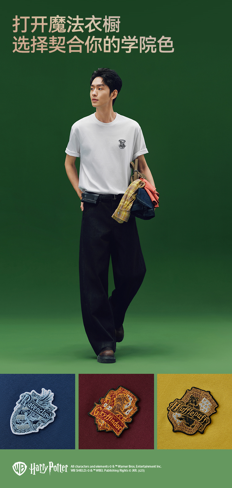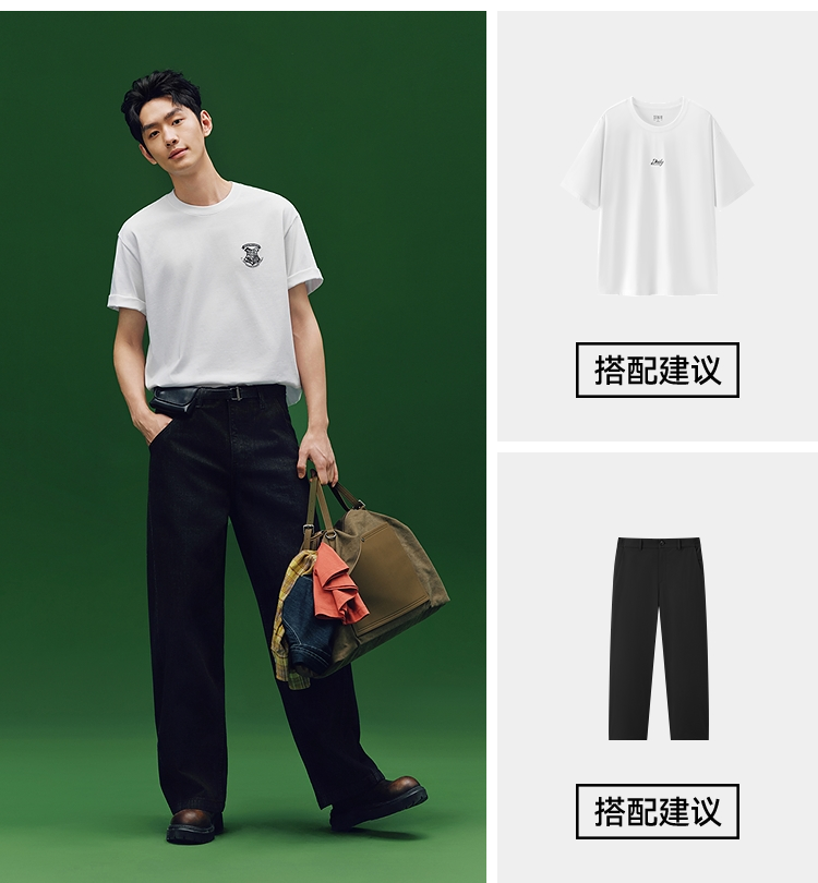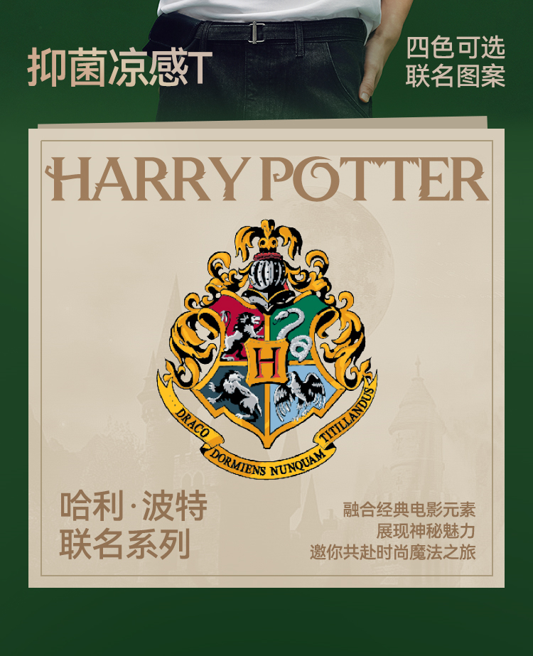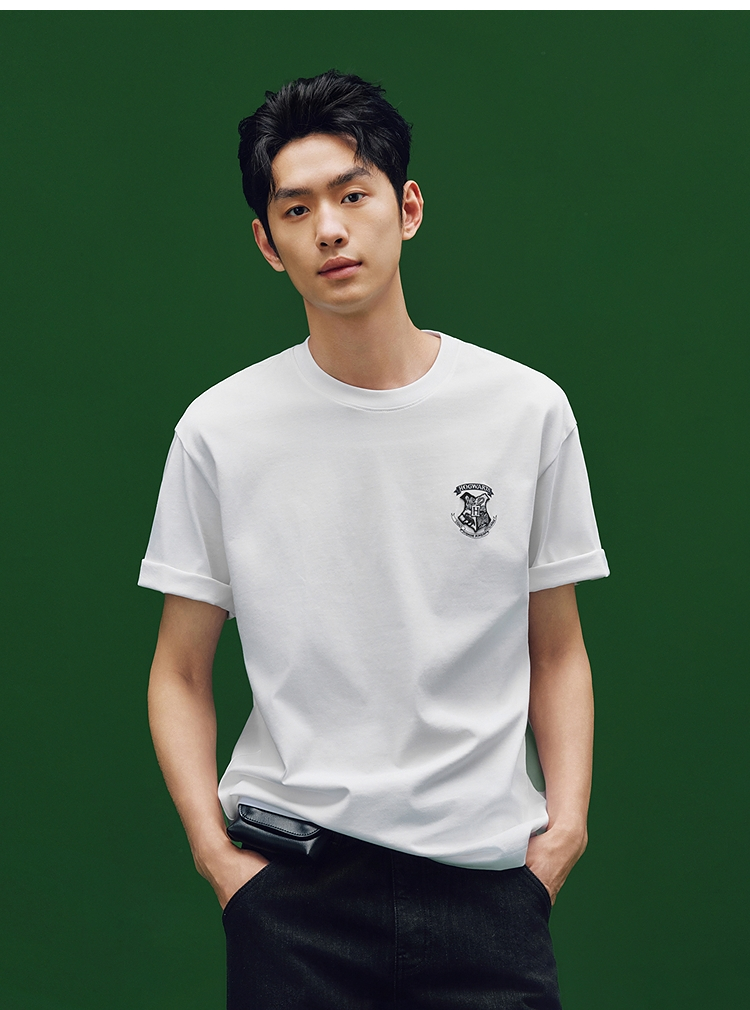 凉感T|森马哈利波特联名短袖T恤男夏季学院风绣花上衣抑菌针织衫
