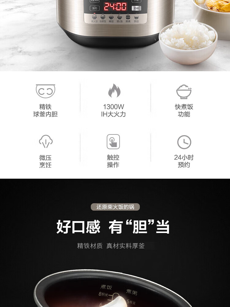 苏泊尔(SUPOR)电饭煲IH球釜大火力柴火饭4L5L升灵敏触控电饭锅 SF40HC69