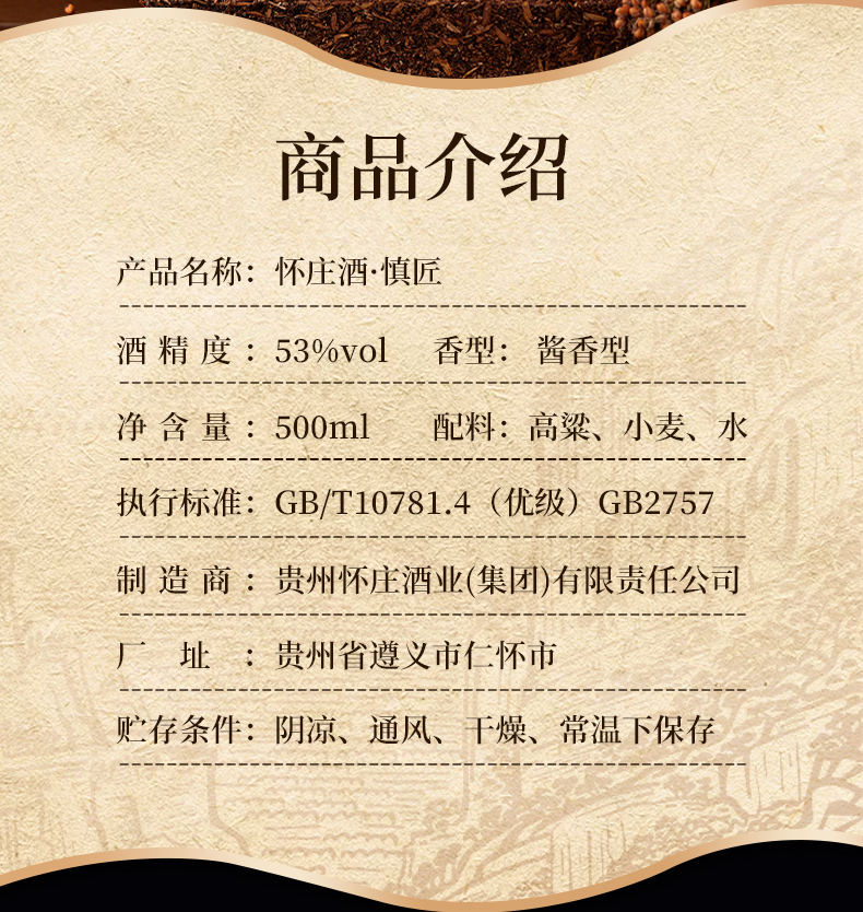 怀庄酒·慎匠 酱香型白酒 53度500ml*6瓶装