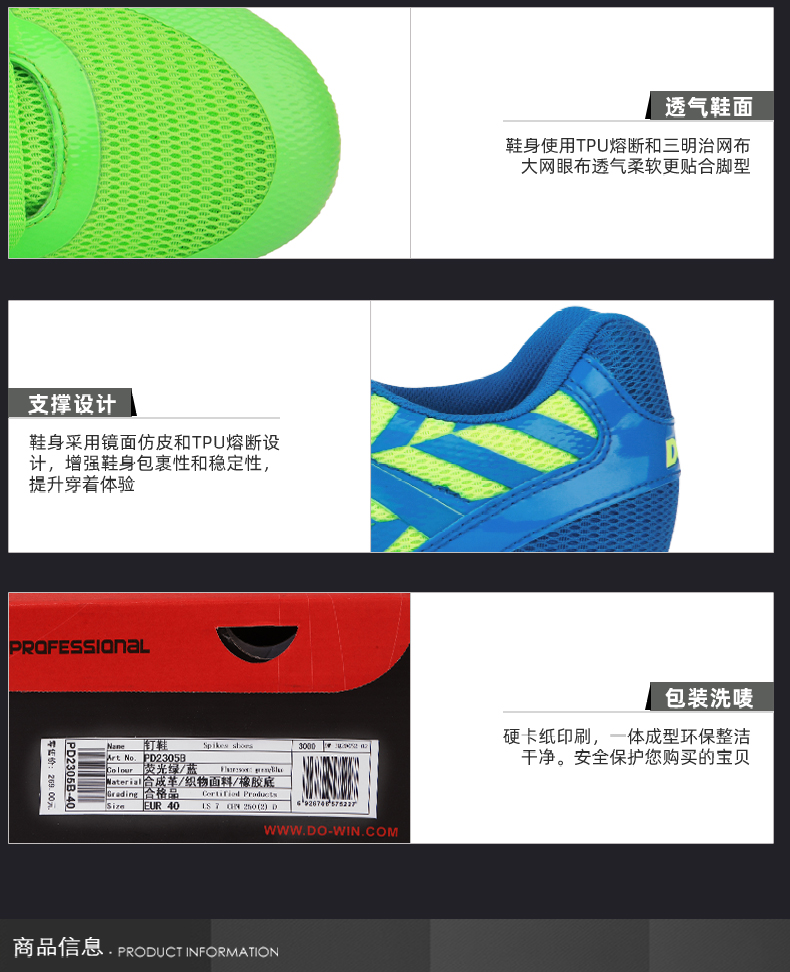 多威dowin田径短跑钉鞋新款男女专业透气跑步钉子鞋运动鞋PD2305