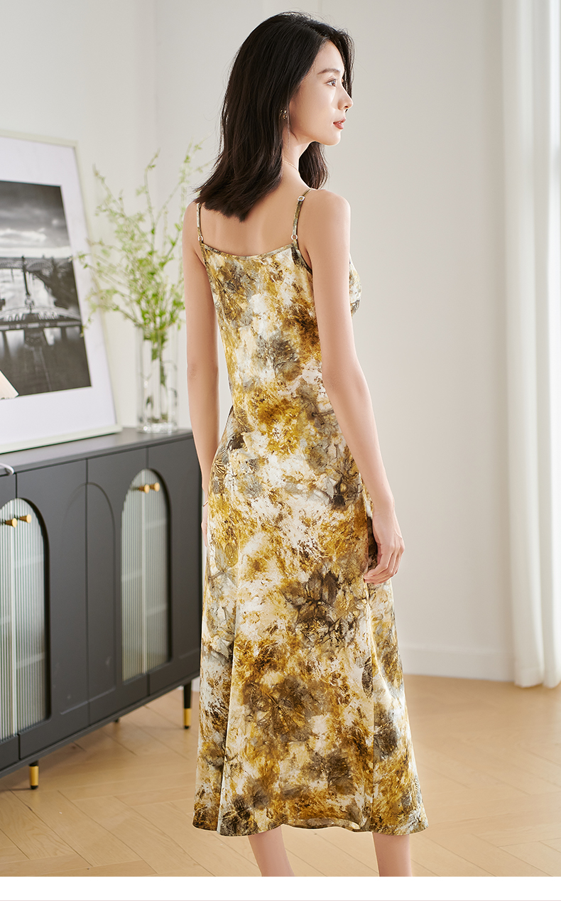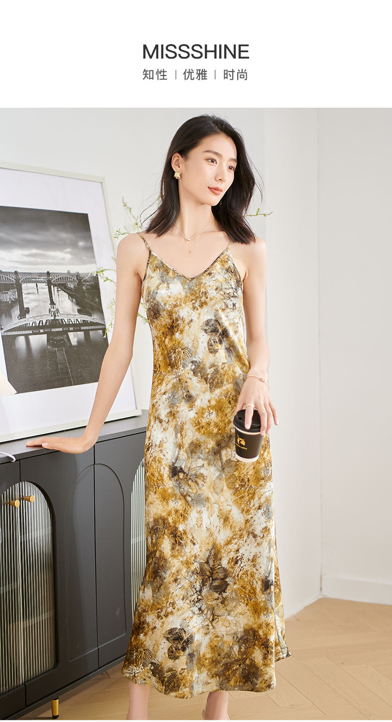 剩S/M/XL 米思阳2025夏季新款慵懒简约吊带连衣裙高腰设计感印花中长裙3005