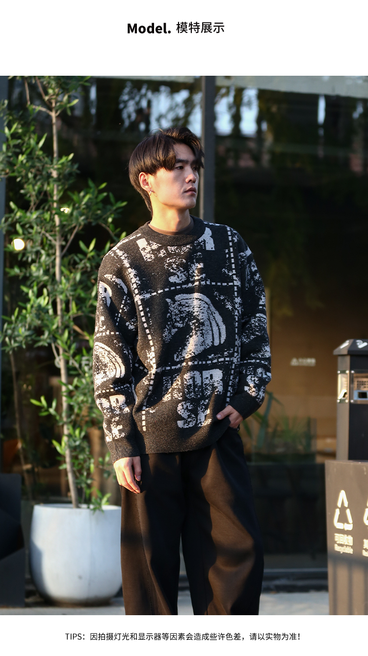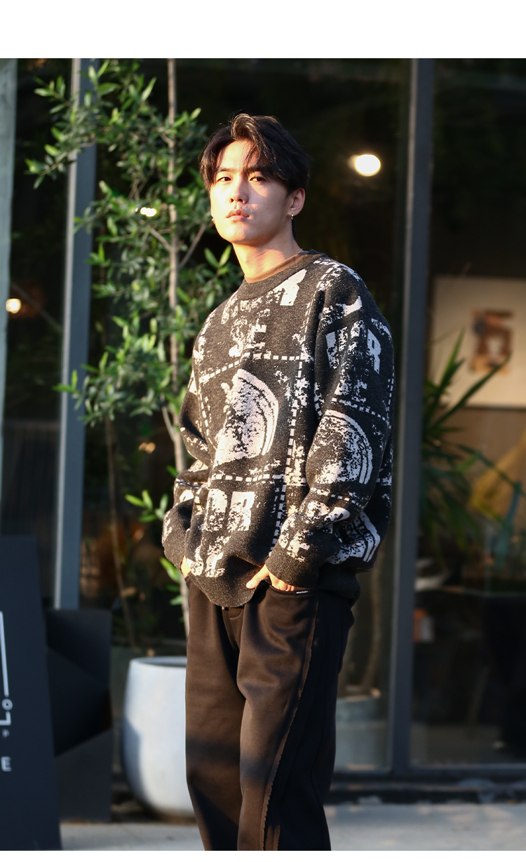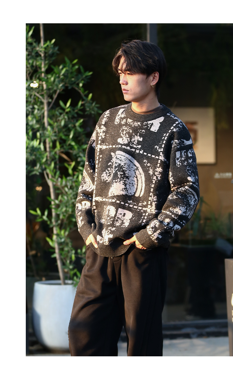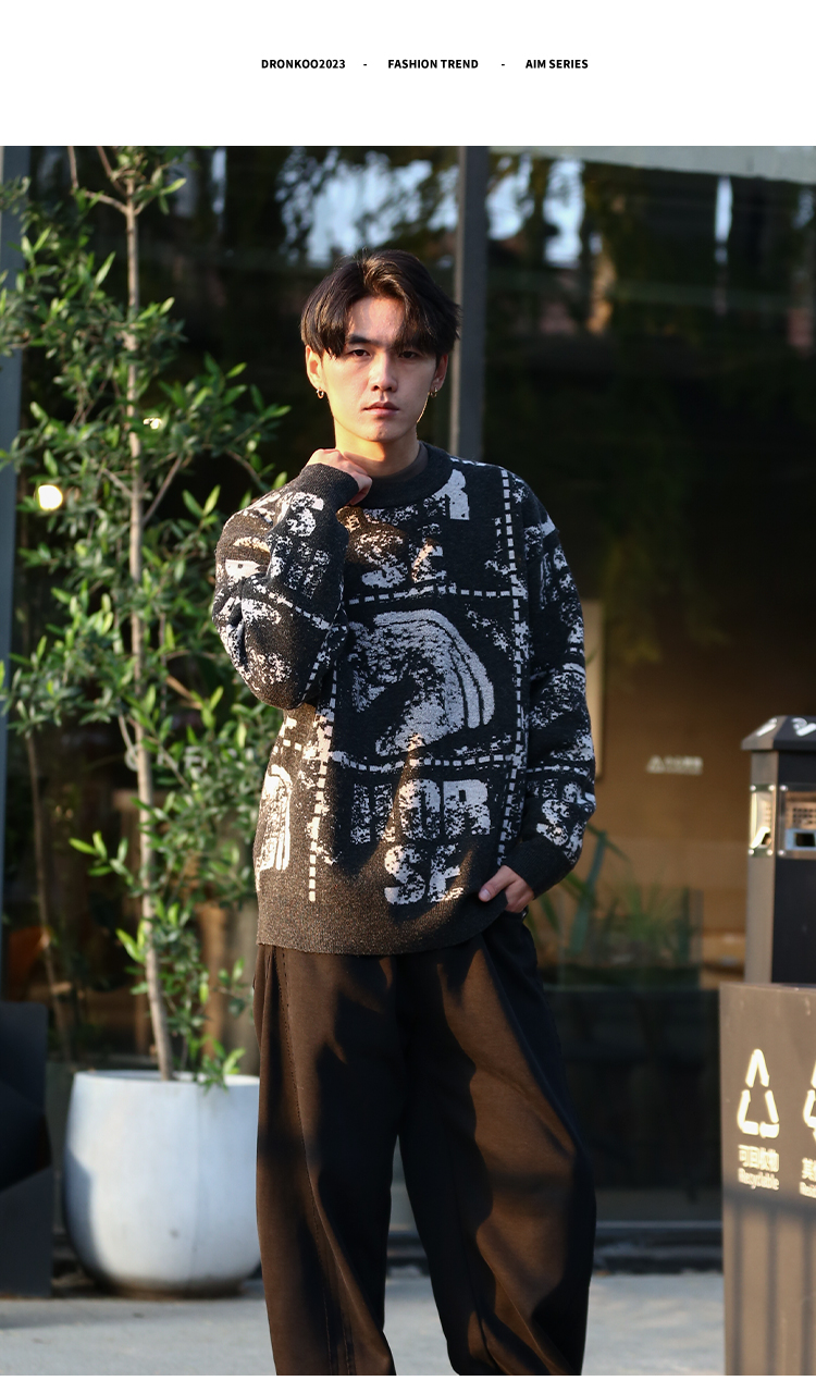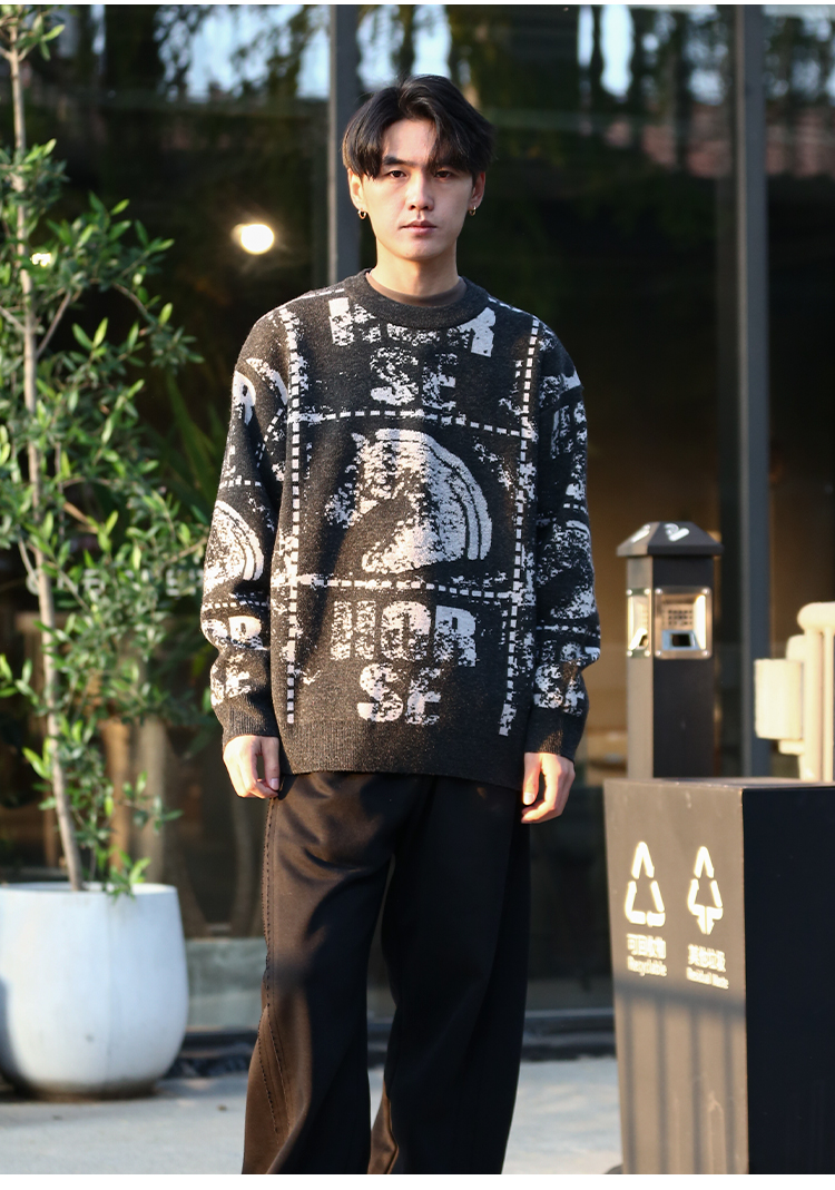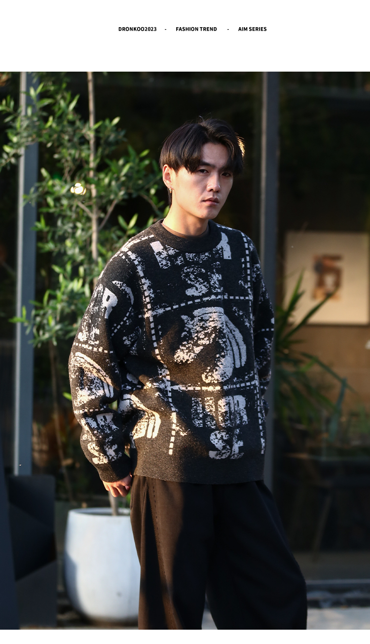 DRONKOO 2025 圆领满幅马加英文字母提花微阔厚毛衣