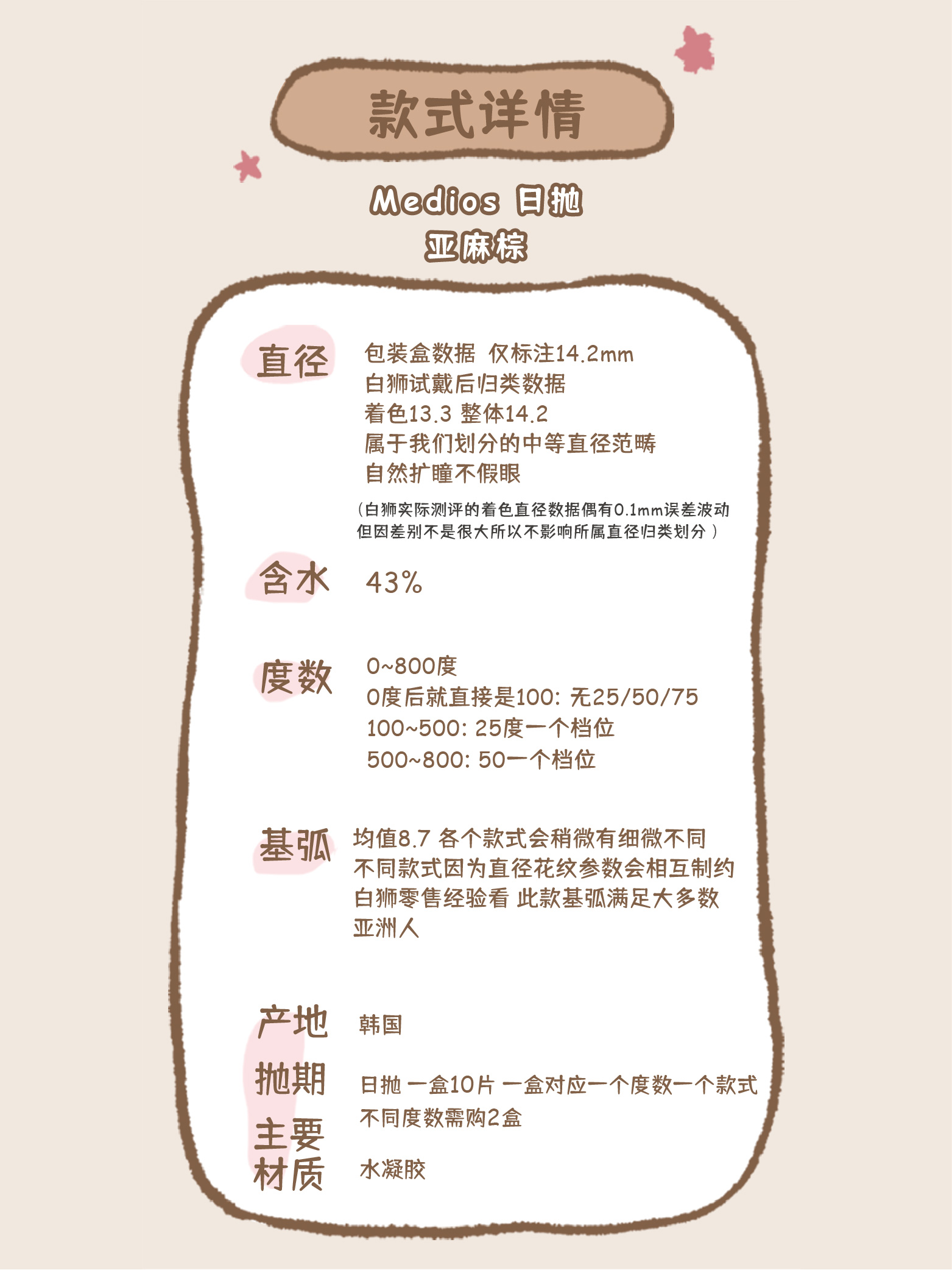 Medios旗下 ·【白狮超推荐!】亚麻棕|日抛|14.2mm 中等直径