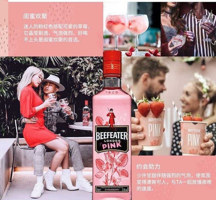 必富达 粉红金酒 草莓味洋酒 鸡尾酒配制酒 700ML有票JPY带授权招加盟代理