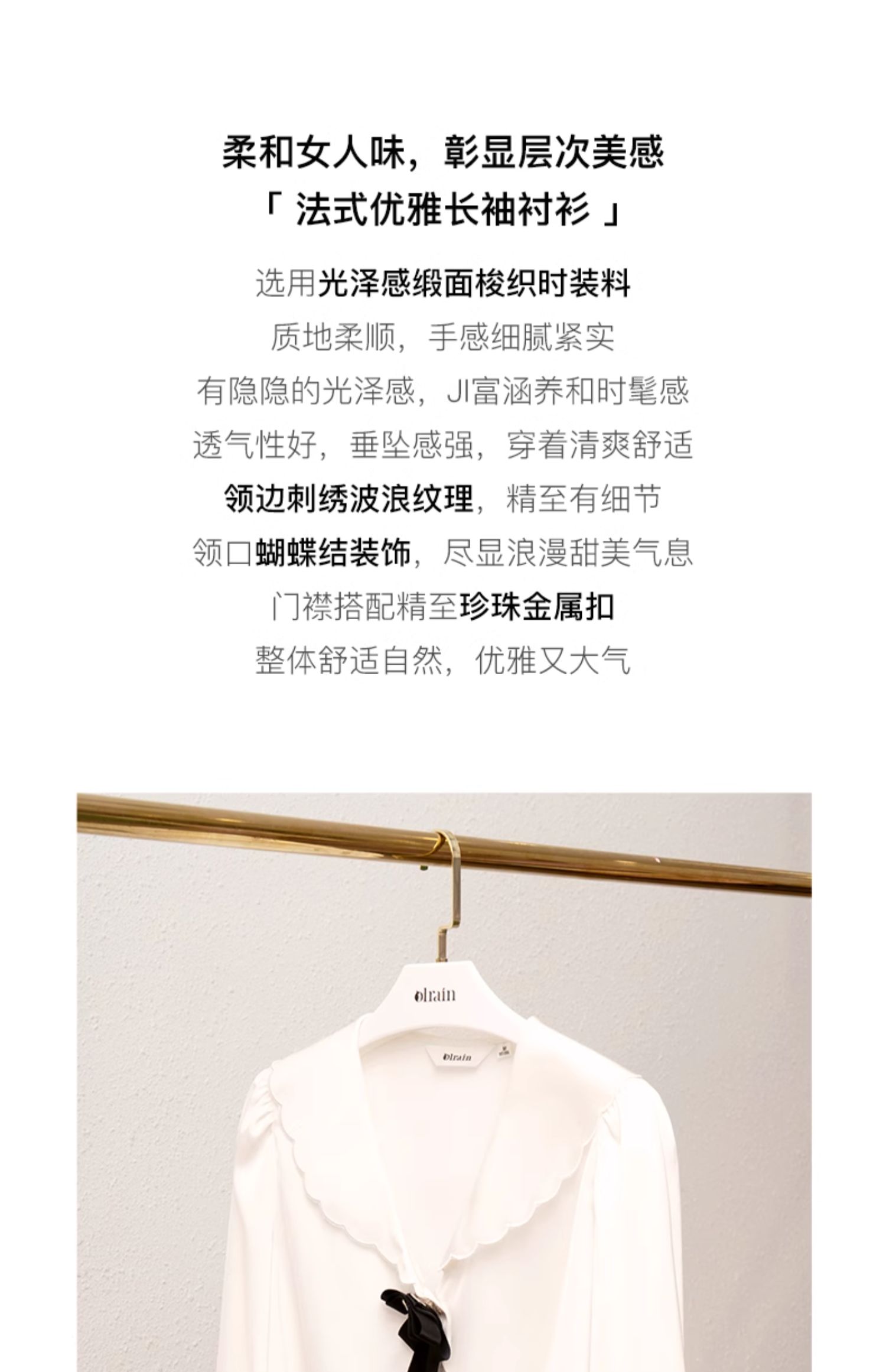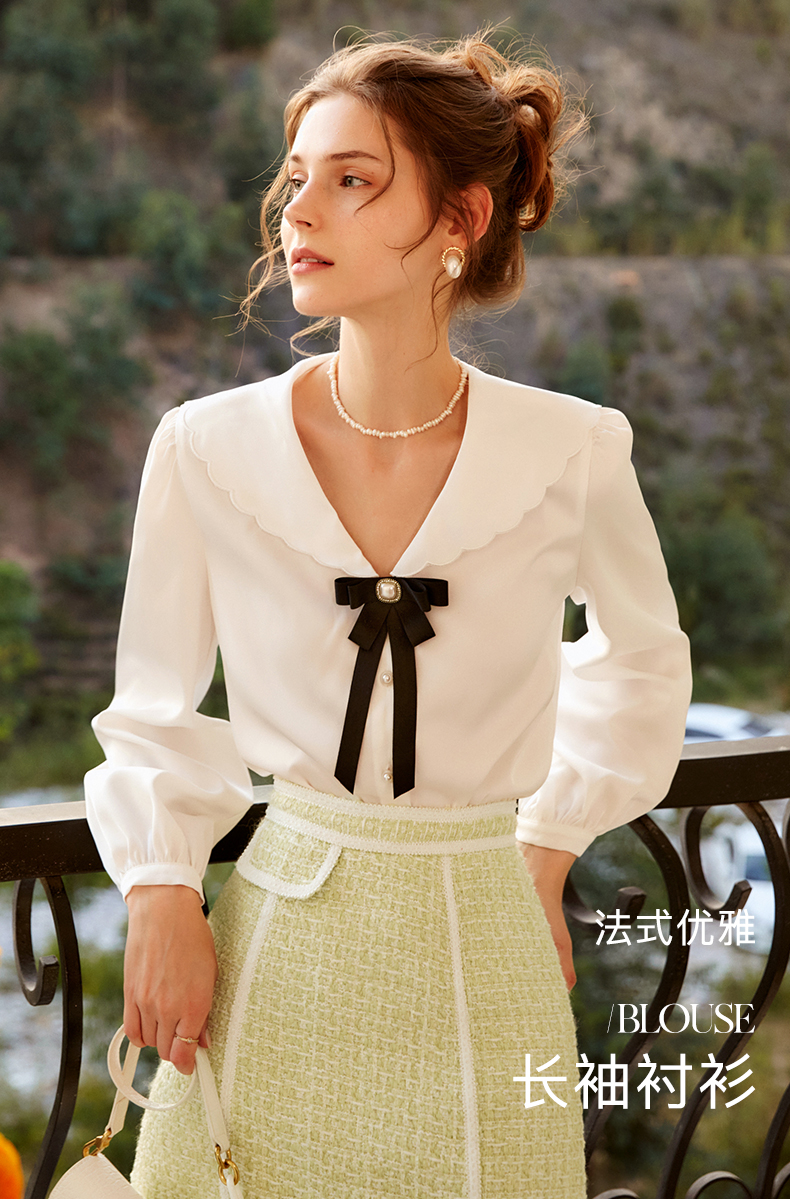 欧芮儿法式白色衬衫女春季春2024年新款时尚显瘦气质长袖上衣